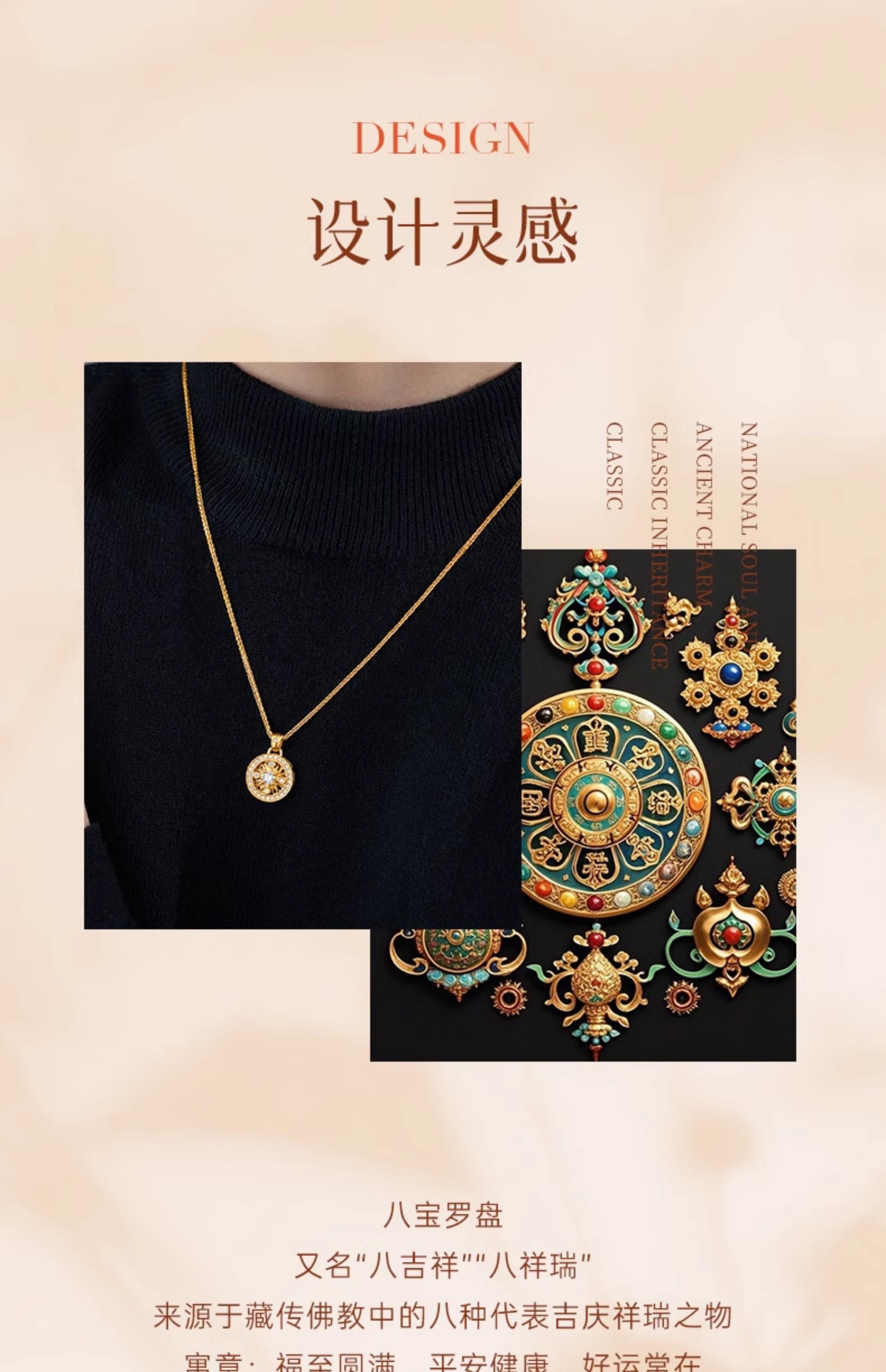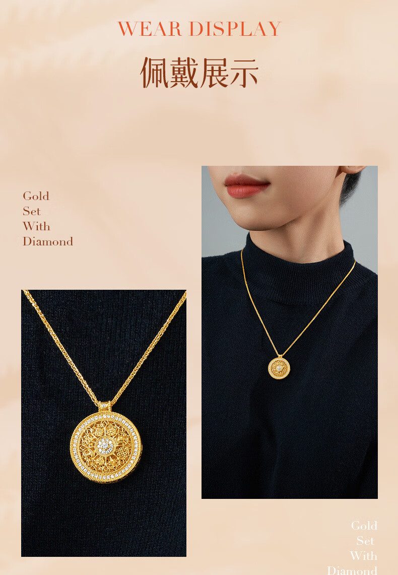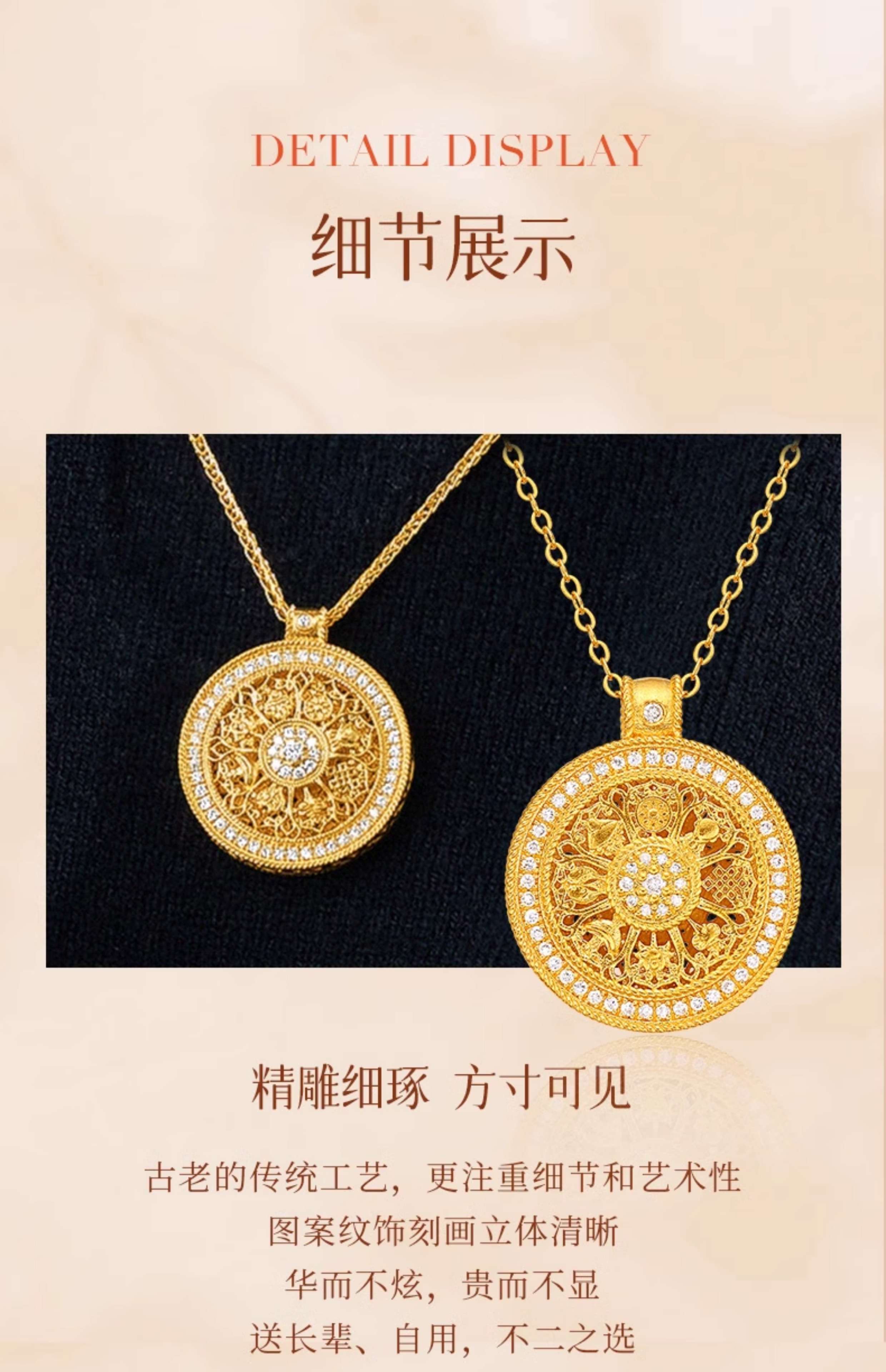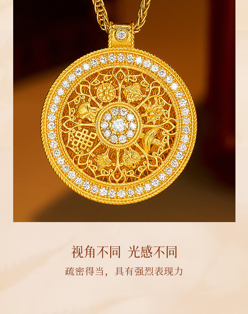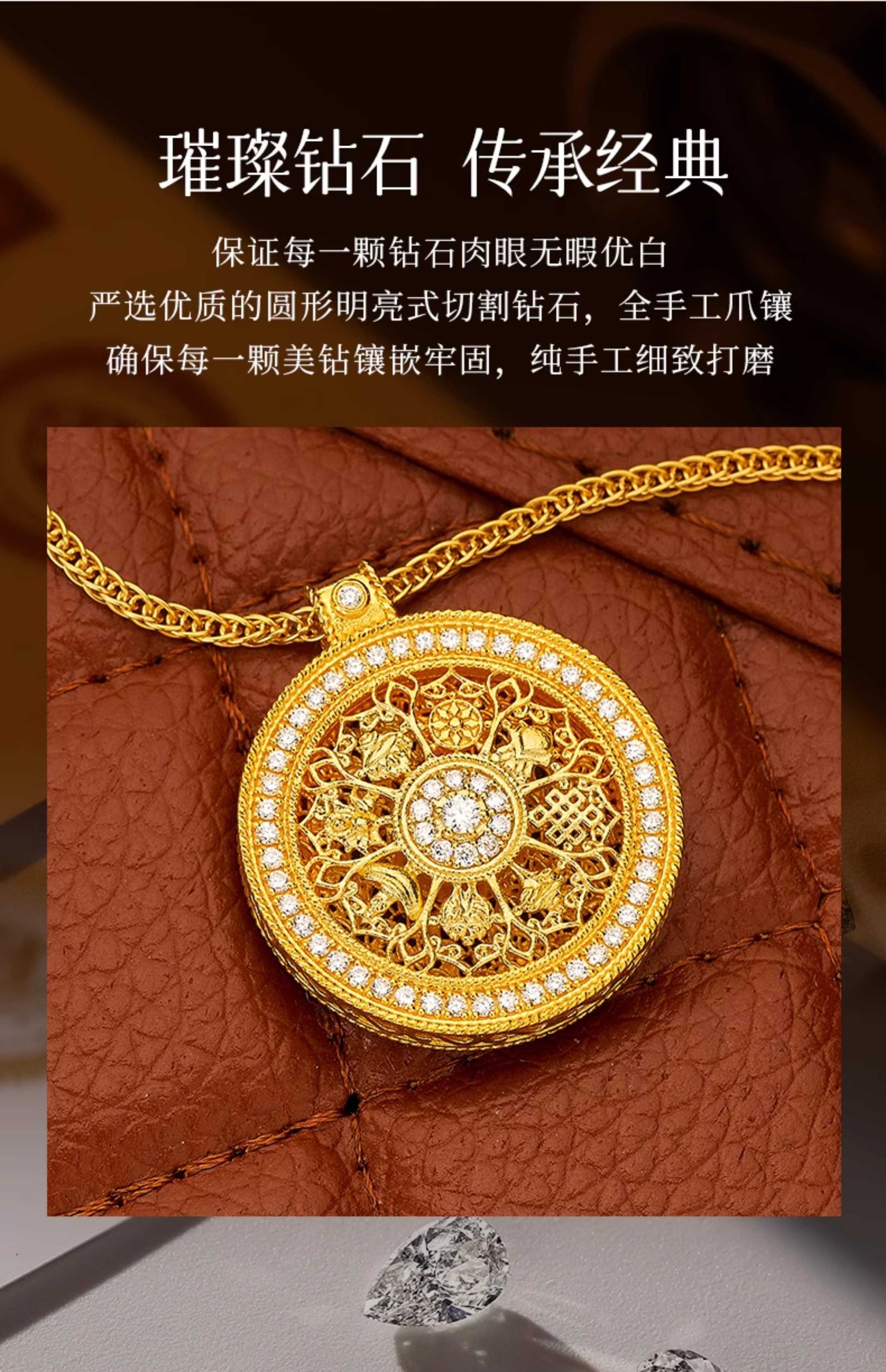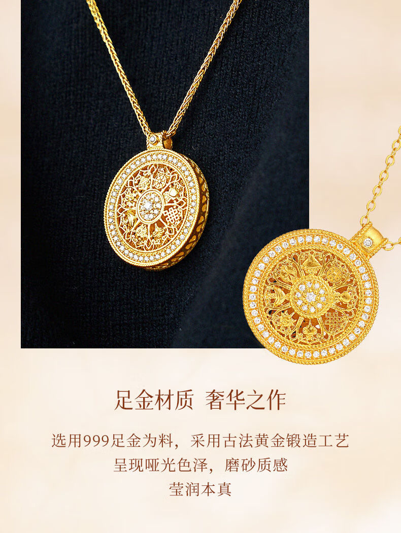 CAOX Eight Auspicious Eight Treasures Compass Ancient Gold Pendant Women's 999 Pure Gold Necklace Real Gold Inlaid with a Total of 46 Points of Diamonds