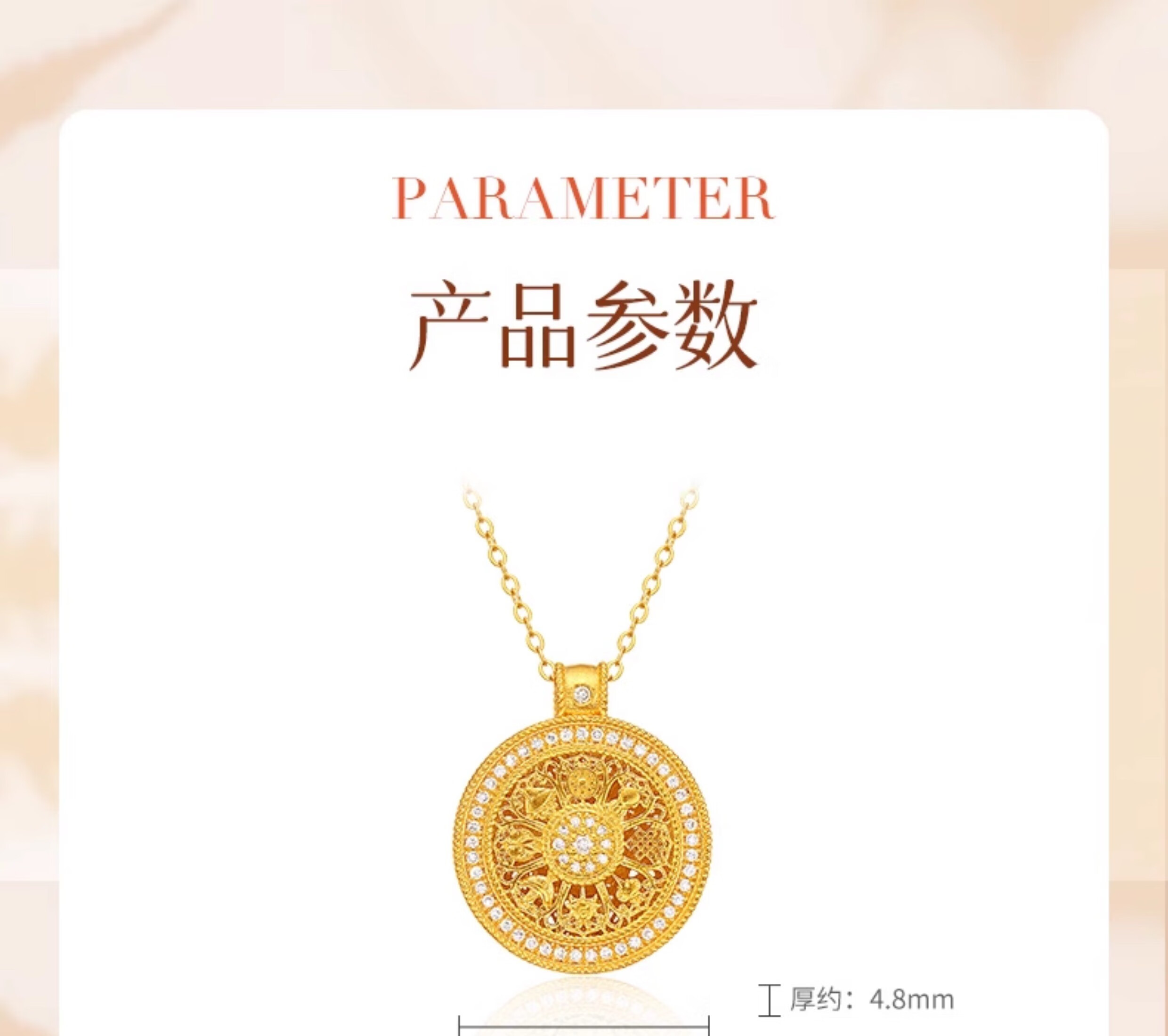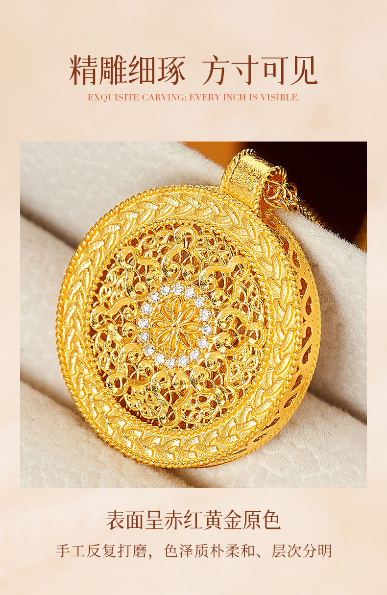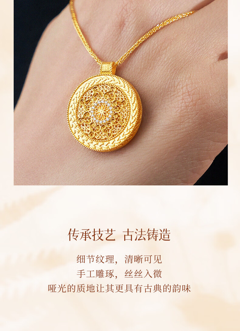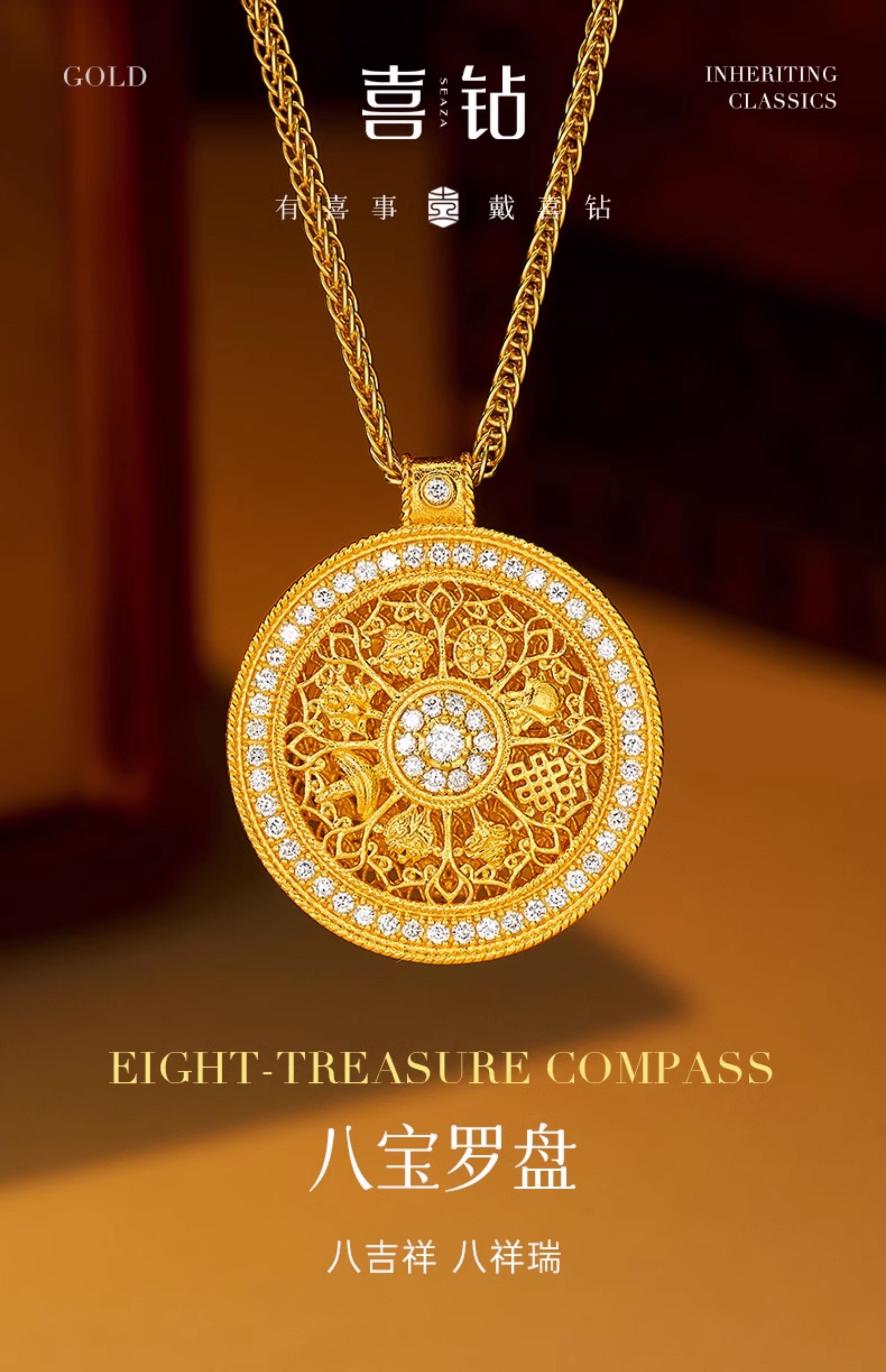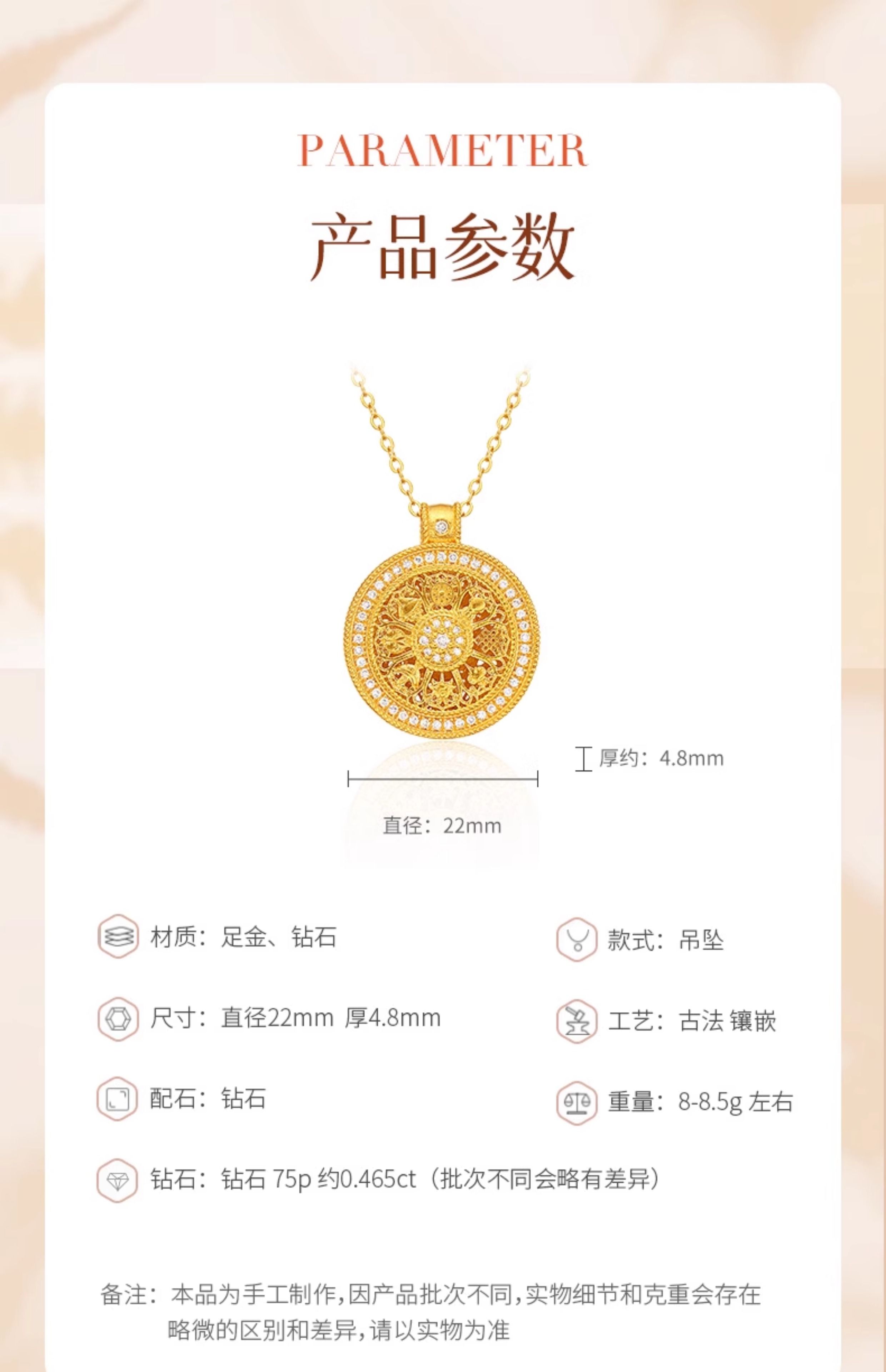 CAOX Eight Auspicious Eight Treasures Compass Ancient Gold Pendant Women's 999 Pure Gold Necklace Real Gold Inlaid with a Total of 46 Points of Diamonds
