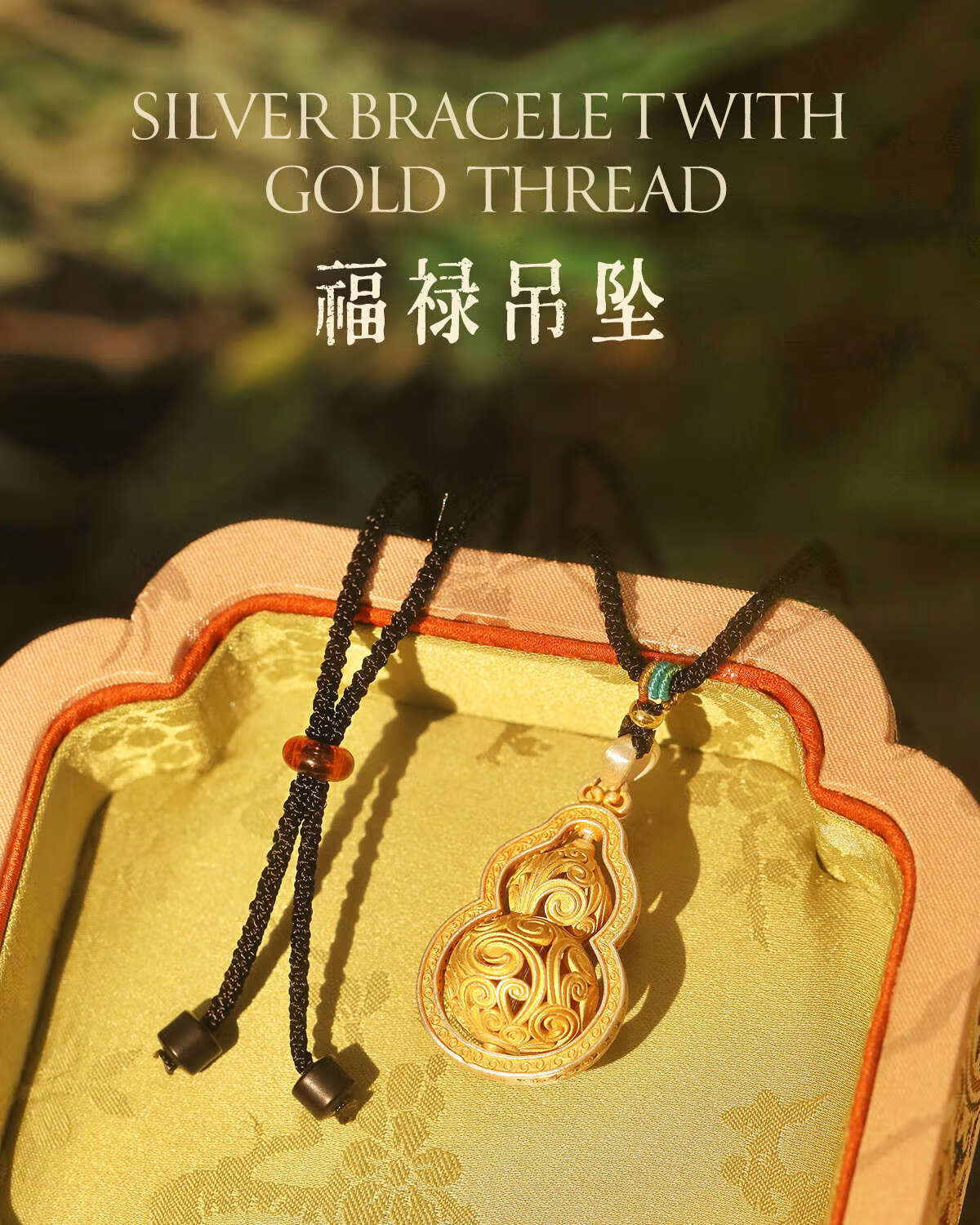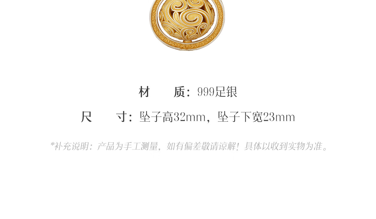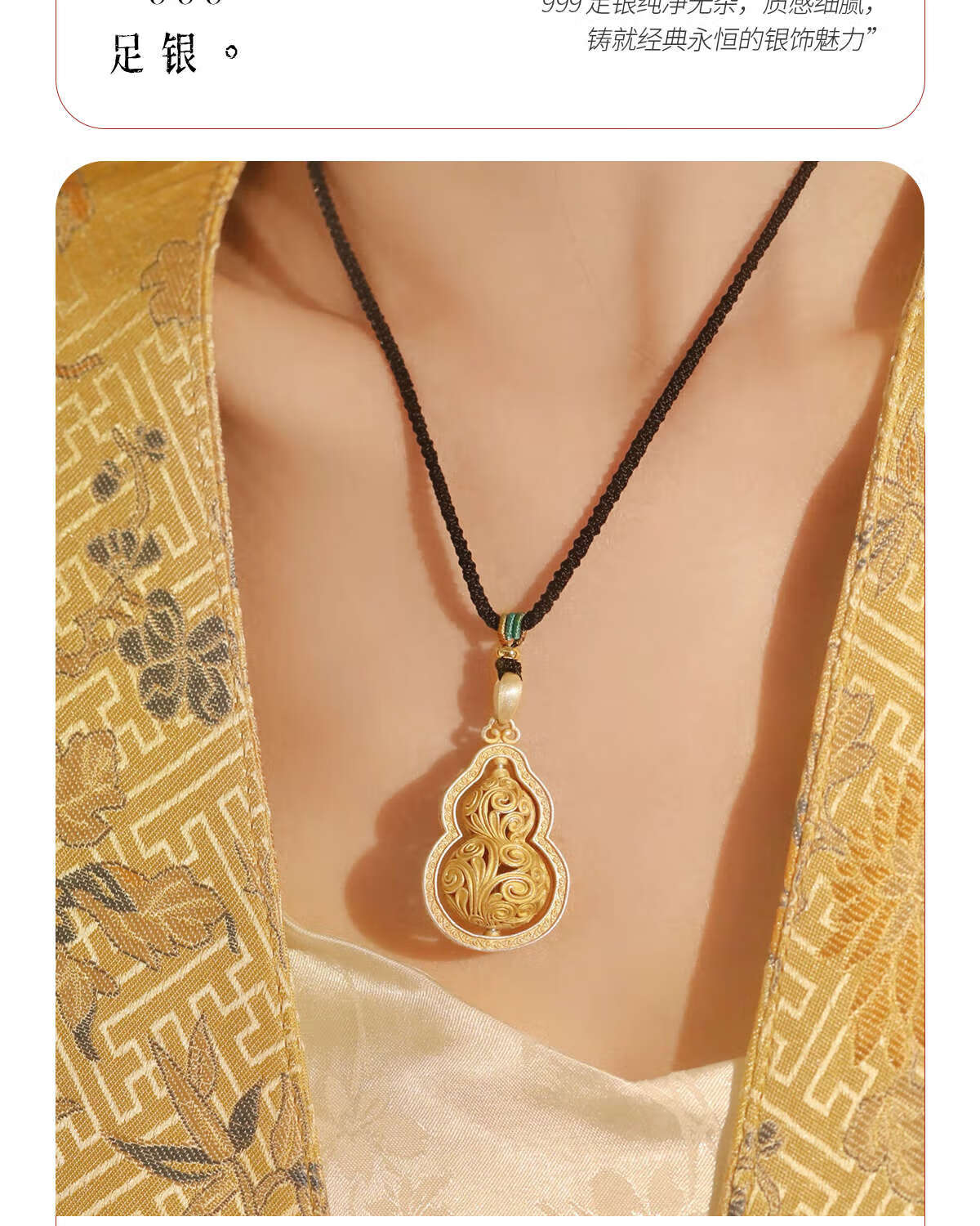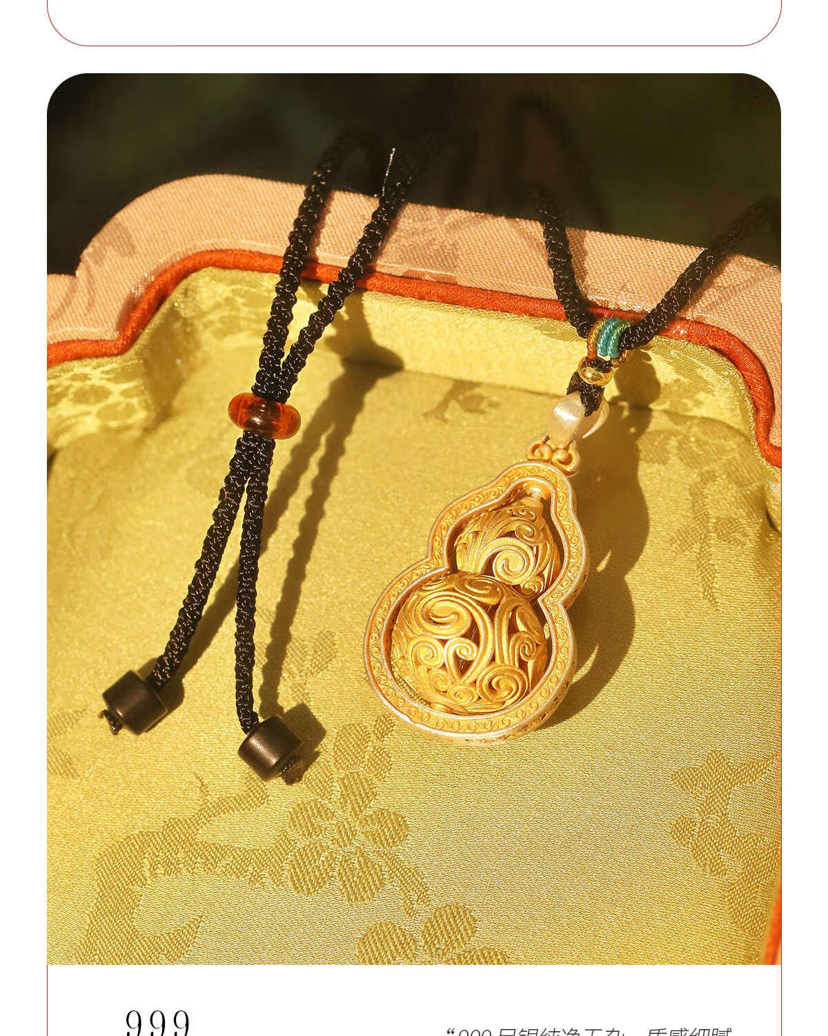 CAOX Fulu women's pure silver 9999 new Chinese sweater chain Tang grass pattern transfer bead tracing gold necklace sterling silver Fulu gourd.9999 pure silver pendant (rotatable