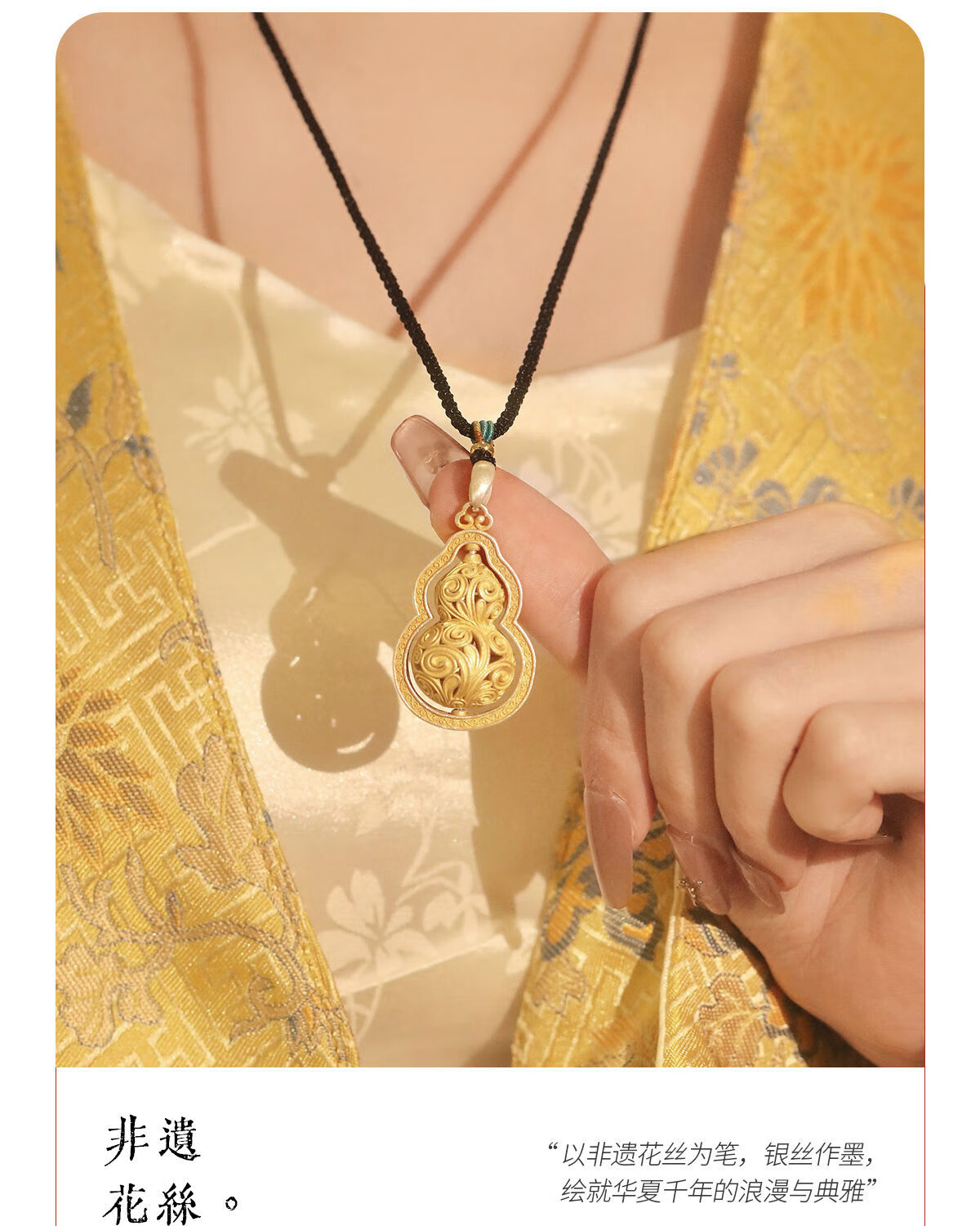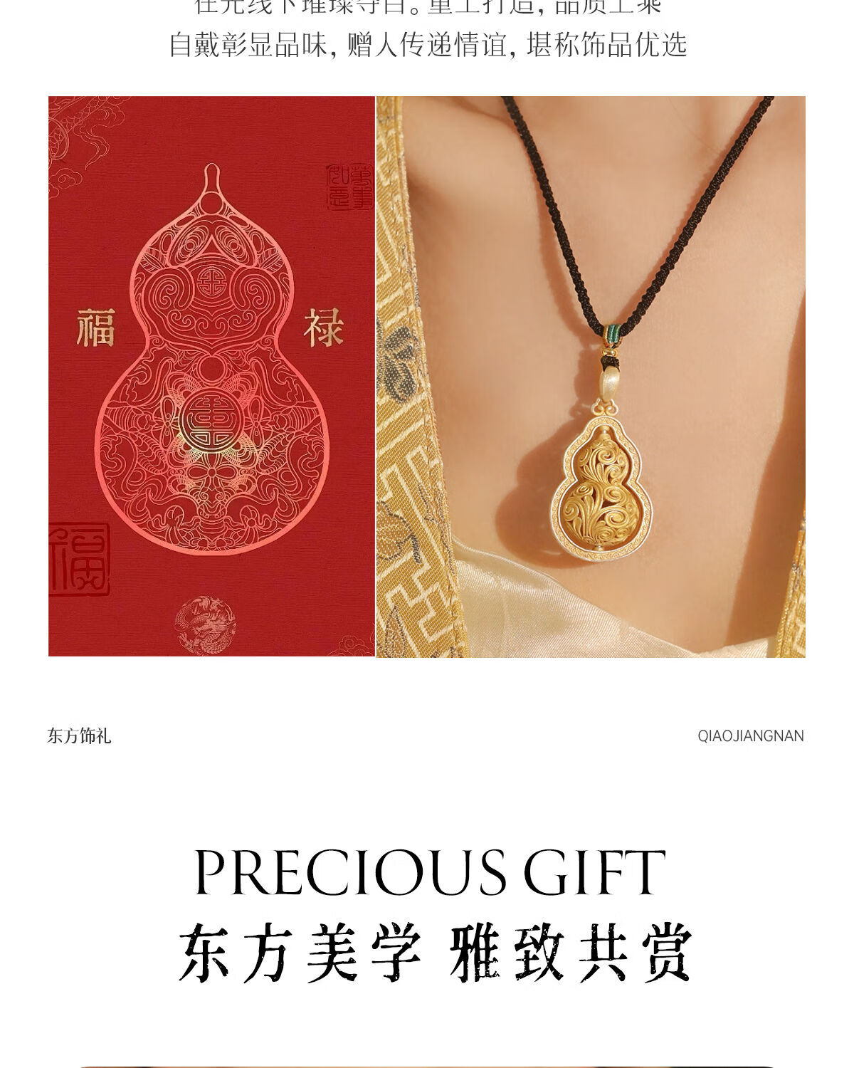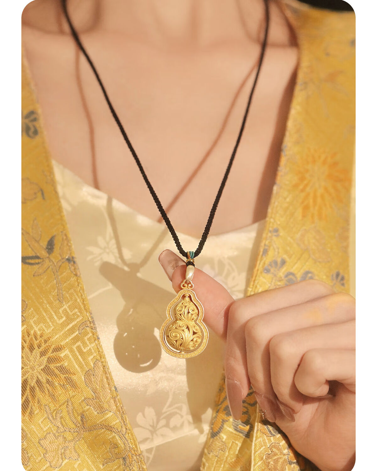 CAOX Fulu women's pure silver 9999 new Chinese sweater chain Tang grass pattern transfer bead tracing gold necklace sterling silver Fulu gourd.9999 pure silver pendant (rotatable