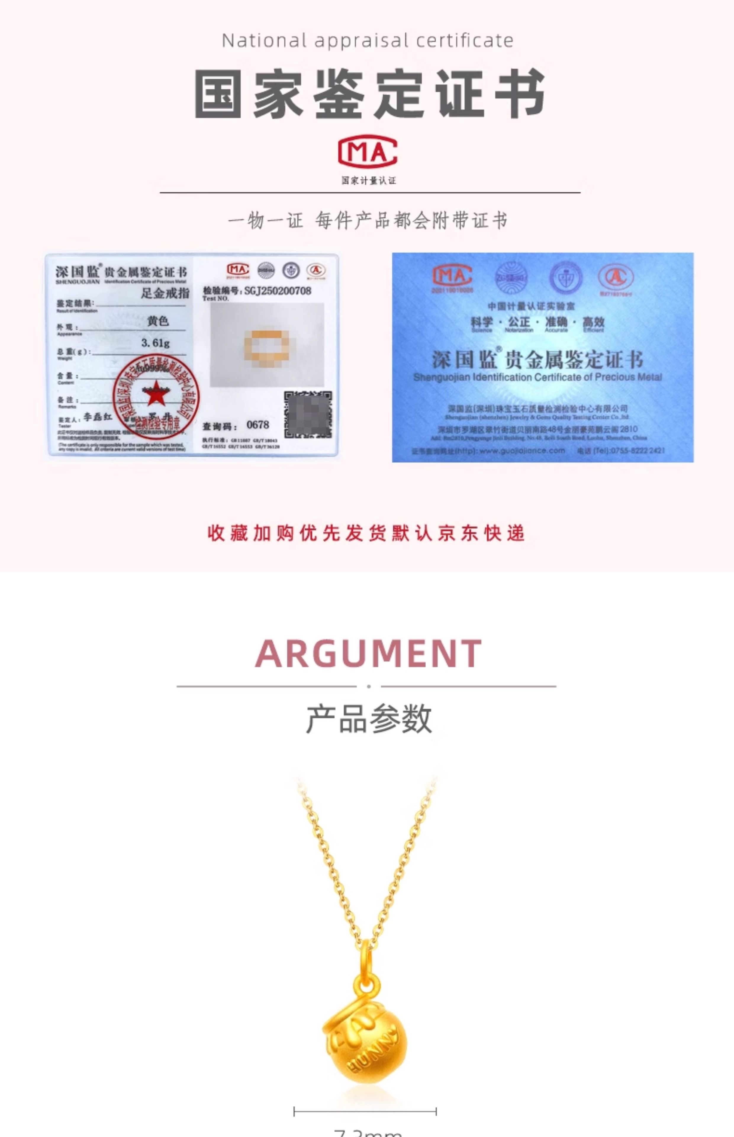 CAOX Sweet Jar Pendant Pure Gold 999 Pure Gold Pendant 5D Hard Gold Necklace as a Gift for Your Girlfriend Sweet Jar Pendant - Free Silver Necklace Pendant