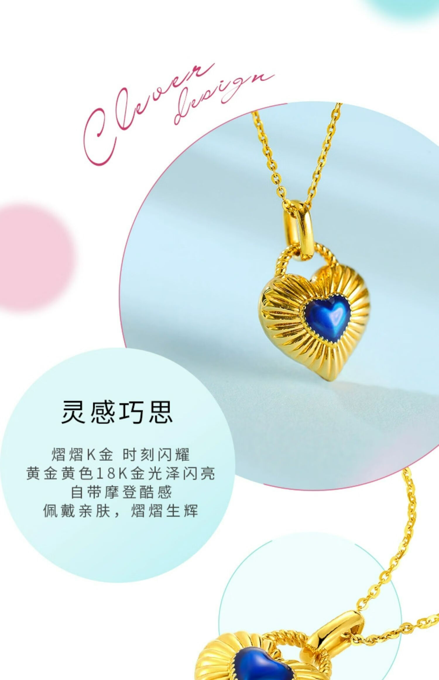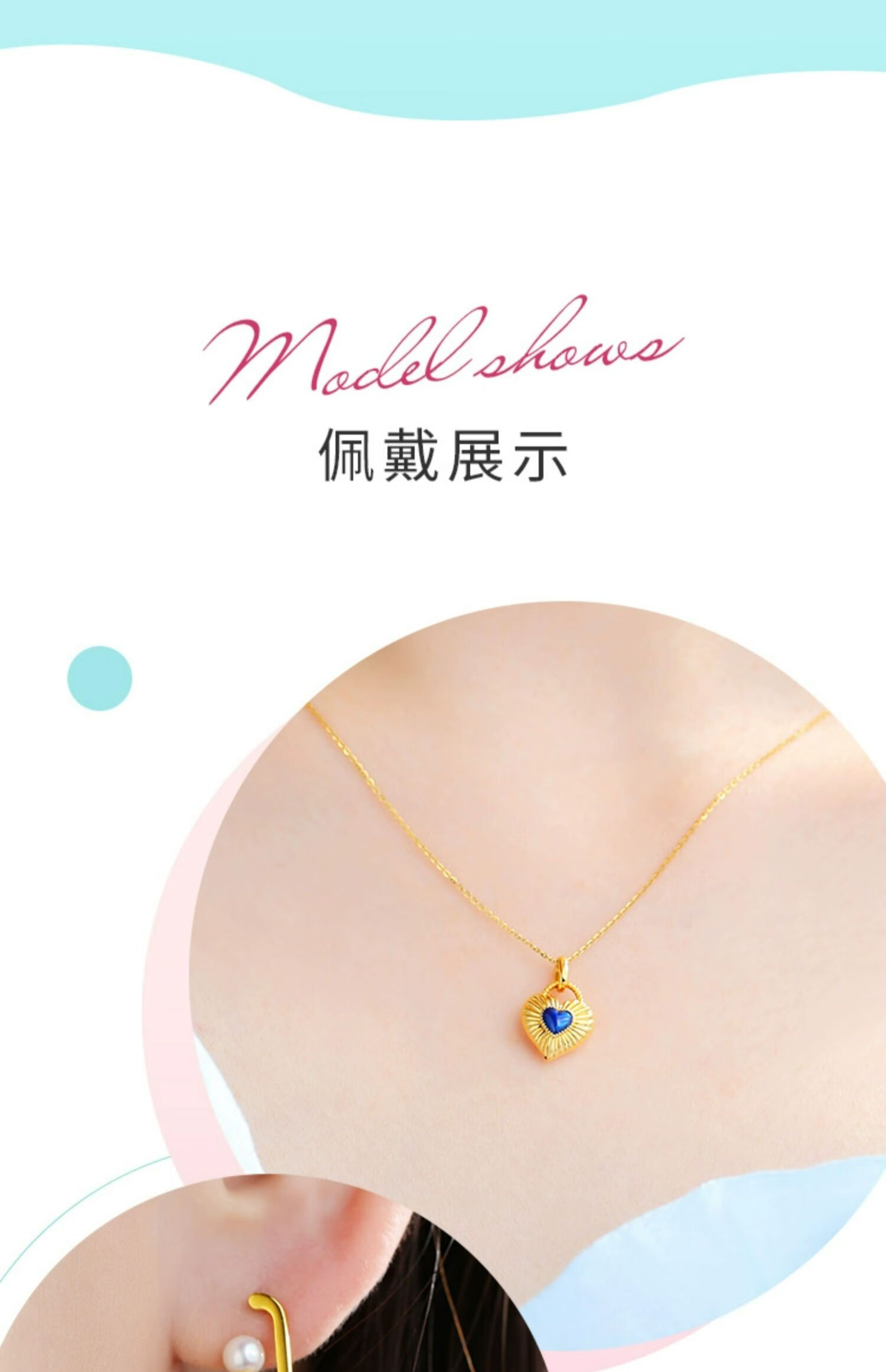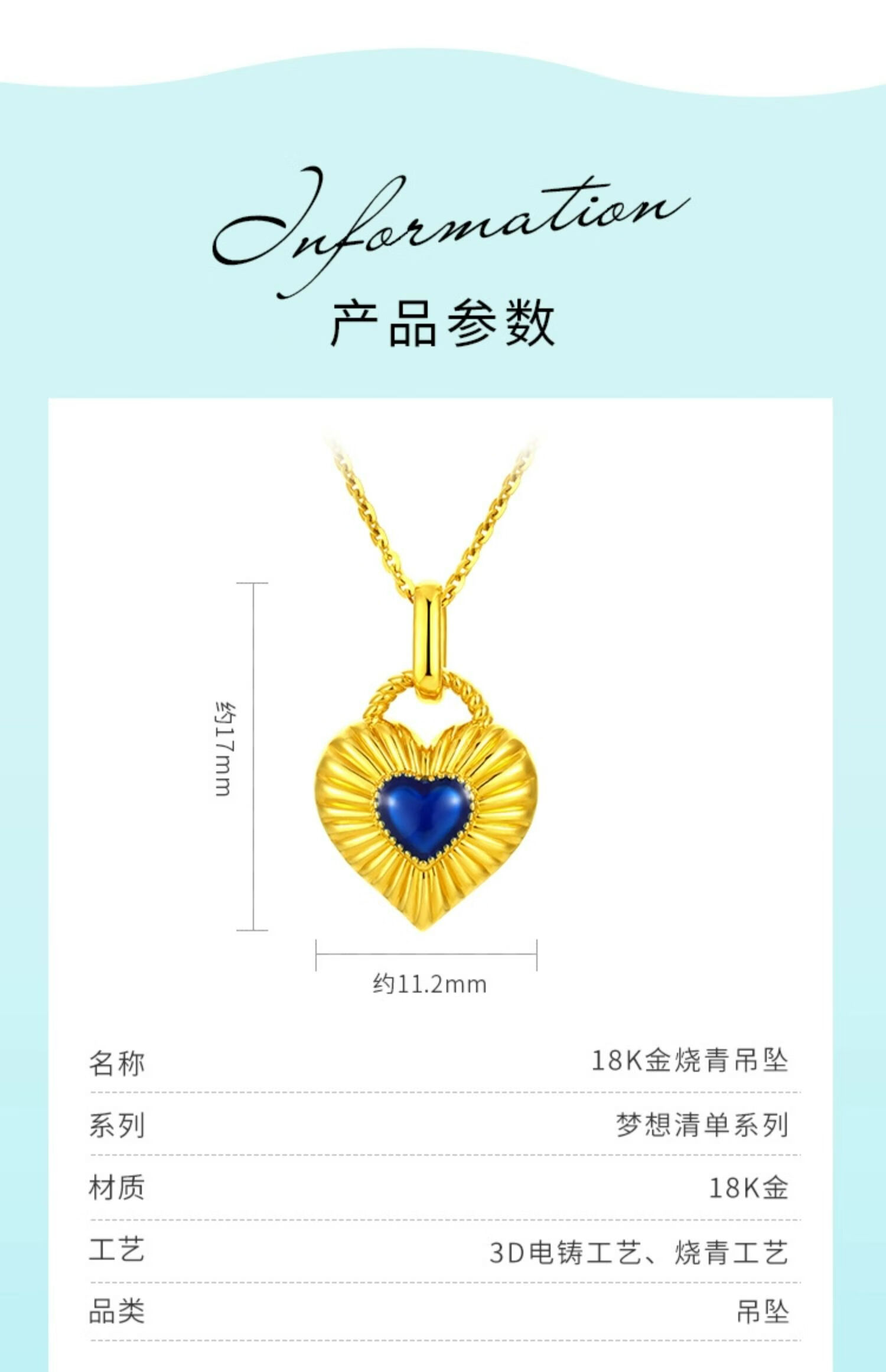 CAOX Jewelry 18K Gold Pendant Necklace Love Small Burnt Blue Craft Dream List Ocean Heart Necklace 18K Gold Pendant