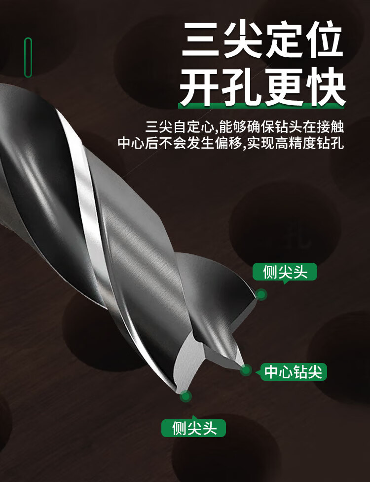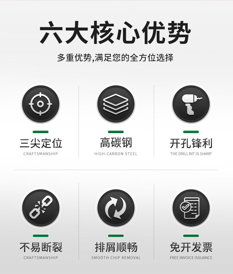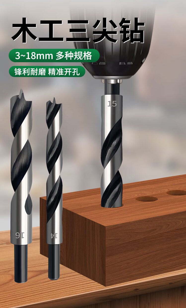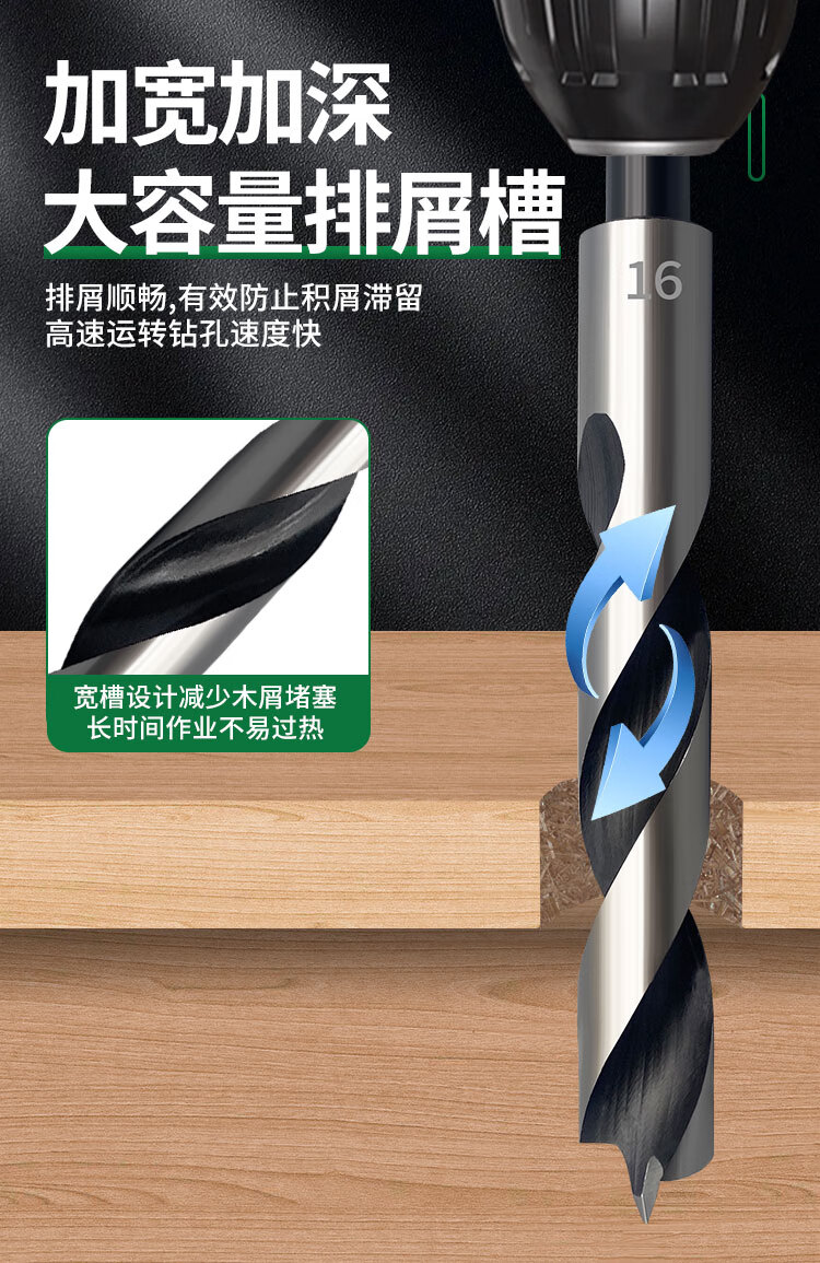 Wo Yi Tools WO YI TOOLS Wo Yi woodworking drill drill three-point positioning hole opener large model edge-clearing twist drill plastic hole board hole drill supreme 16-piece set carbon steel three-point drill free large box