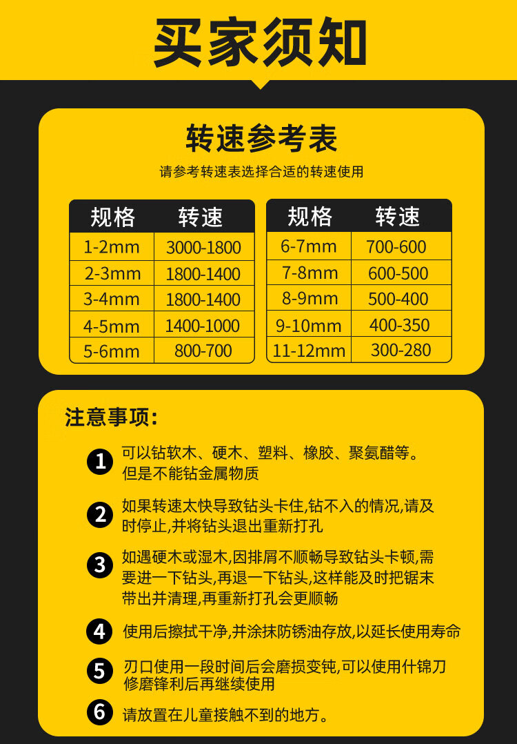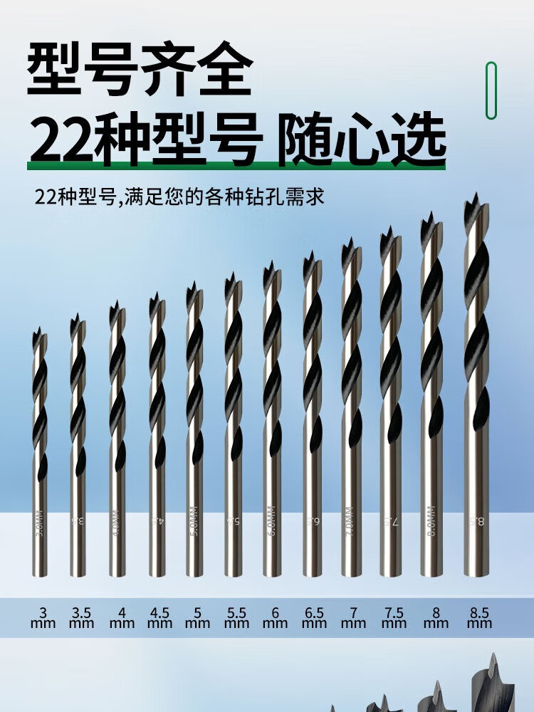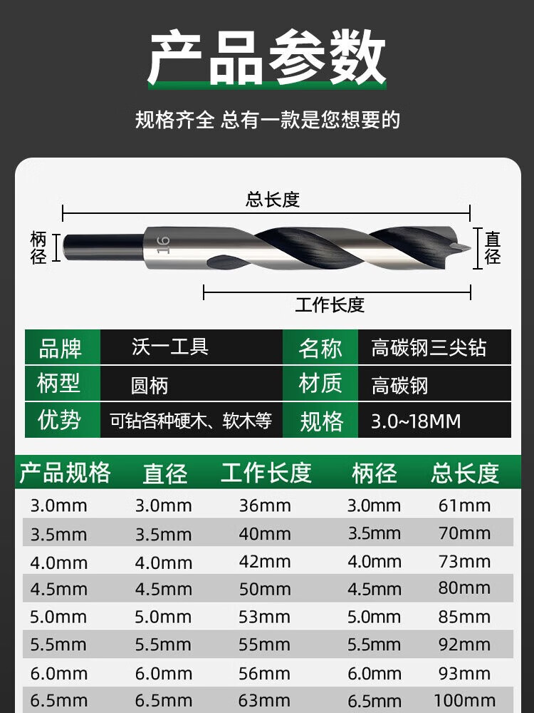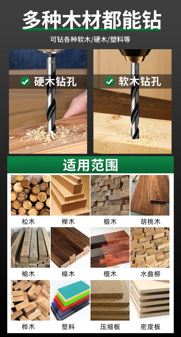 Wo Yi Tools WO YI TOOLS Wo Yi woodworking drill drill three-point positioning hole opener large model edge-clearing twist drill plastic hole board hole drill supreme 16-piece set carbon steel three-point drill free large box