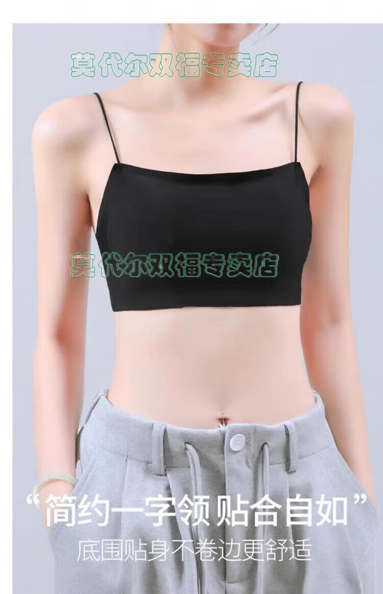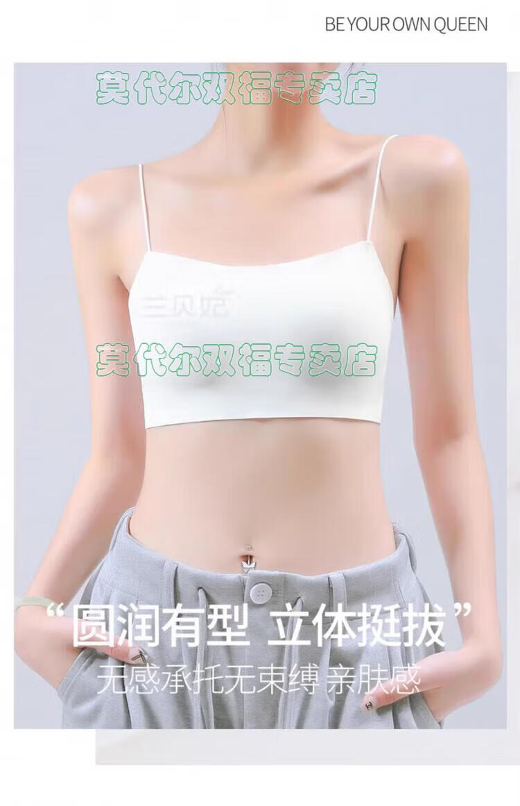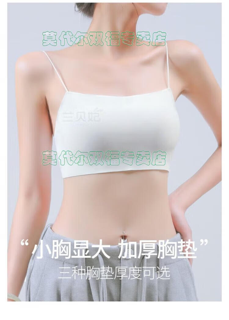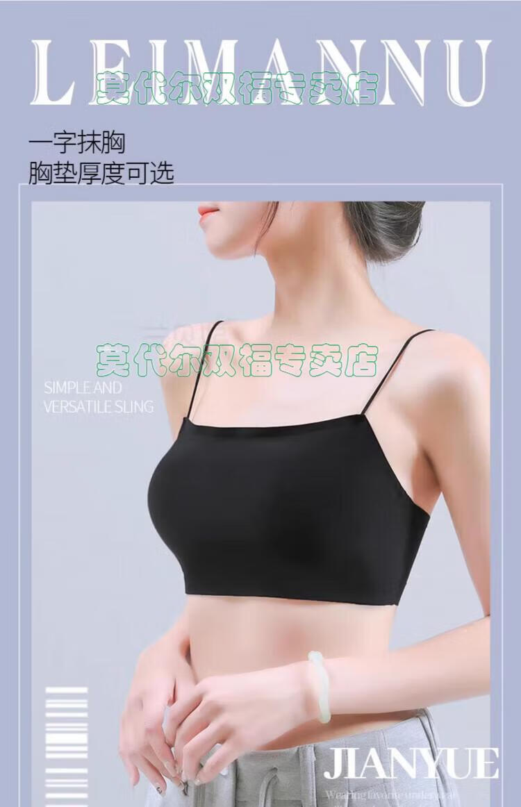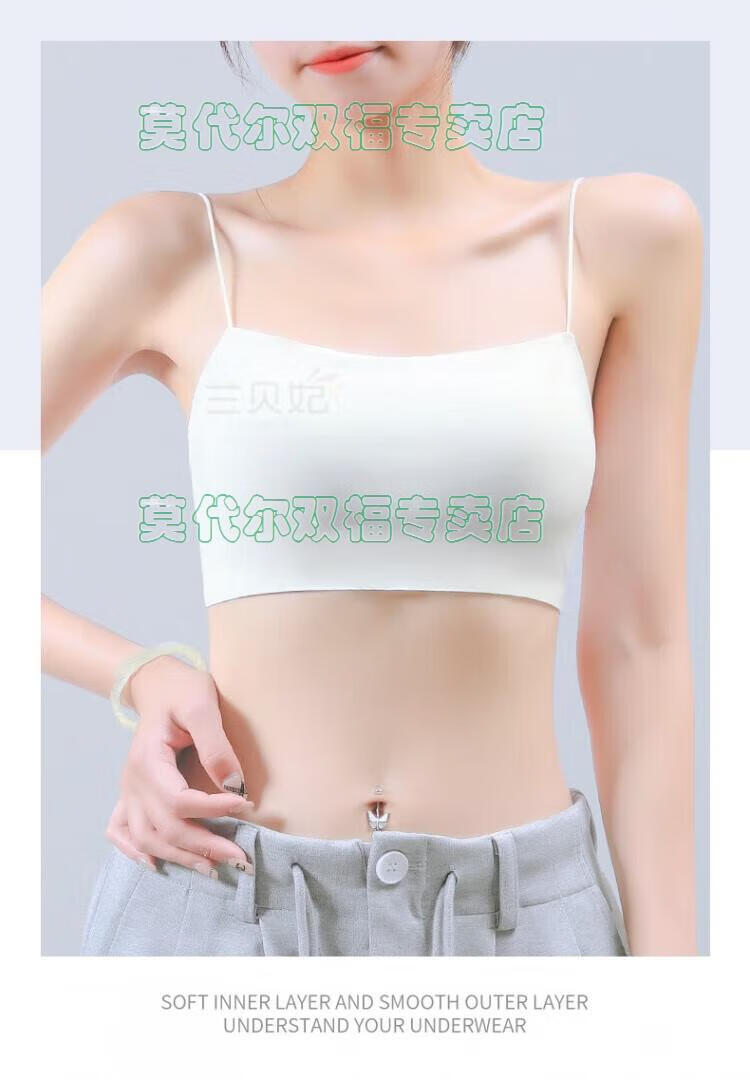 Modal spaghetti strap tube top bra for women, push-up, anti-exposure, small breasts, big and thickened, fixed cup, beautiful back strap bra, skin color, fixed cup, M 3CM thickened, 85-105Jin Jin is equal to 0.5kg