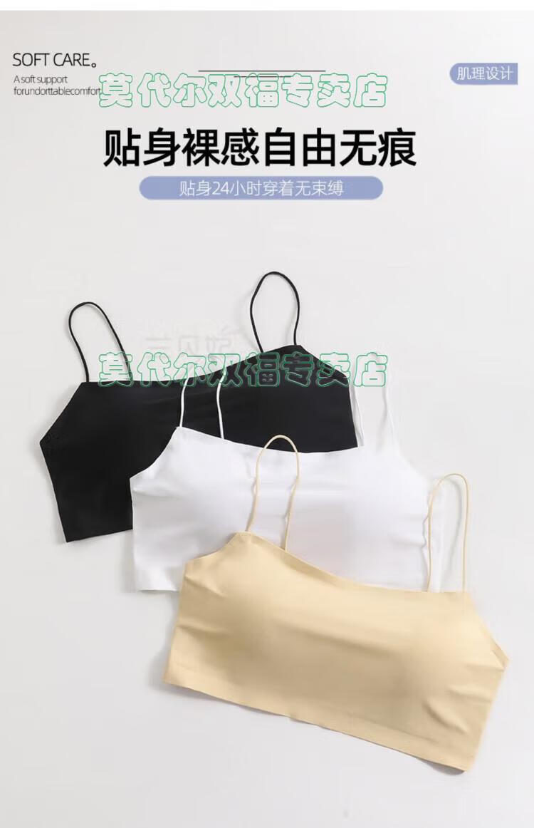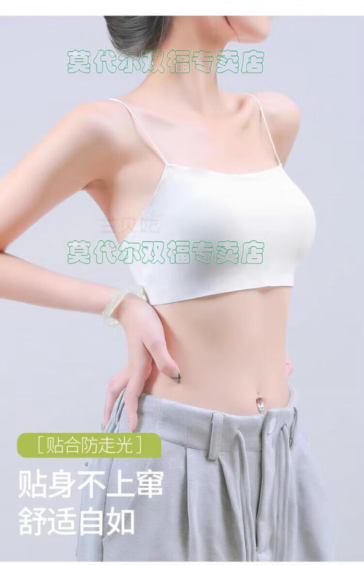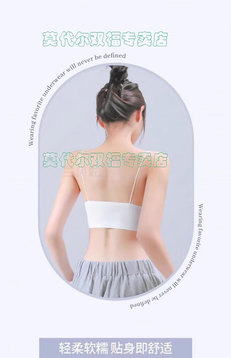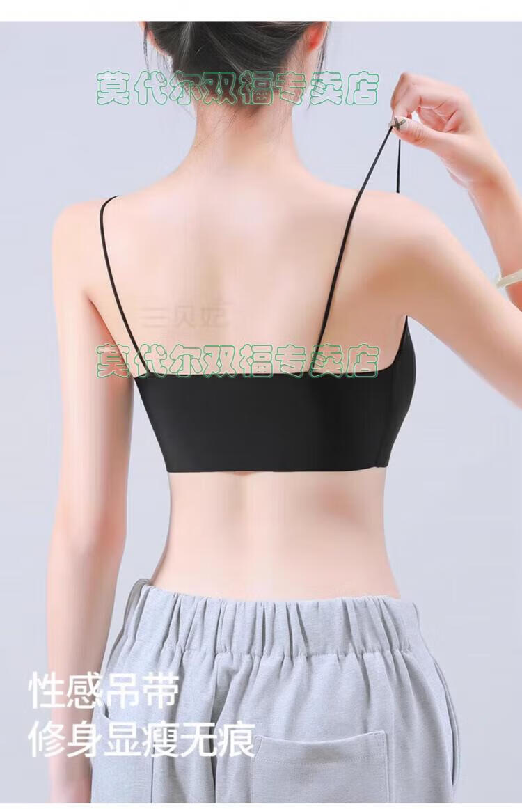 Modal spaghetti strap tube top bra for women, push-up, anti-exposure, small breasts, big and thickened, fixed cup, beautiful back strap bra, skin color, fixed cup, M 3CM thickened, 85-105Jin Jin is equal to 0.5kg