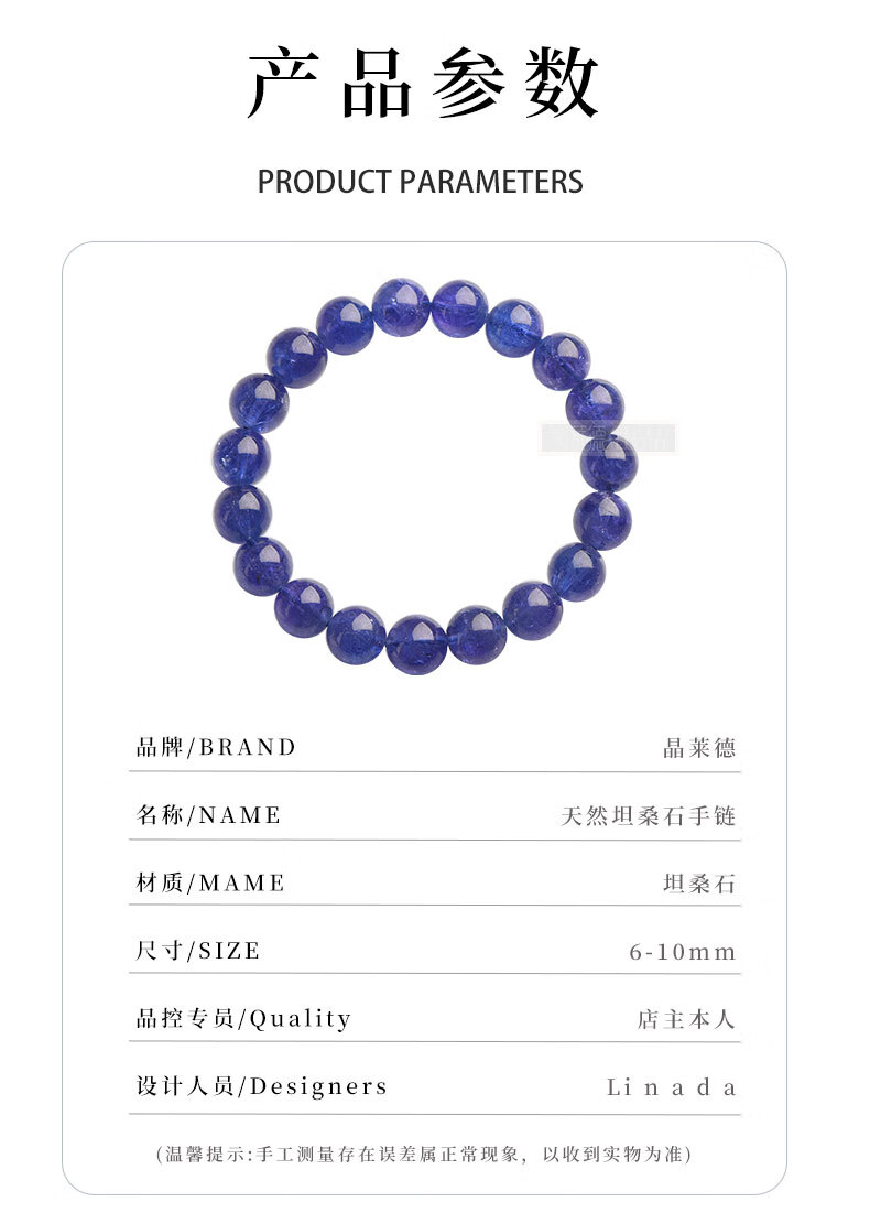 Chili Collection Natural Tanzanite Bracelet Purple Blue Bracelet Sapphire Cordierite High-end Crystal Gift for Women Premium Tanzanite Bracelet About 6mm Bead Diameter Tanzanite