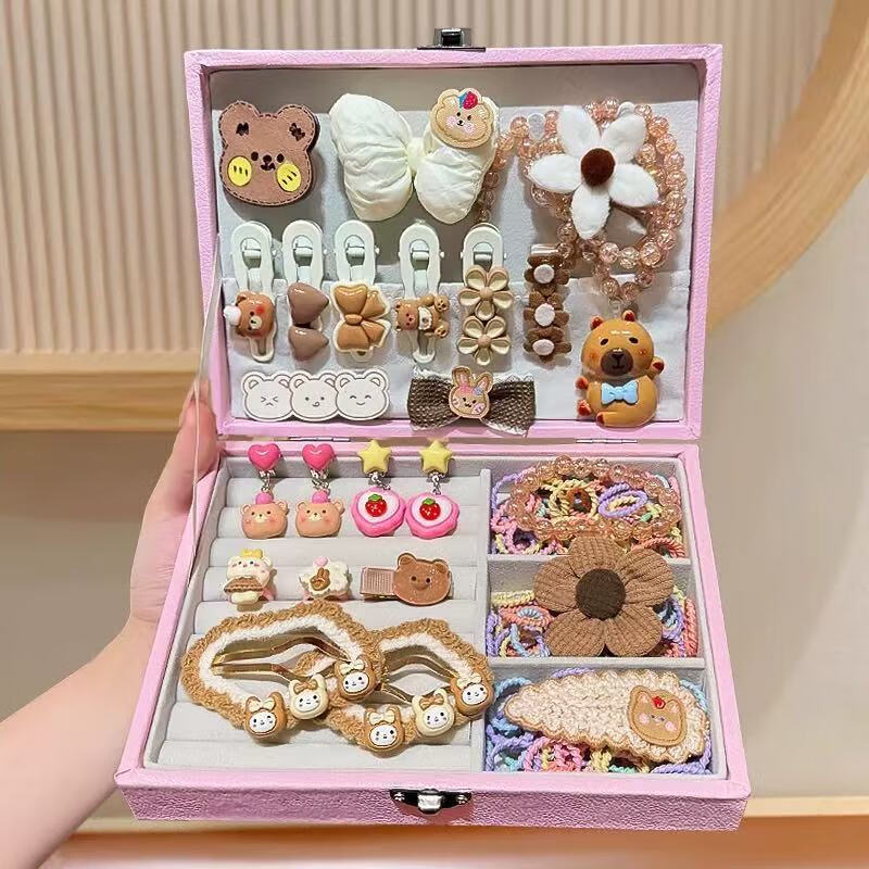 Children's hair accessories gift box for girls, cinnamon dog hairpin set, baby rubber band bracelet, little girl's Children's Day gift headdress, TS282-04 pink Melody hair accessories gift box