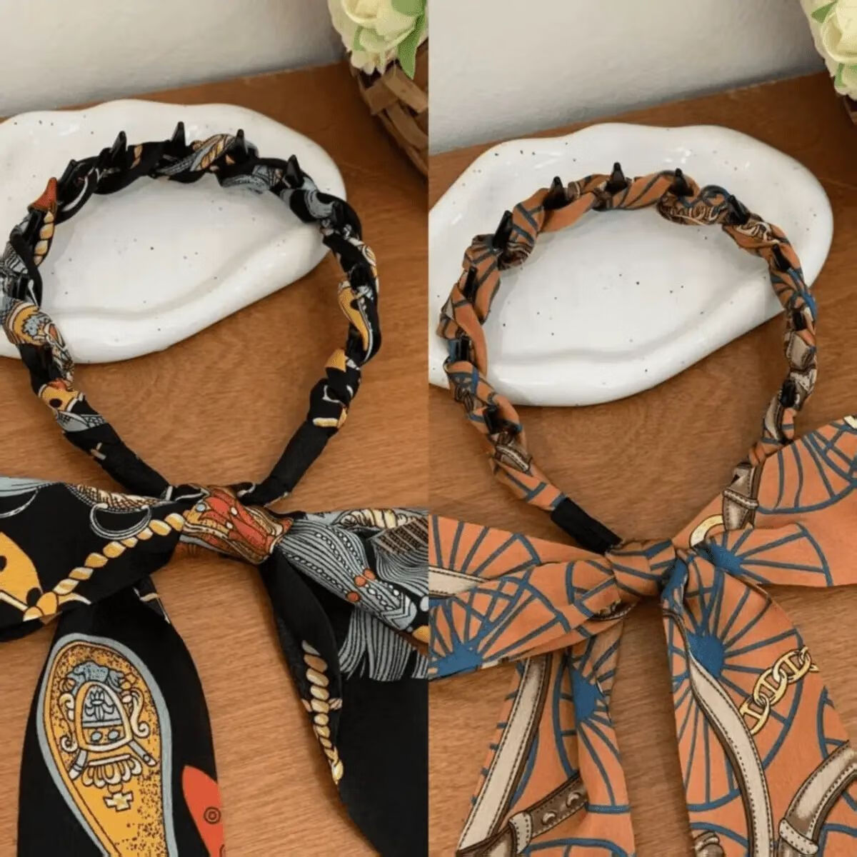 Front and back retro palace headbands, versatile headbands for women when going out, flowery streamers, tooth comb, wavy high skull headbands, two random packs