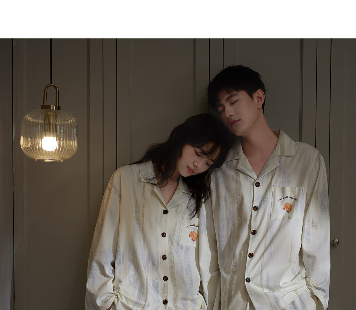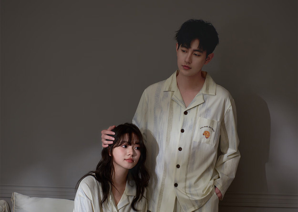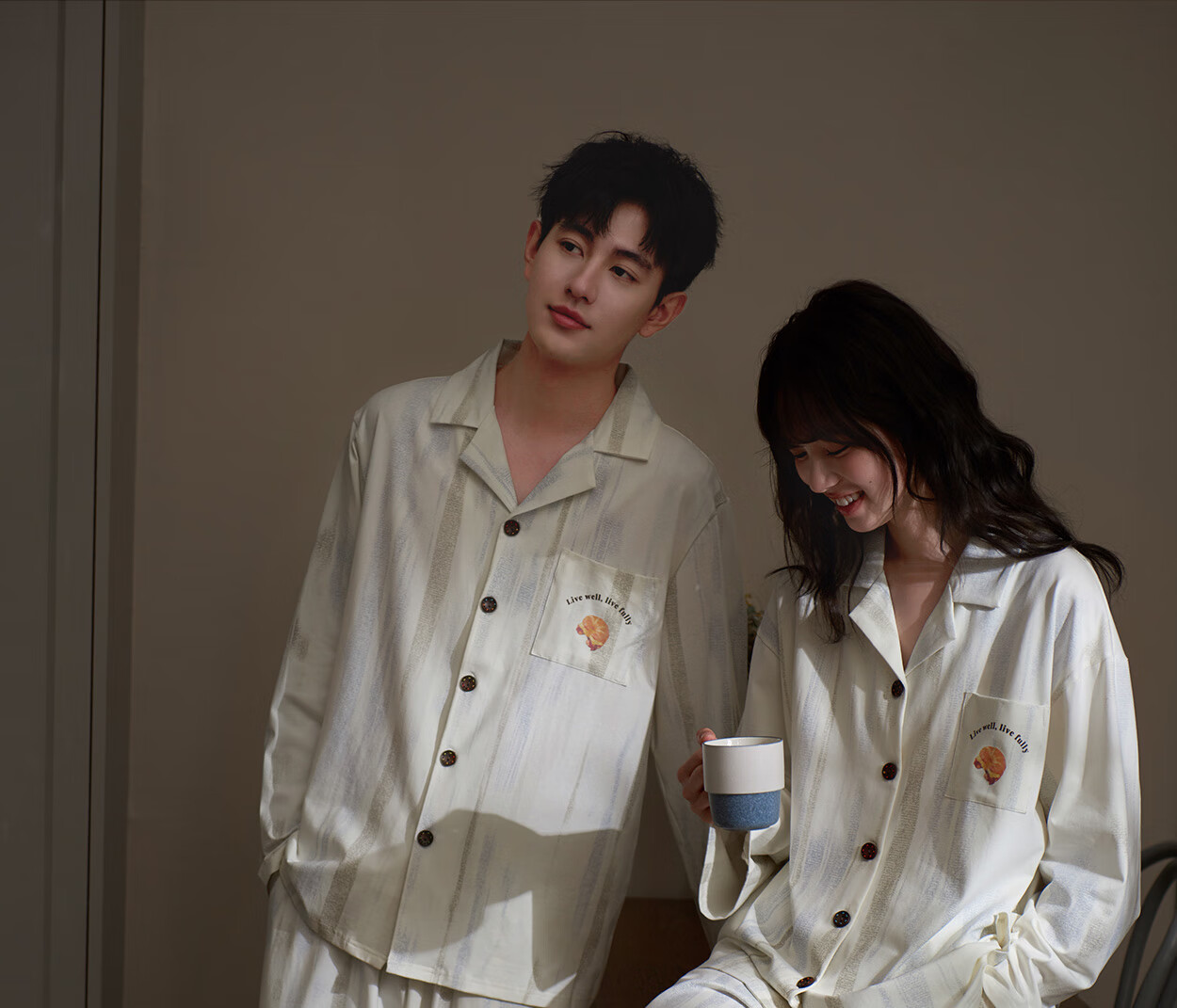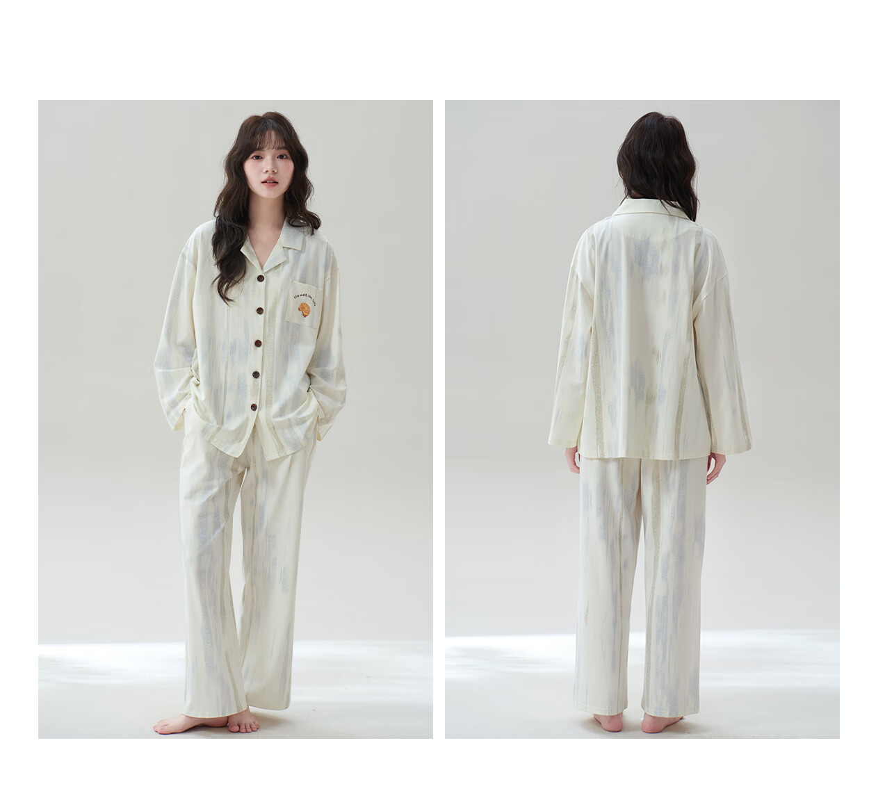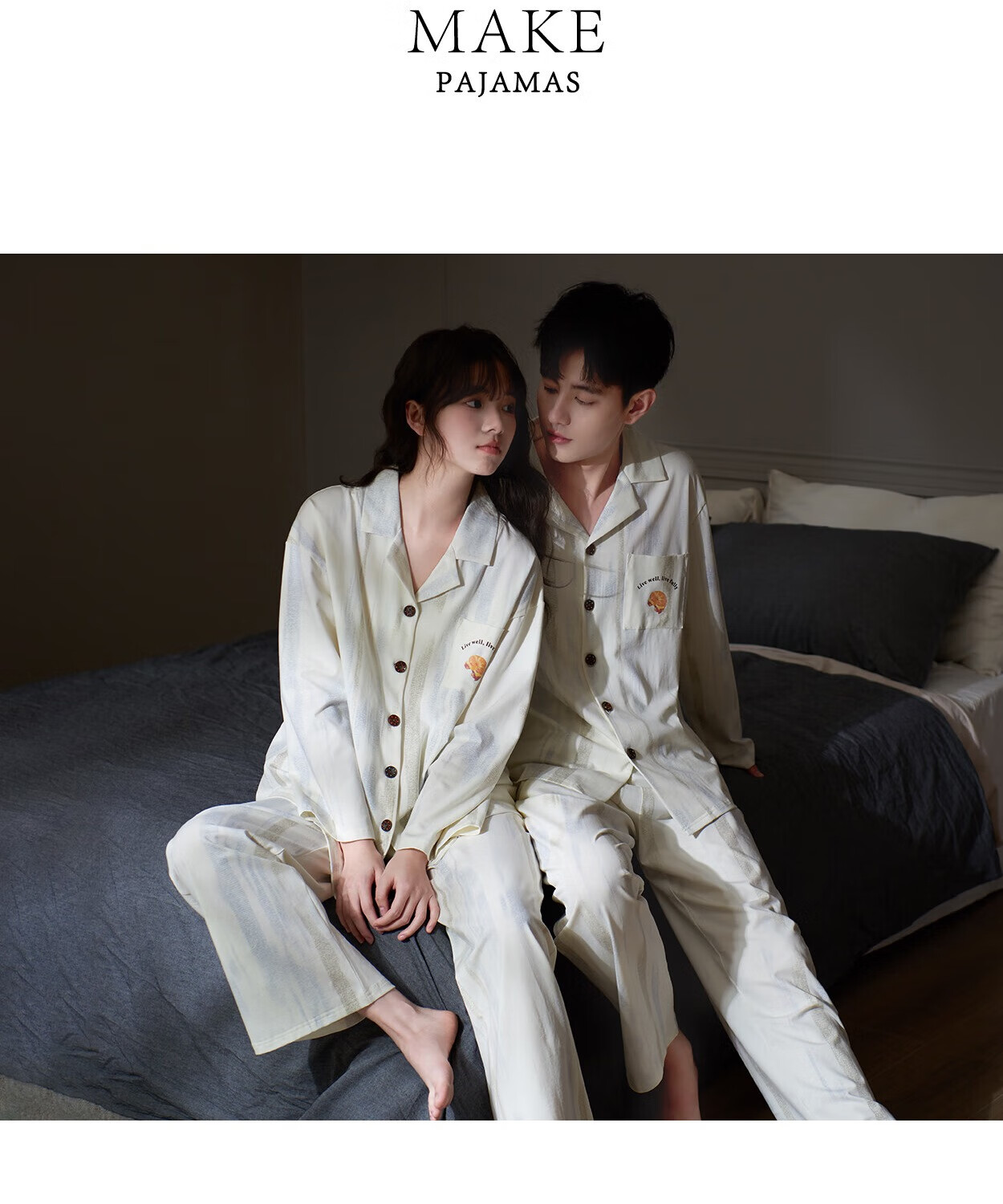 Princess Mark 2025 new female Korean style home clothes can be worn outside couples pure cotton pajamas men's spring and autumn casual suit HZ2917-couple female style L
