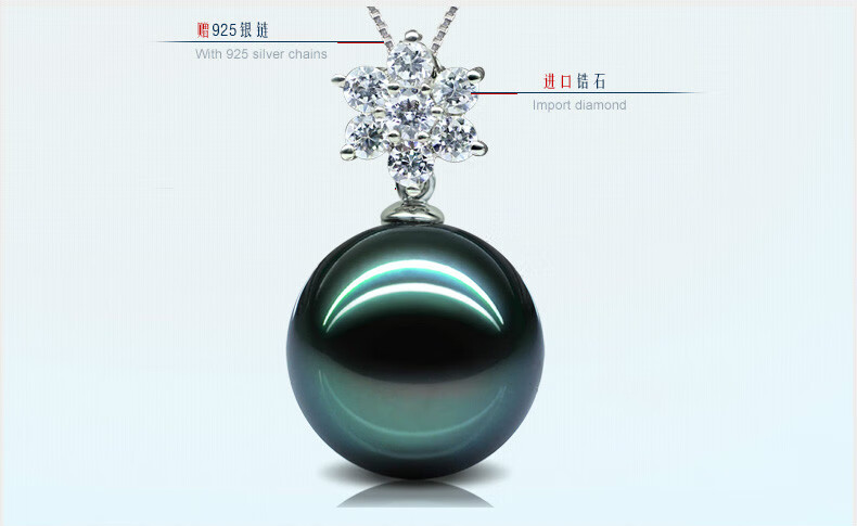 DL 1998 Fat Donglai quality Tahitian black pearl pendant clavicle chain 925 silver perfect round and flawless temperament 8mm-9mm black