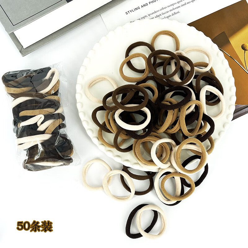 High elastic hair tie, seamless hair rope, solid color non-stretch towel ring, autumn and winter milk coffee color high ponytail head rope, black hair tie-20 pieces