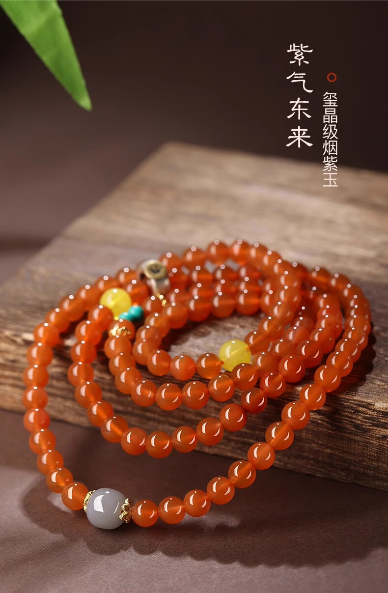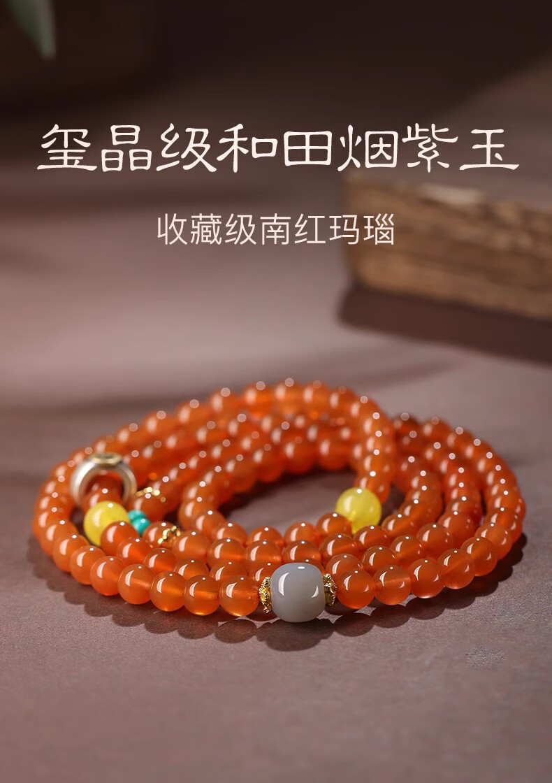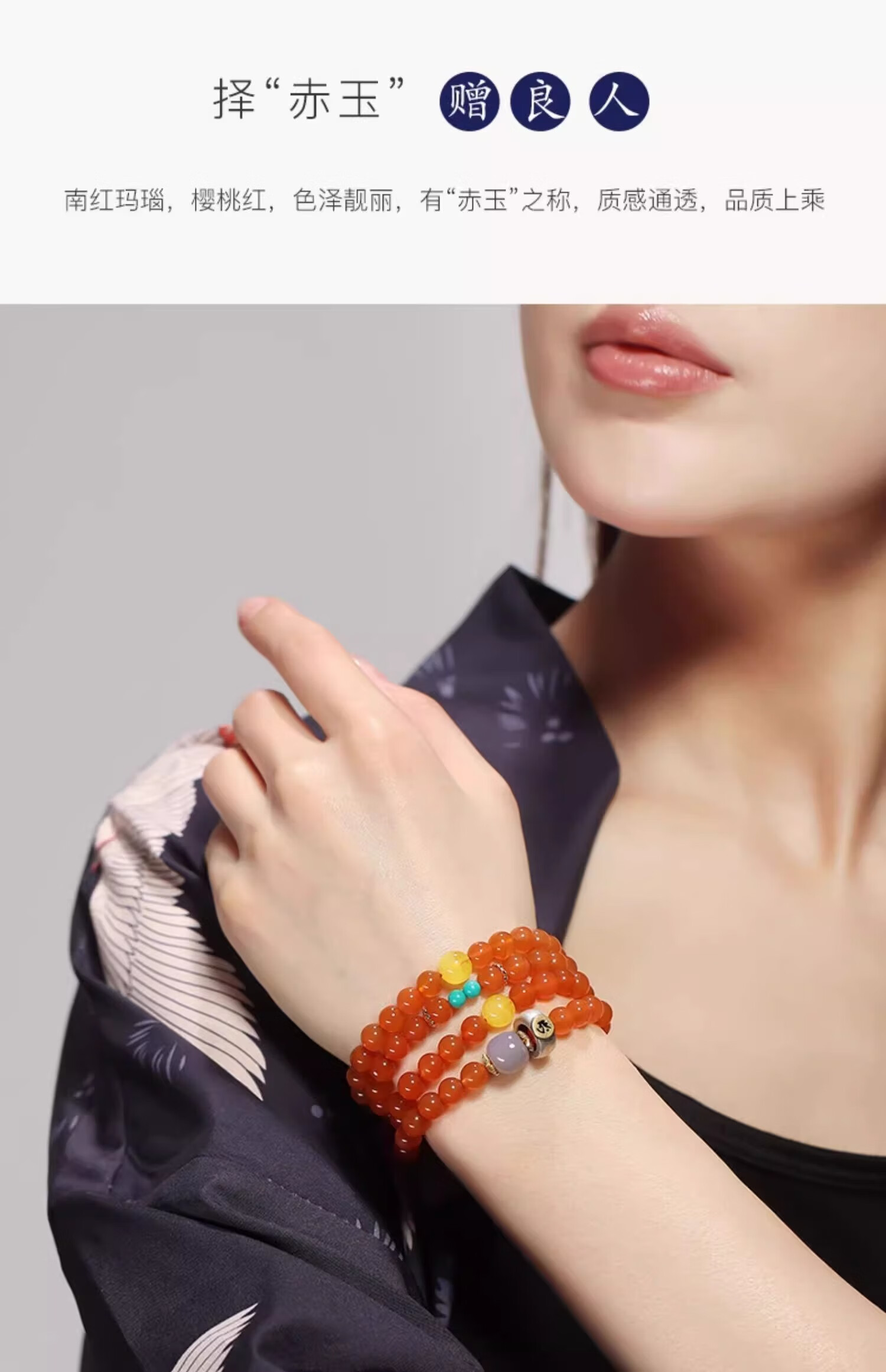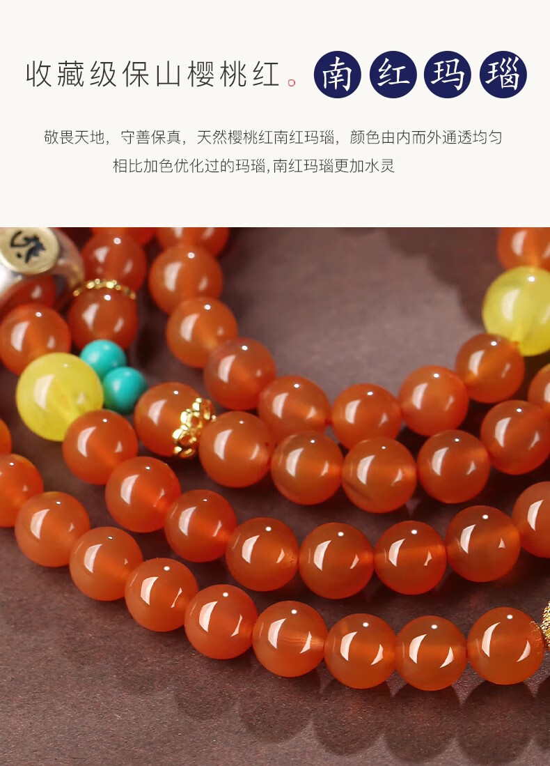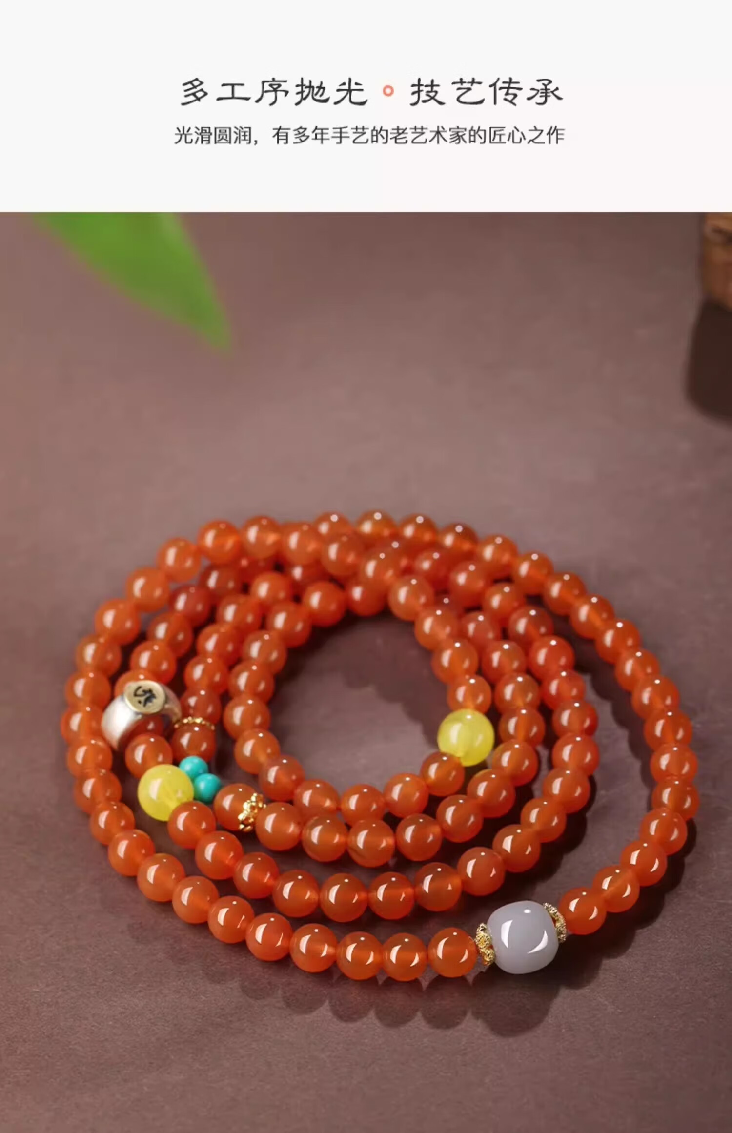 Madowetin South Red Agate 108 Buddha Beads Bracelet Women's Multi-circle Bracelet Zodiac Year Amulet Rosary Beads Holiday Gift Puxian Bodhisattva (Dragon/Snake) Bead Diameter 6MM