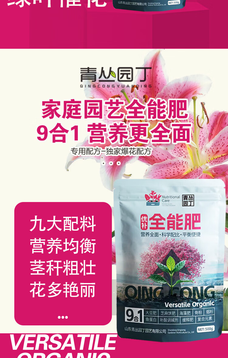 Nine-in-one fertilizer with thick stems, lush green leaves, luxuriant flowers, and colorful flowers, promoting flowers and fruits, universal excellent supplement-fertilizer 1 bag 500g, regular pack