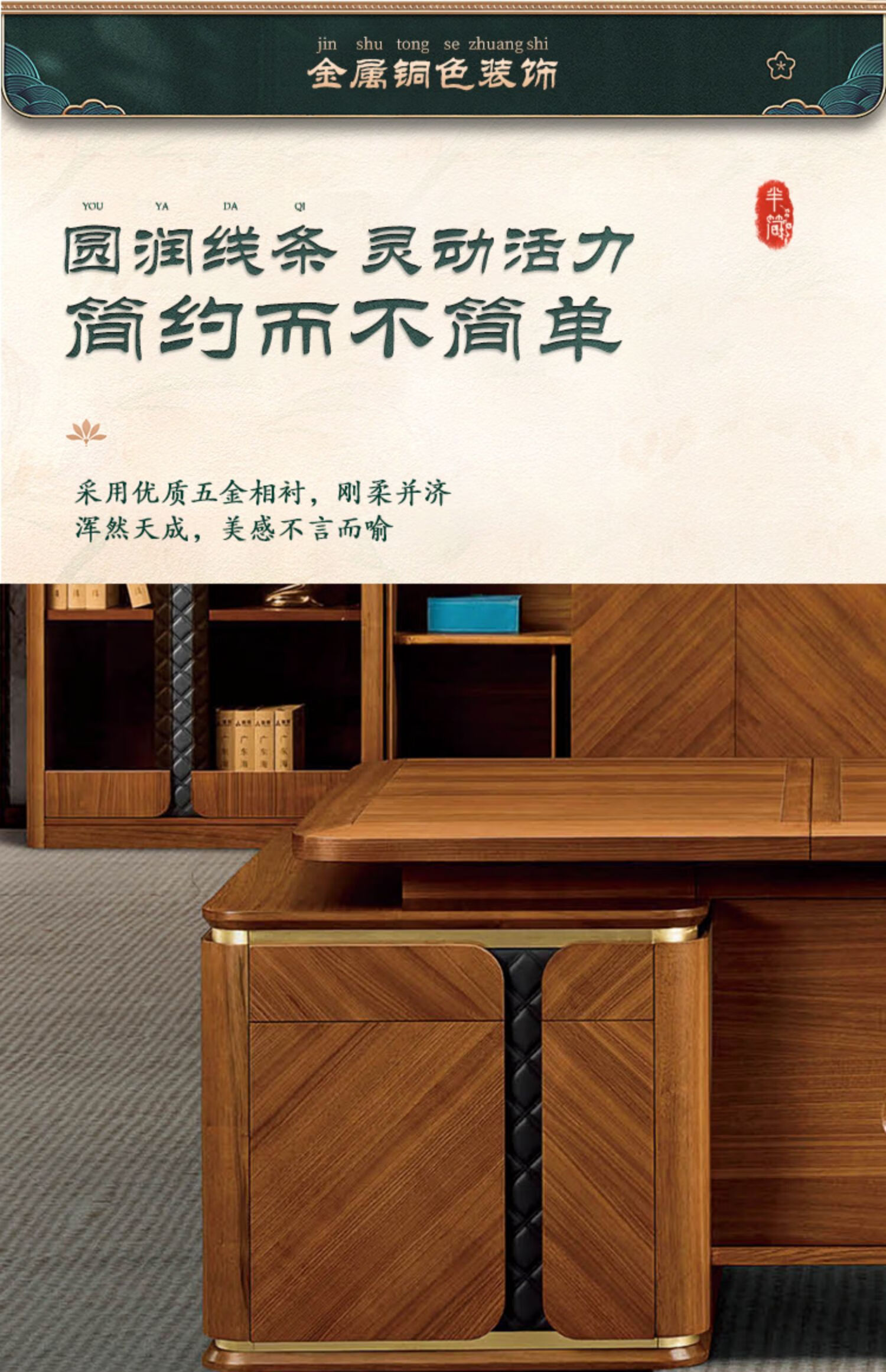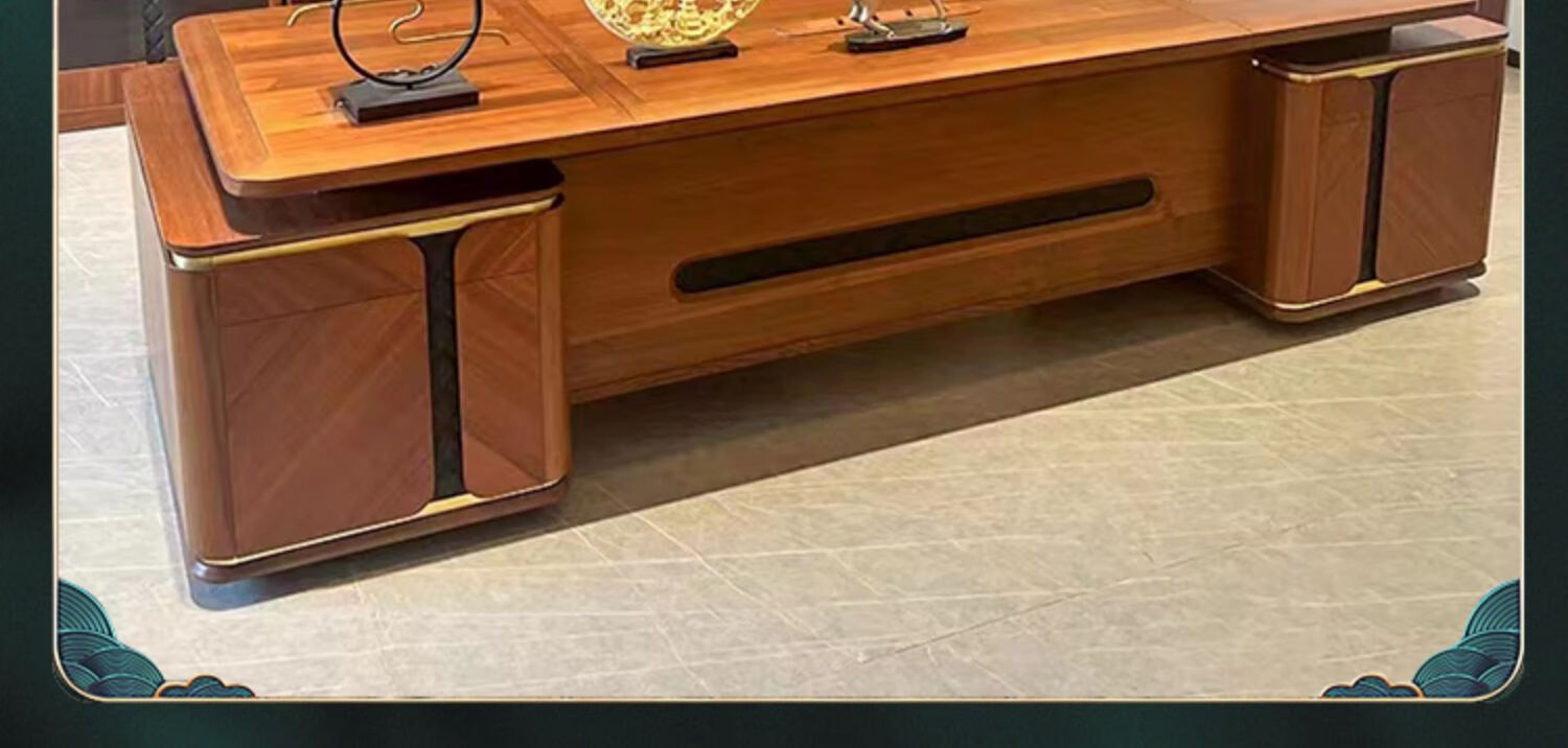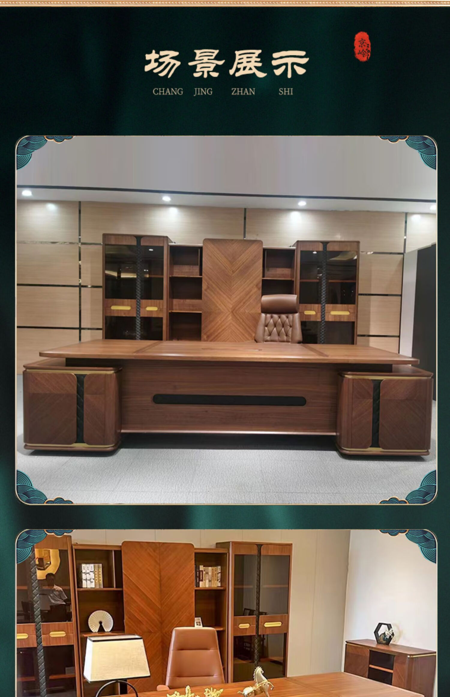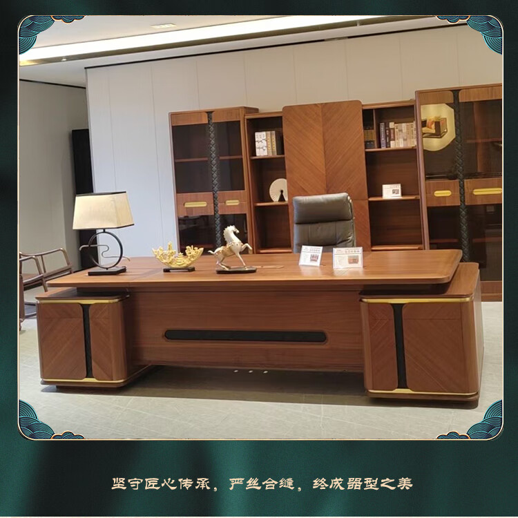 Solid wood new Chinese style boss table walnut president table solid wood executive desk manager desk office desk and chair combination 2.4m boss table