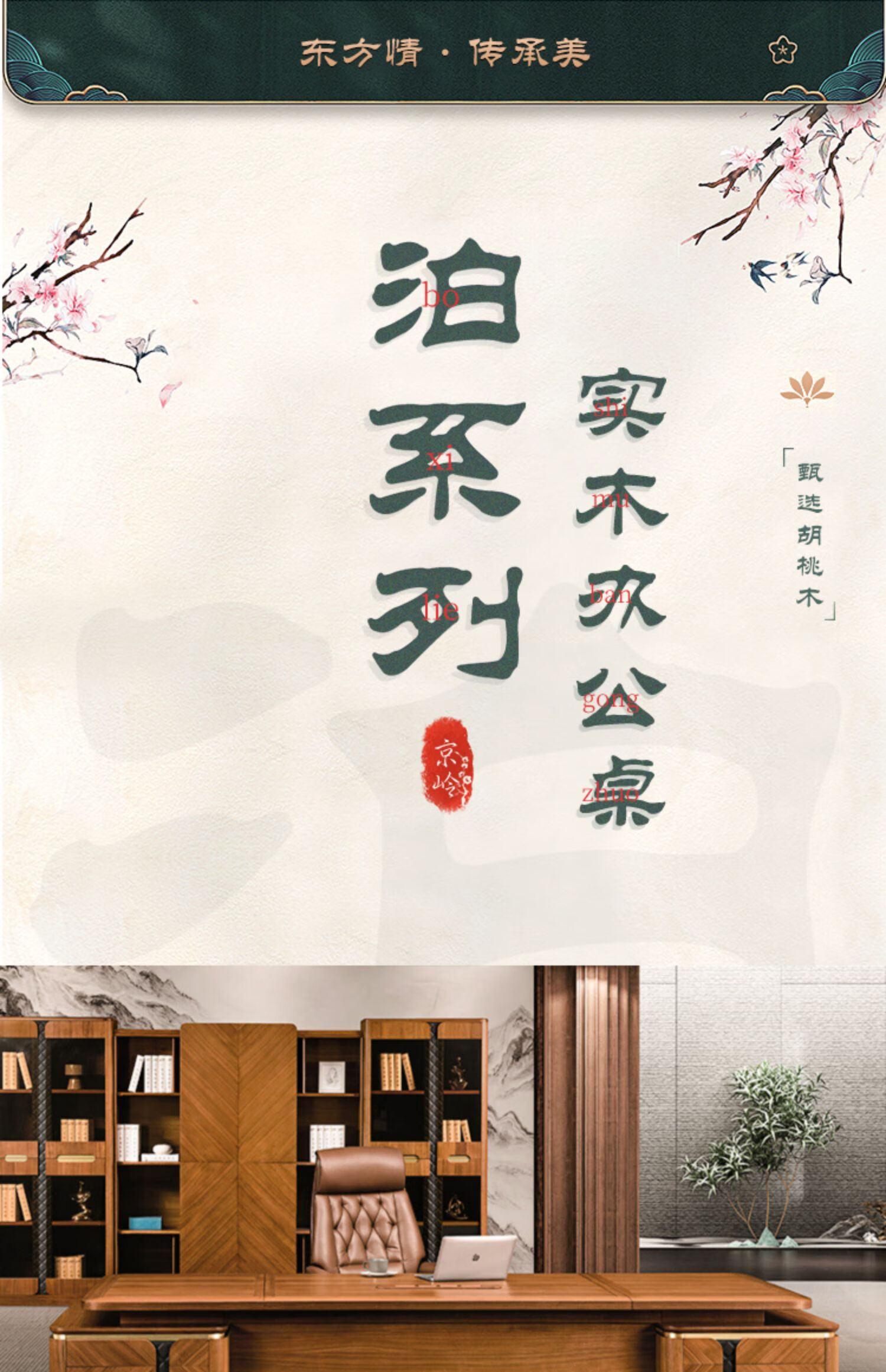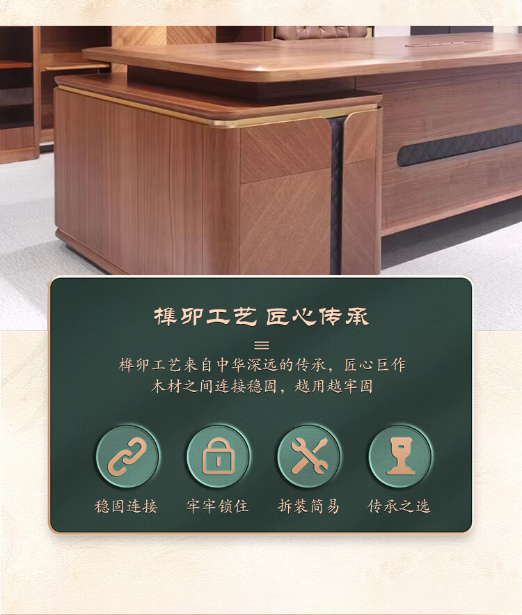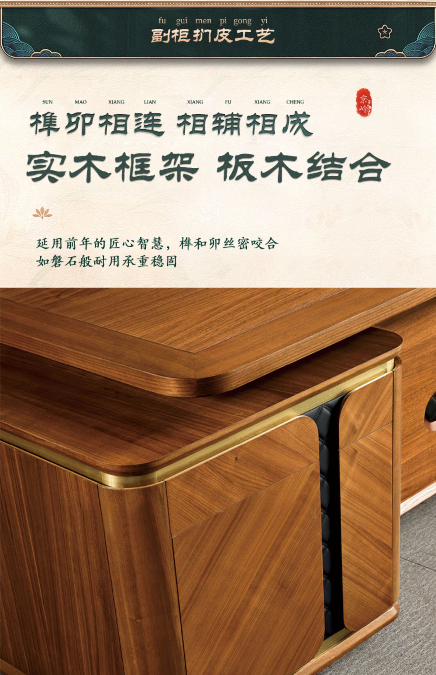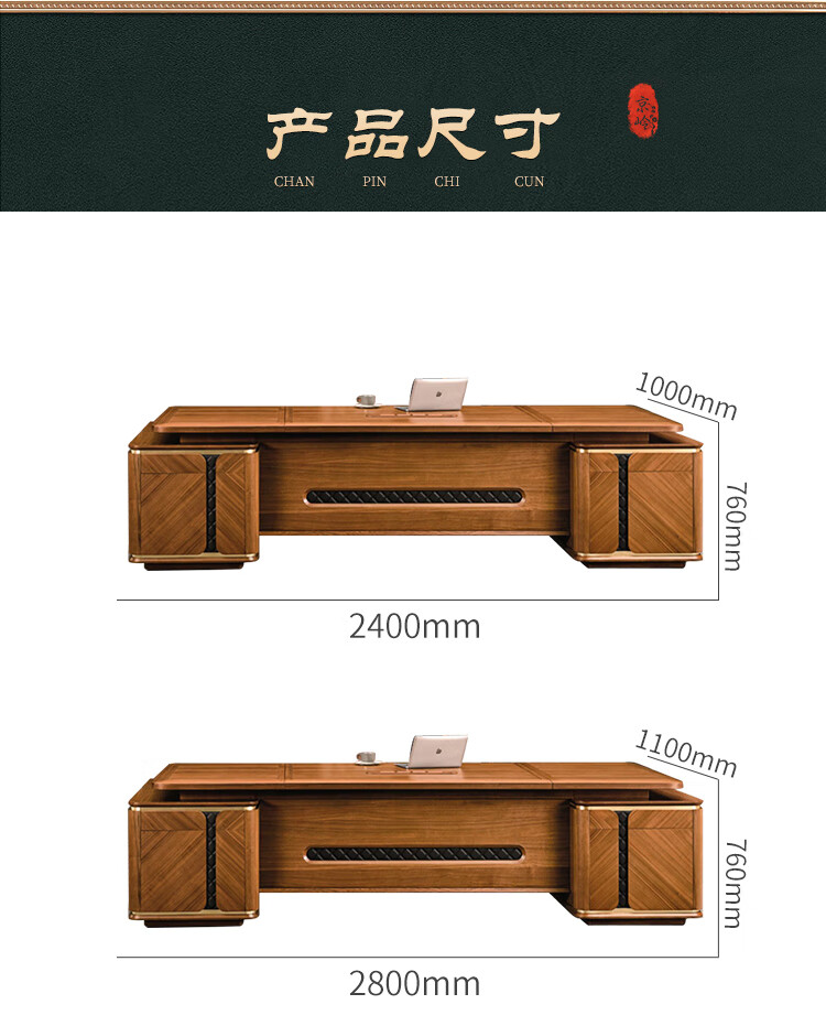 Solid wood new Chinese style boss table walnut president table solid wood executive desk manager desk office desk and chair combination 2.4m boss table