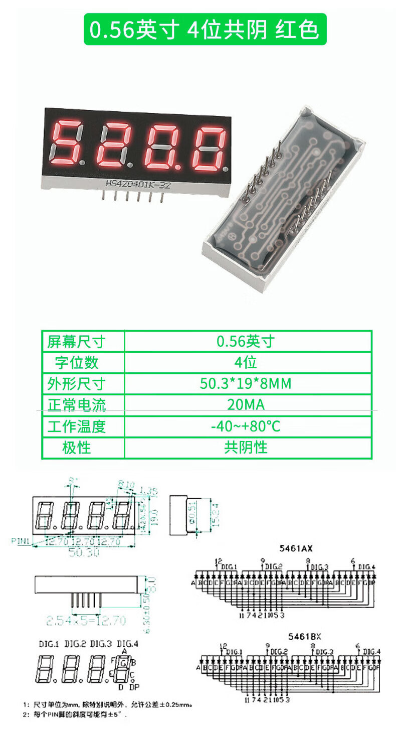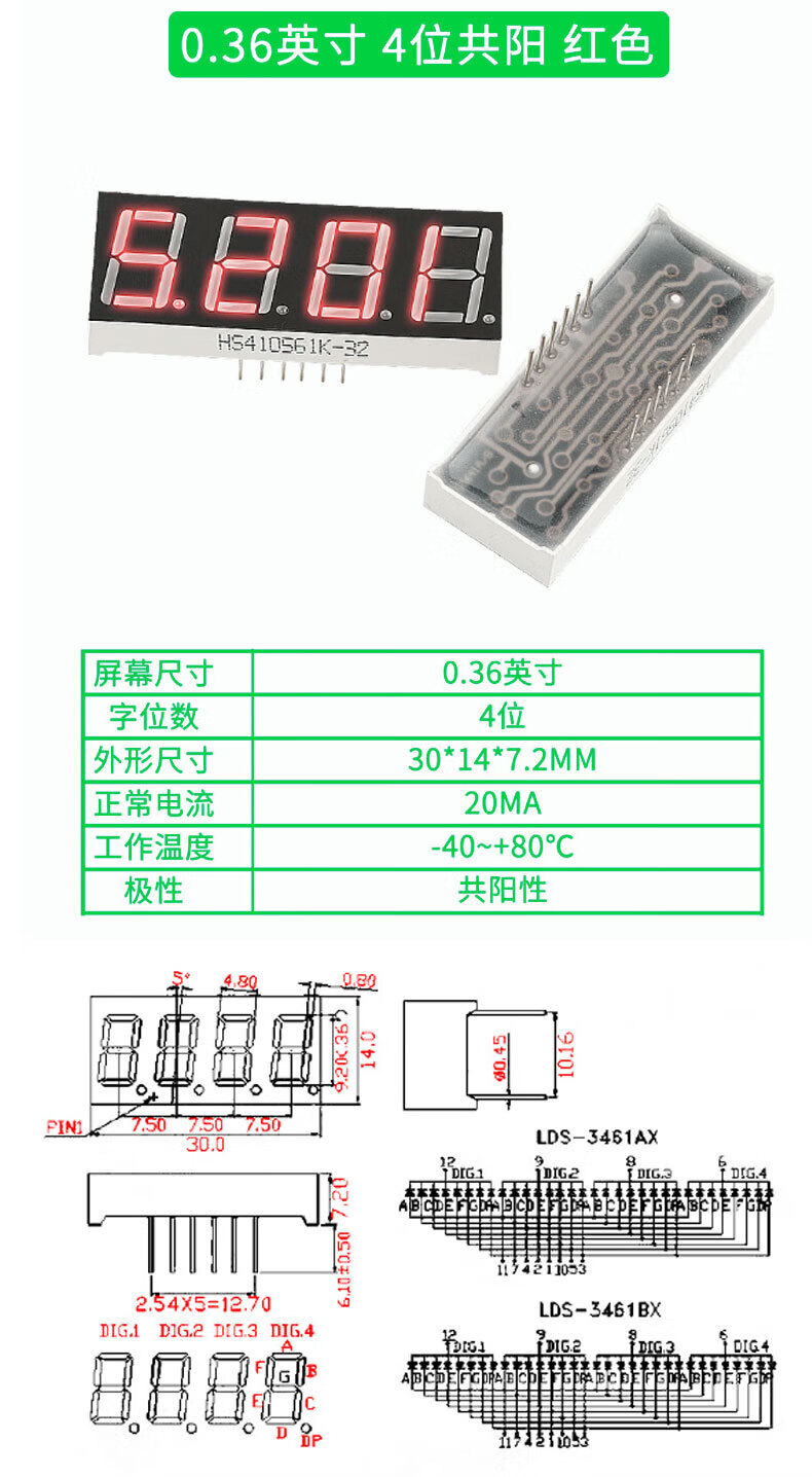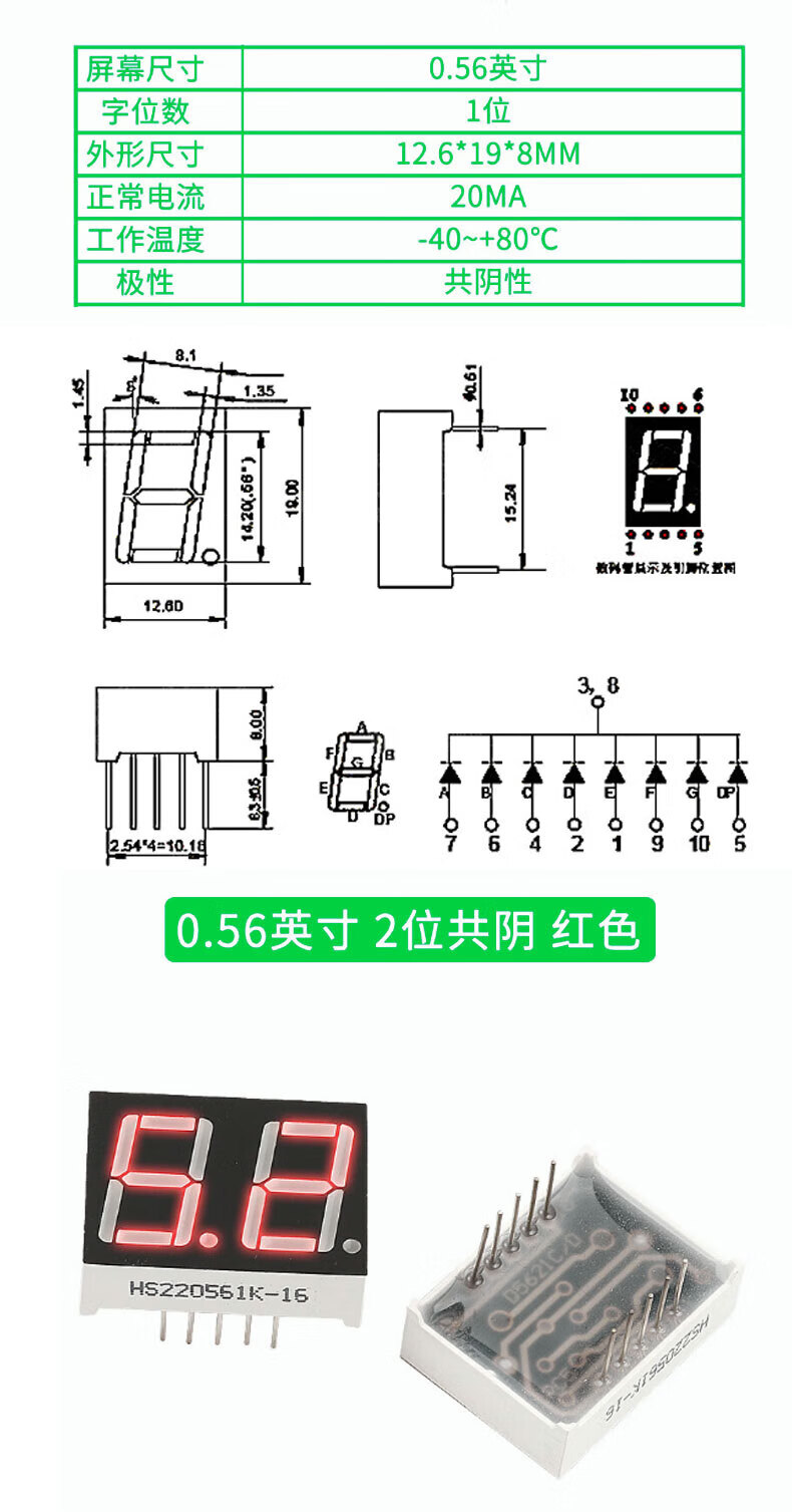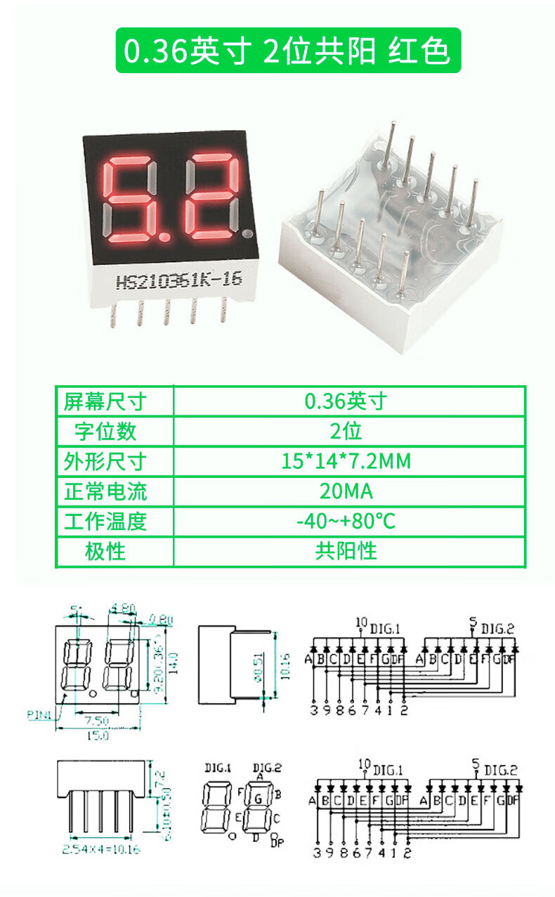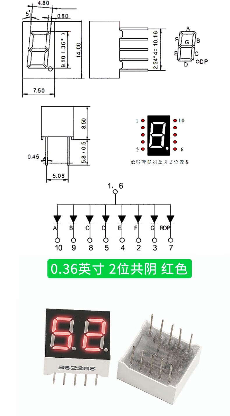 TaoTimeClub digital tube 0.36 inches 0.56 inches 1/2/3/4 digits common cathode/common anode red highlight digital display tube 2 digits common anode 0.36 inches (2 pcs)