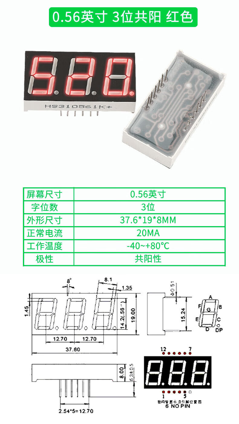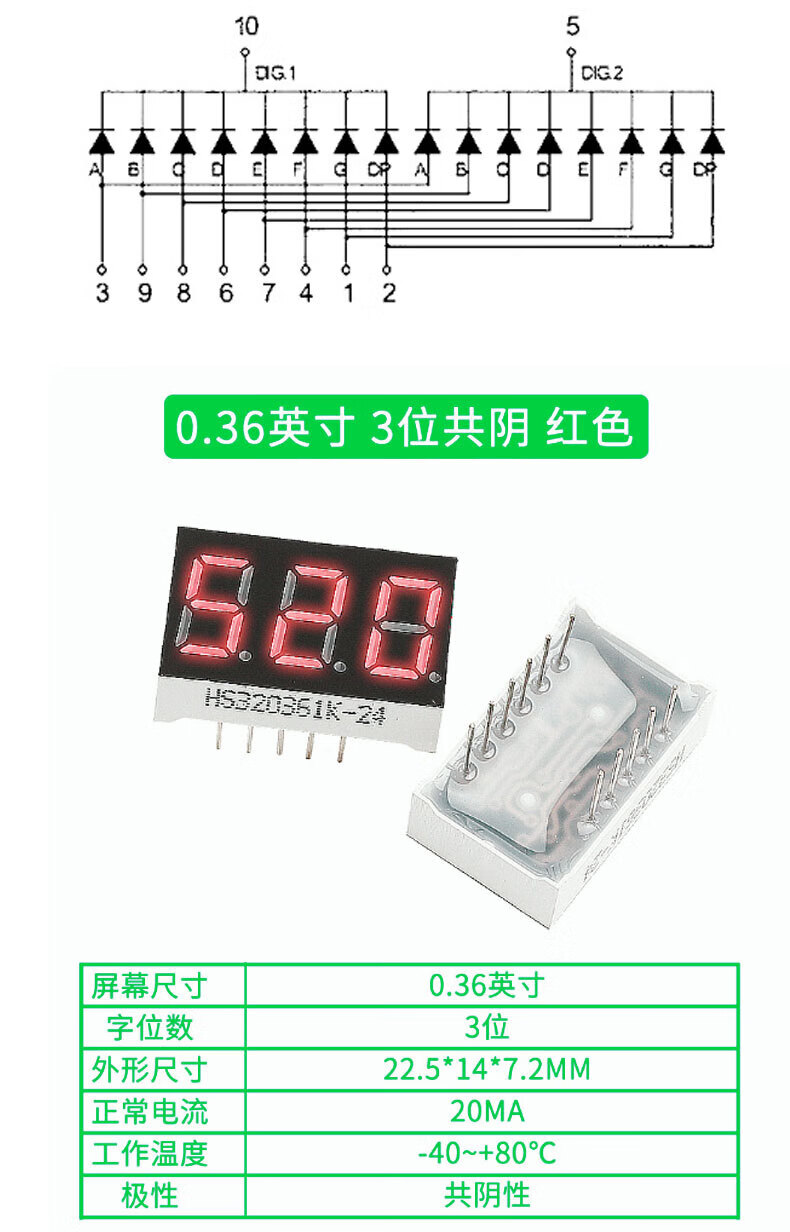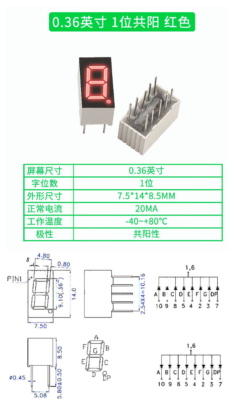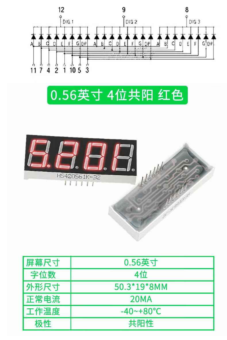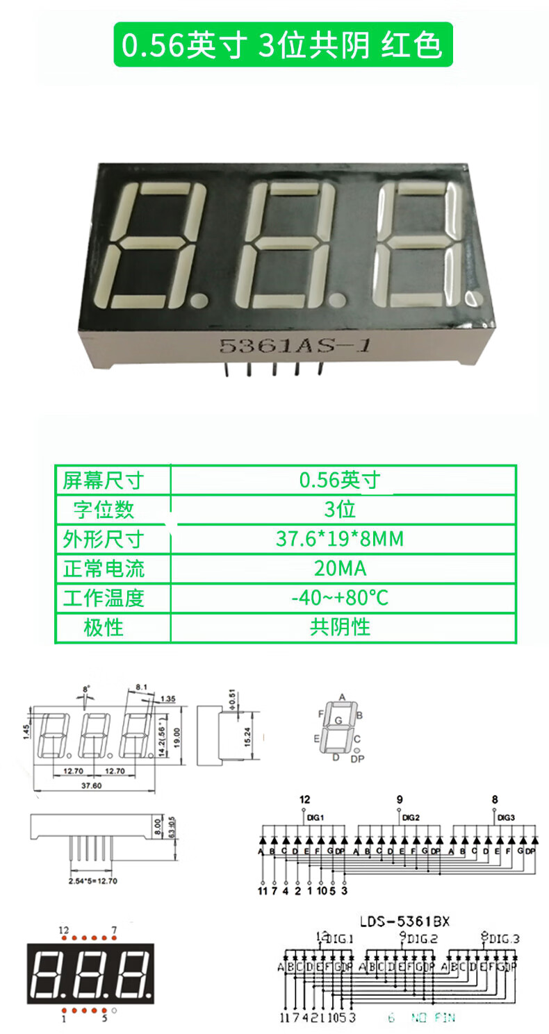 TaoTimeClub digital tube 0.36 inches 0.56 inches 1/2/3/4 digits common cathode/common anode red highlight digital display tube 2 digits common anode 0.36 inches (2 pcs)