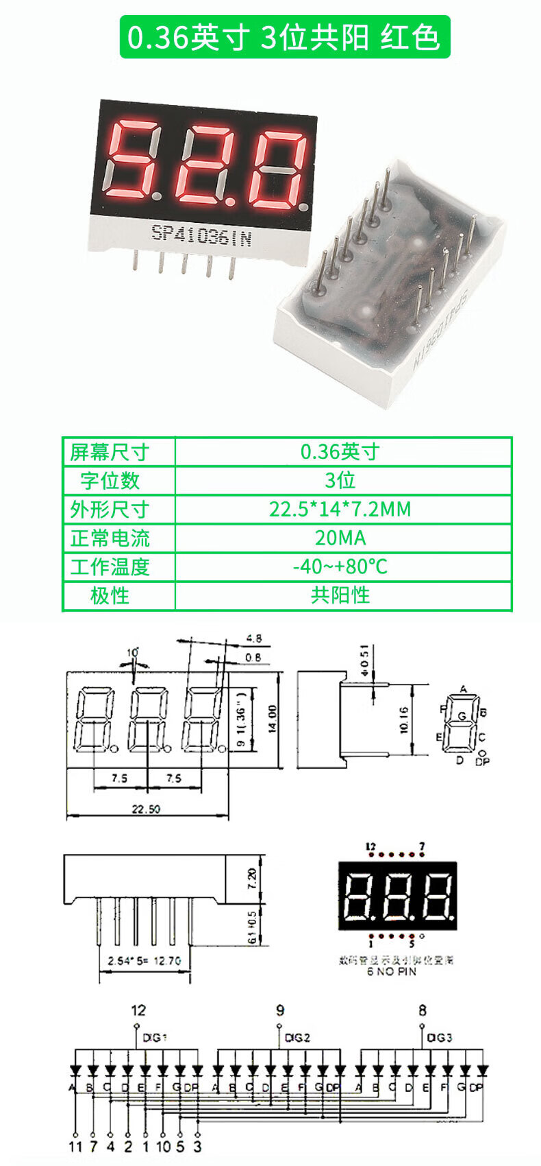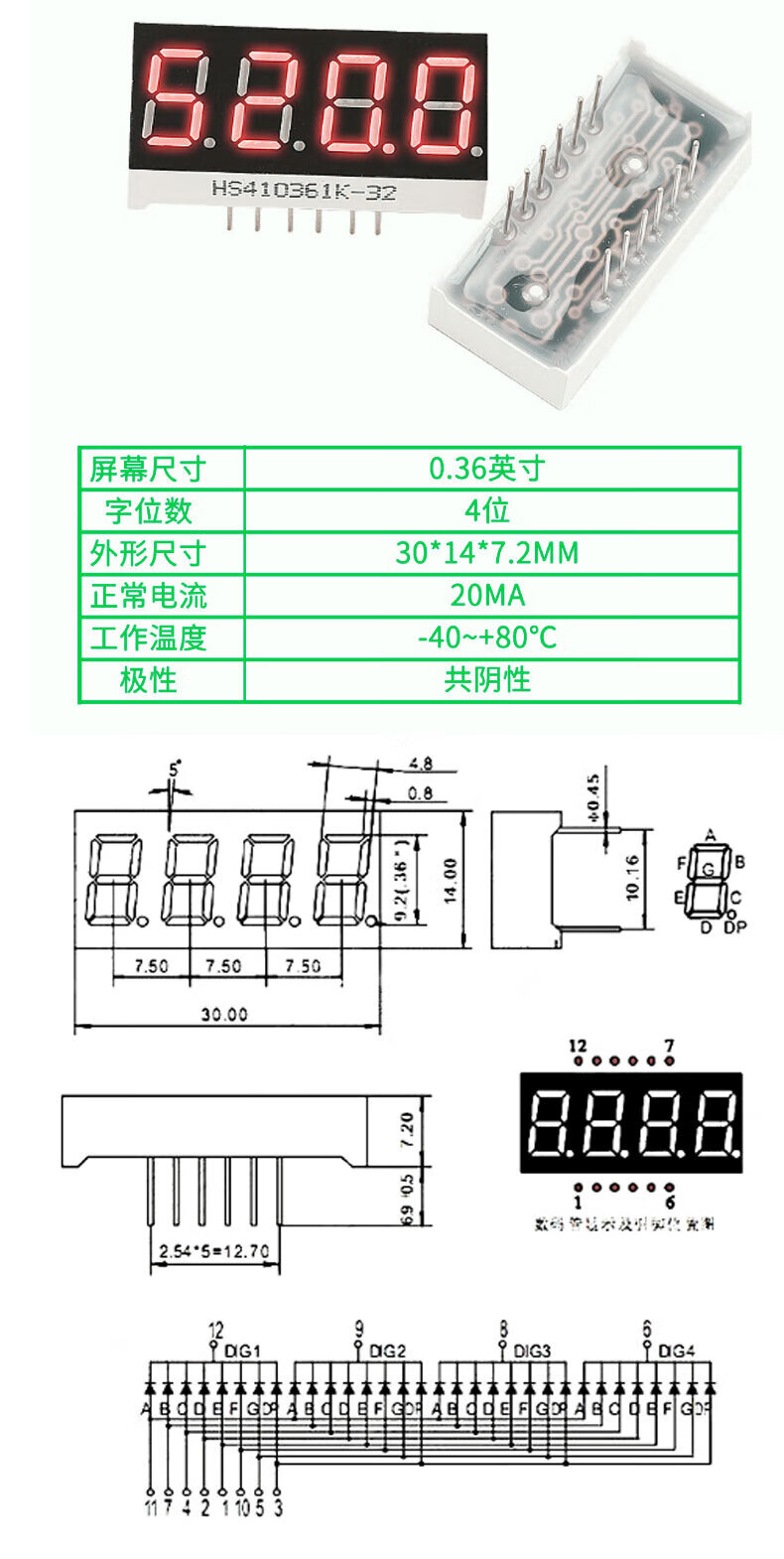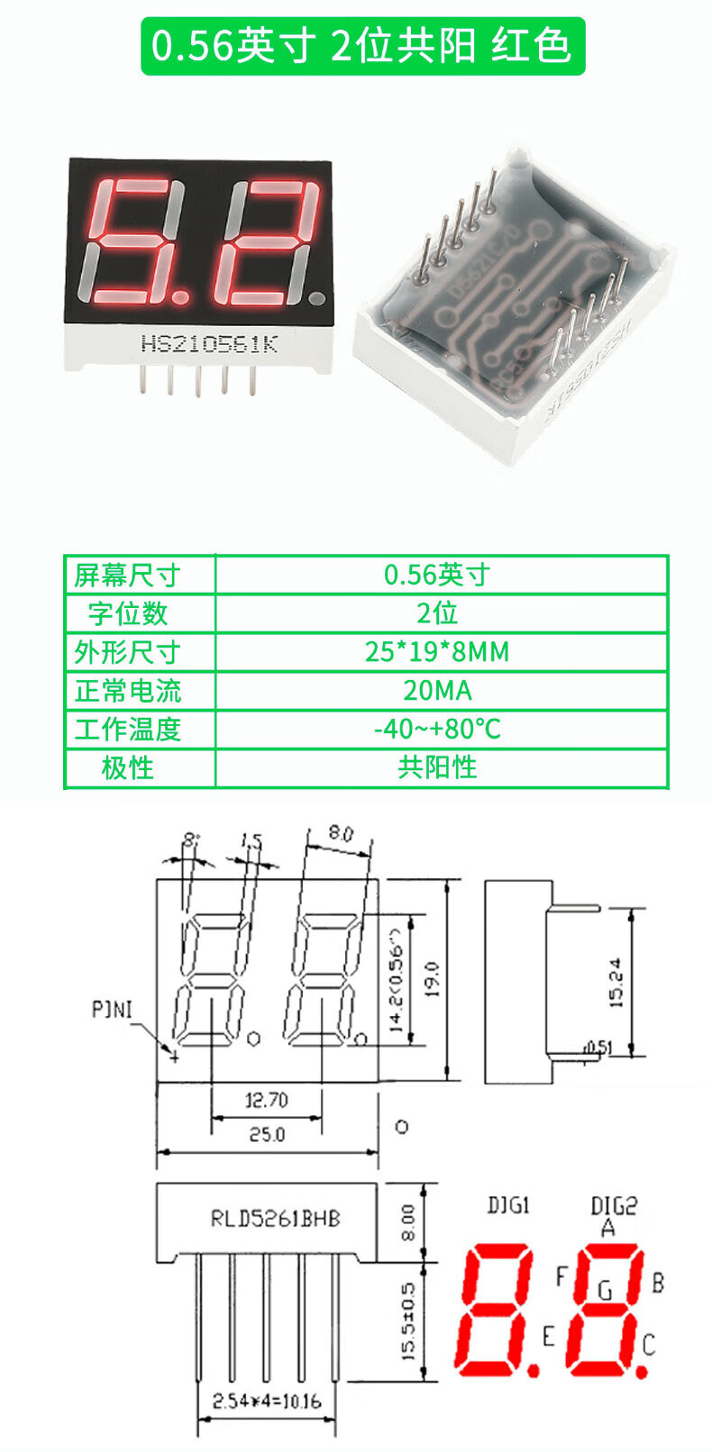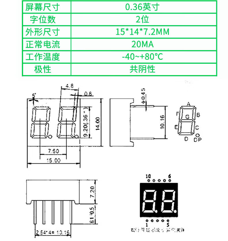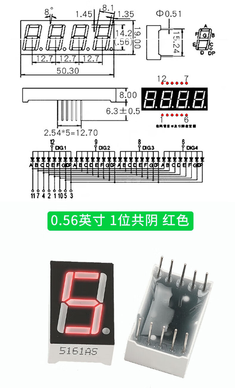 TaoTimeClub digital tube 0.36 inches 0.56 inches 1/2/3/4 digits common cathode/common anode red highlight digital display tube 2 digits common anode 0.36 inches (2 pcs)
