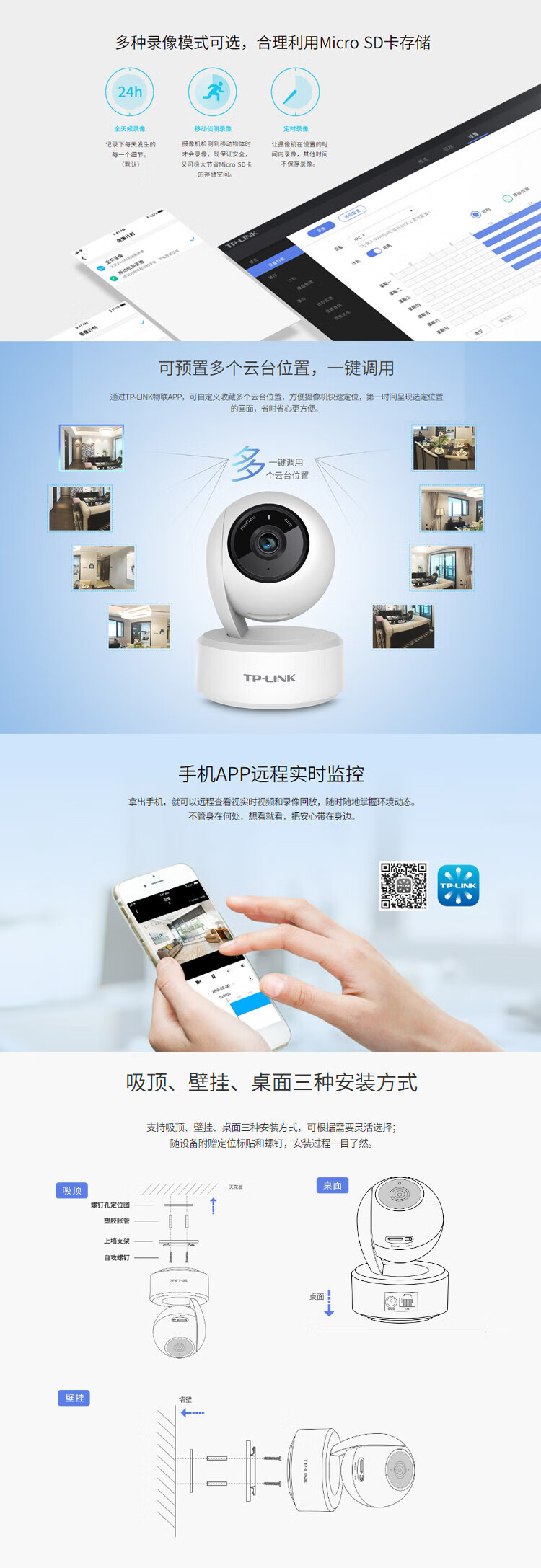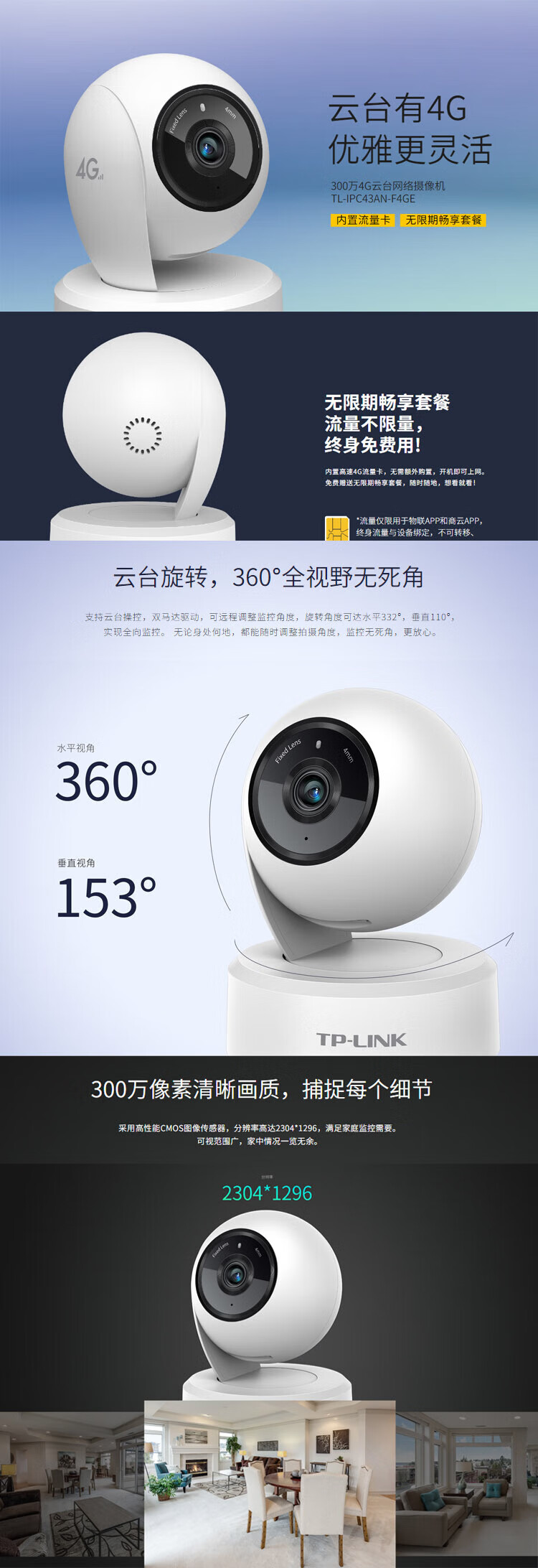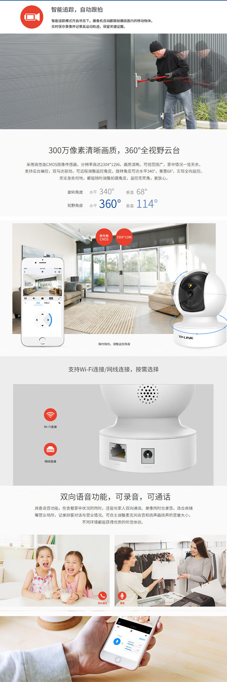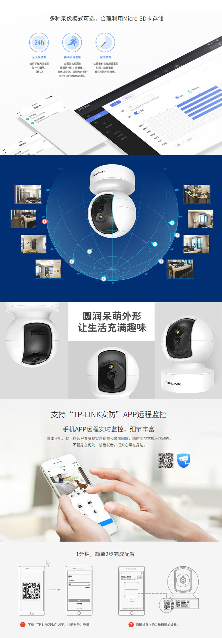 Pulian Pulian full-color wireless home camera 360 No blind spots remote baby elderly pet monitoring WiFi connection TL-IPC44CL-v2 full color 4 million wireless + wired standard (no memory card)