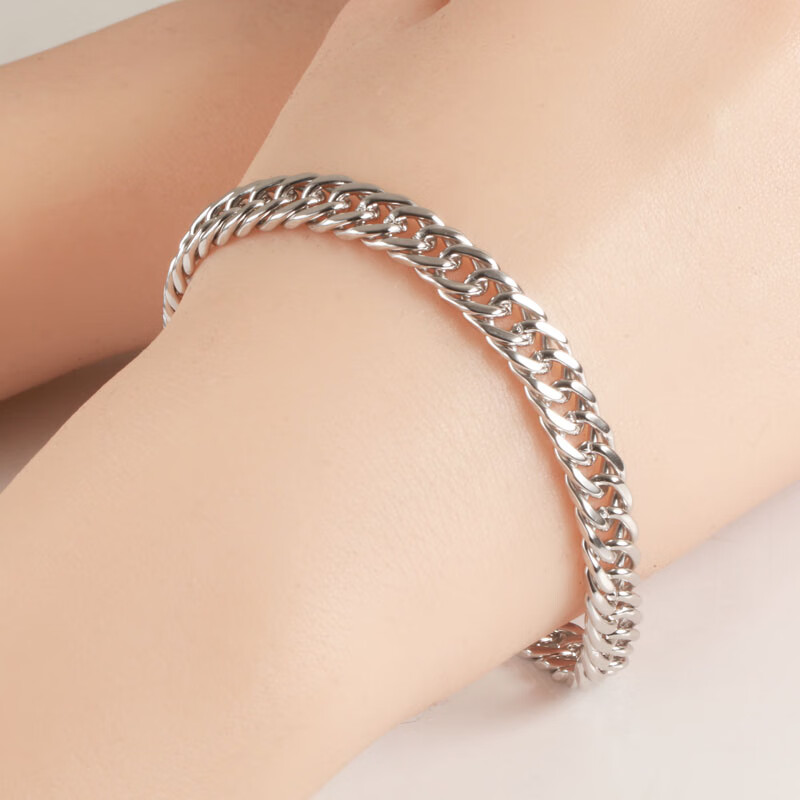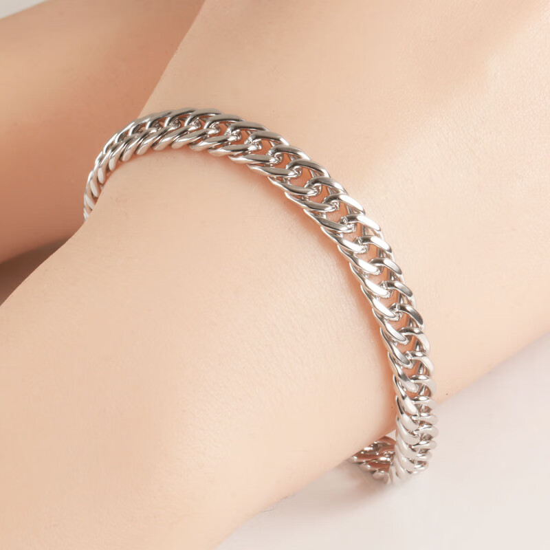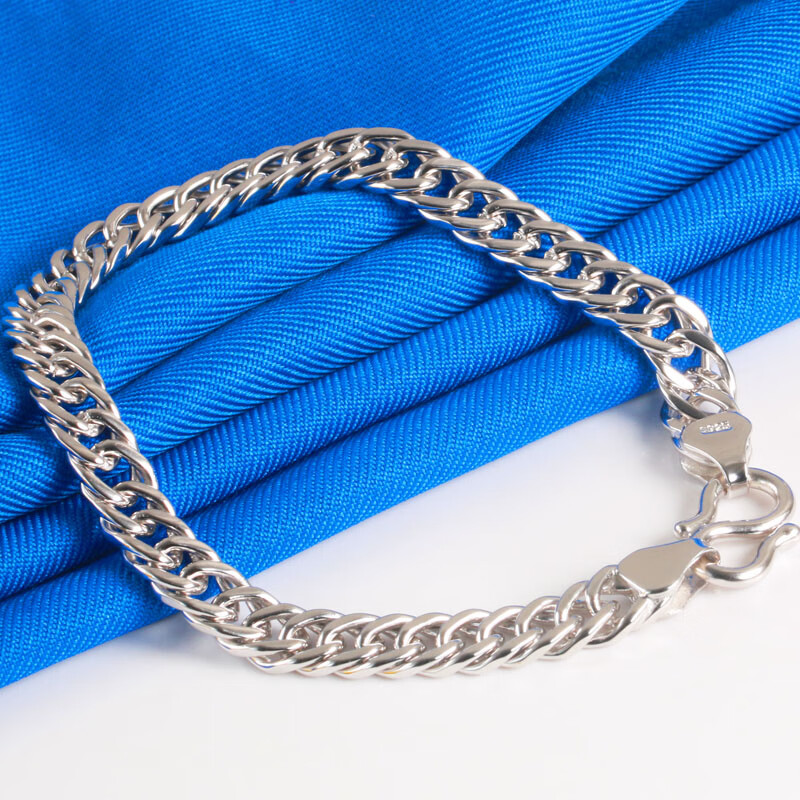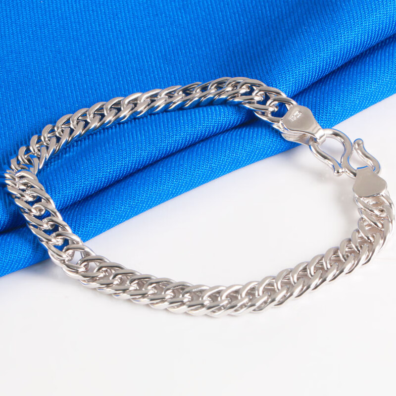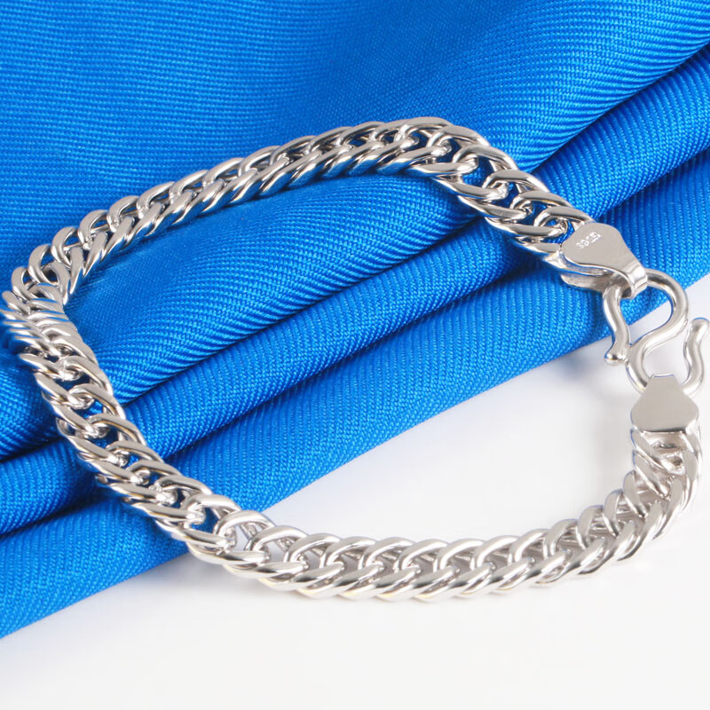 CAOXS925 silver bracelet for men and women platinum bracelet boss chain riding whip chain platinum wheel chain gift husband silver jewelry about 7 mm wide