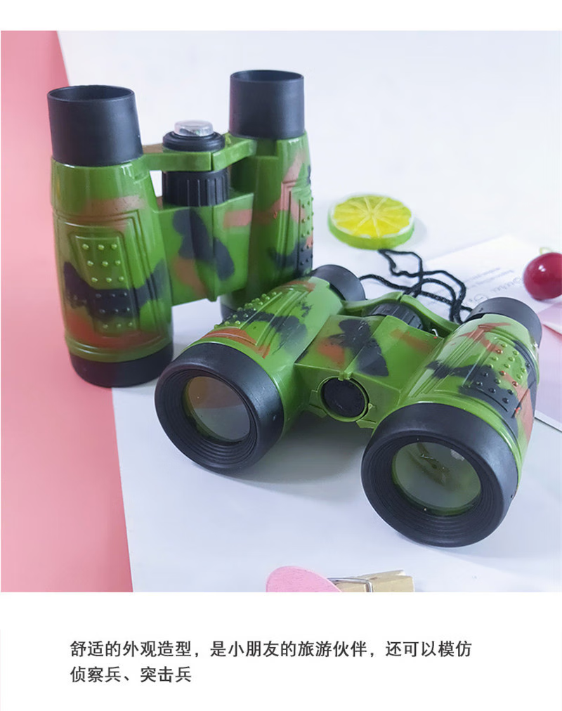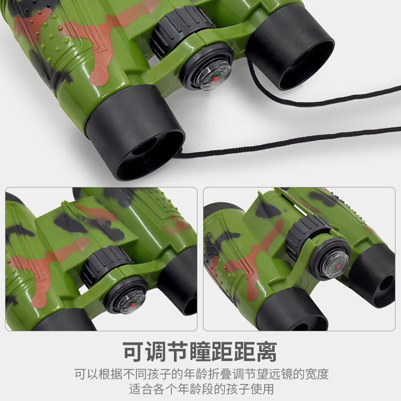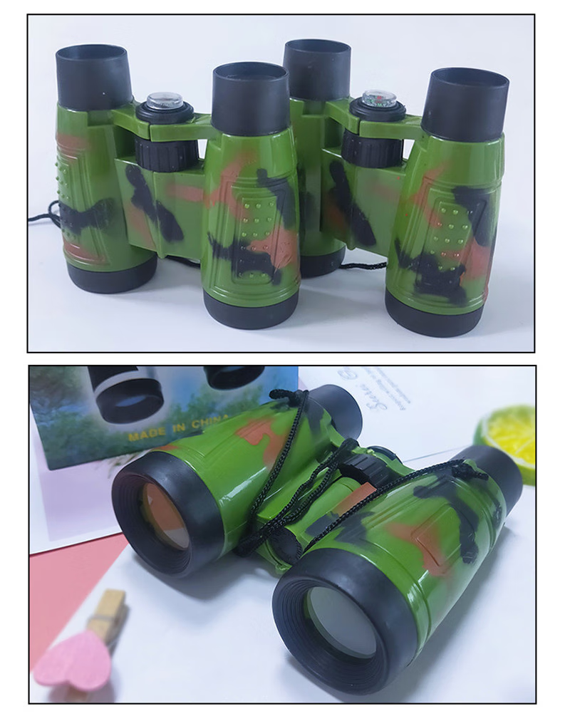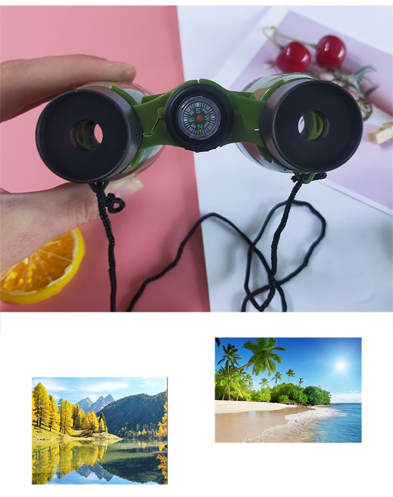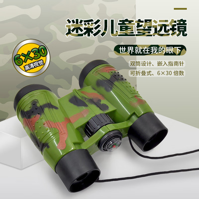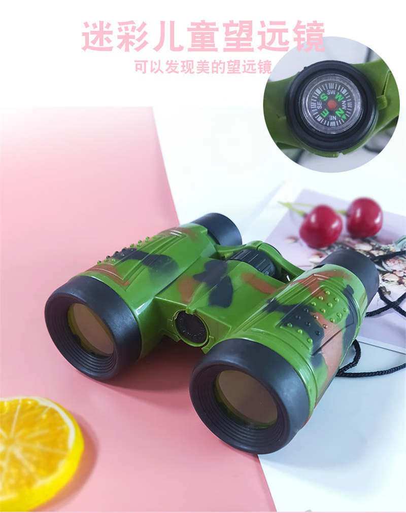 Binocular camouflage telescope, eye protection, high magnification, ultra-clear, portable with lanyard, children's telescope toy, military green exploration telescope + (with compass) 2 pcs