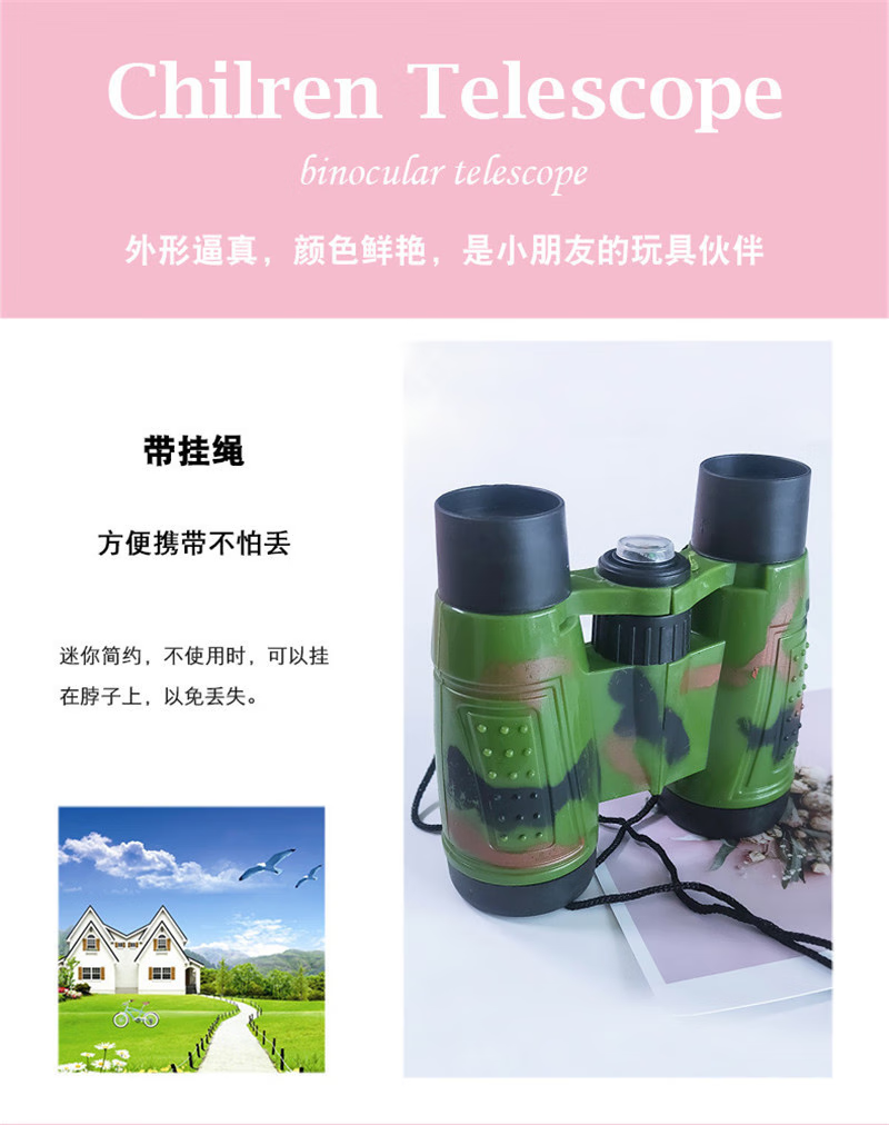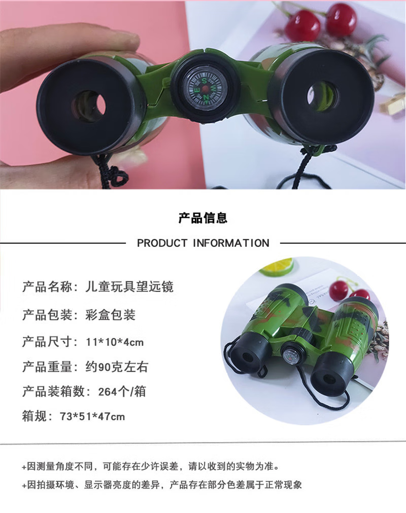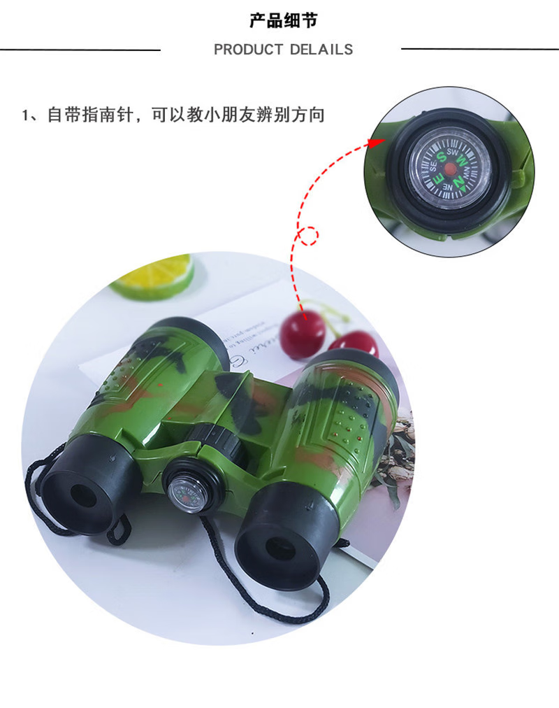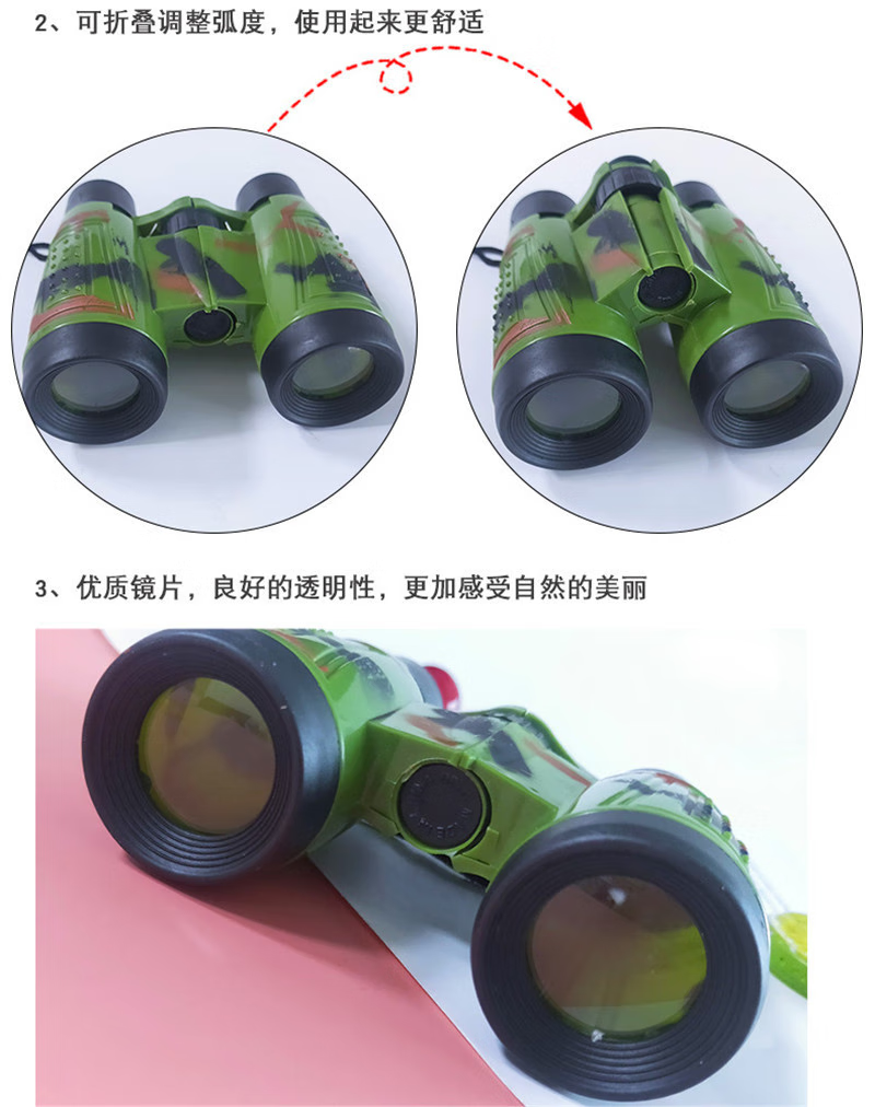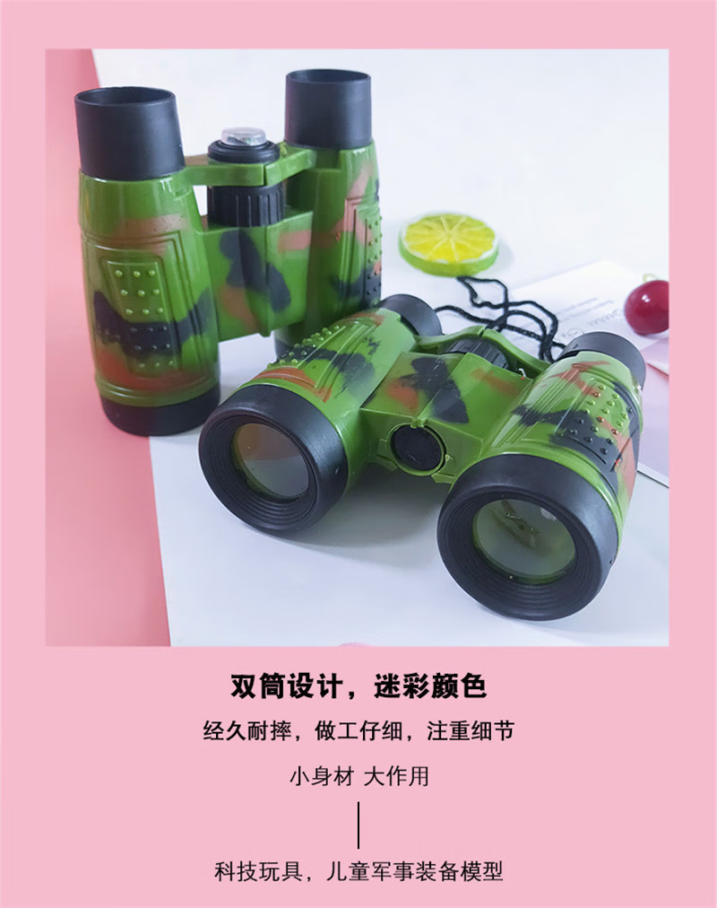 Binocular camouflage telescope, eye protection, high magnification, ultra-clear, portable with lanyard, children's telescope toy, military green exploration telescope + (with compass) 2 pcs
