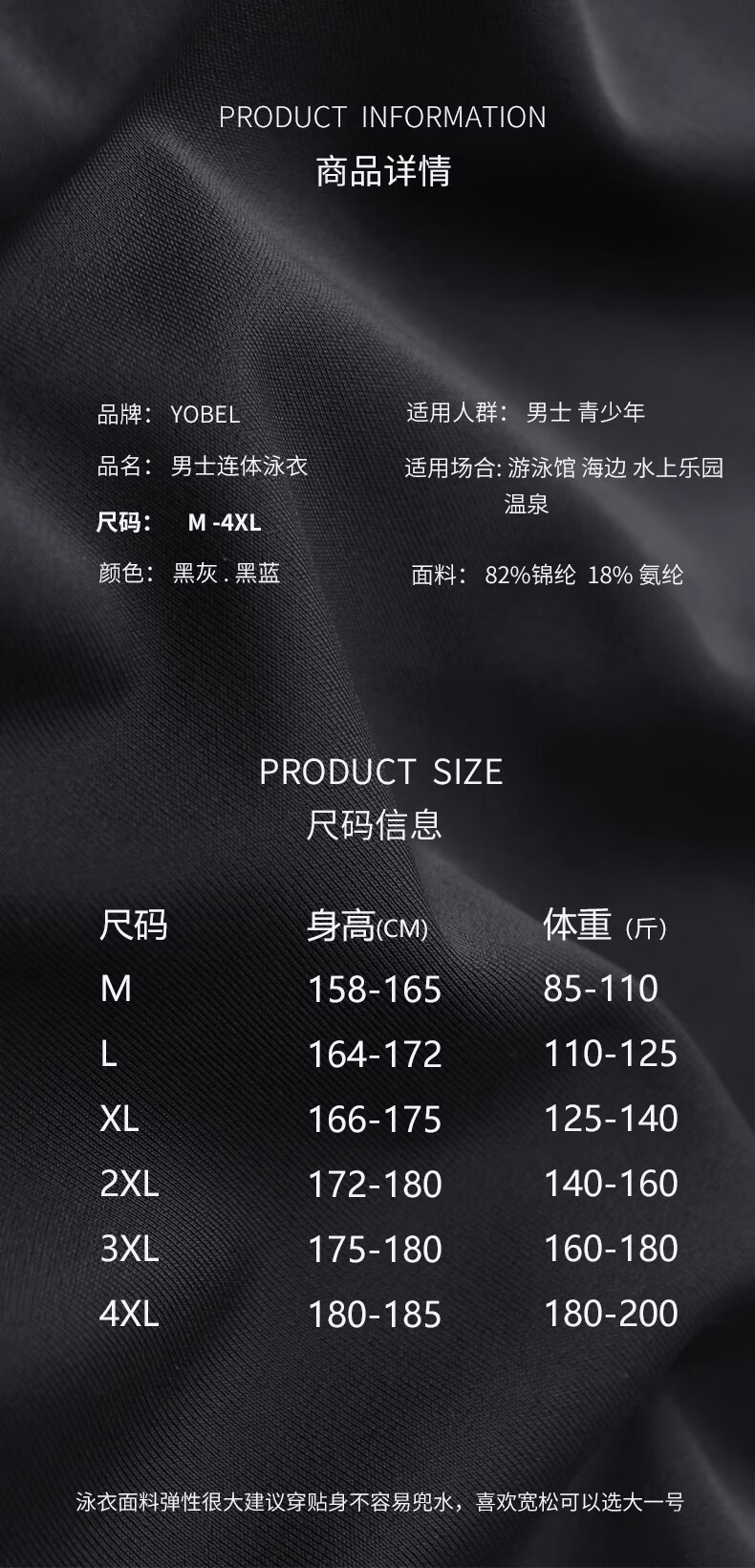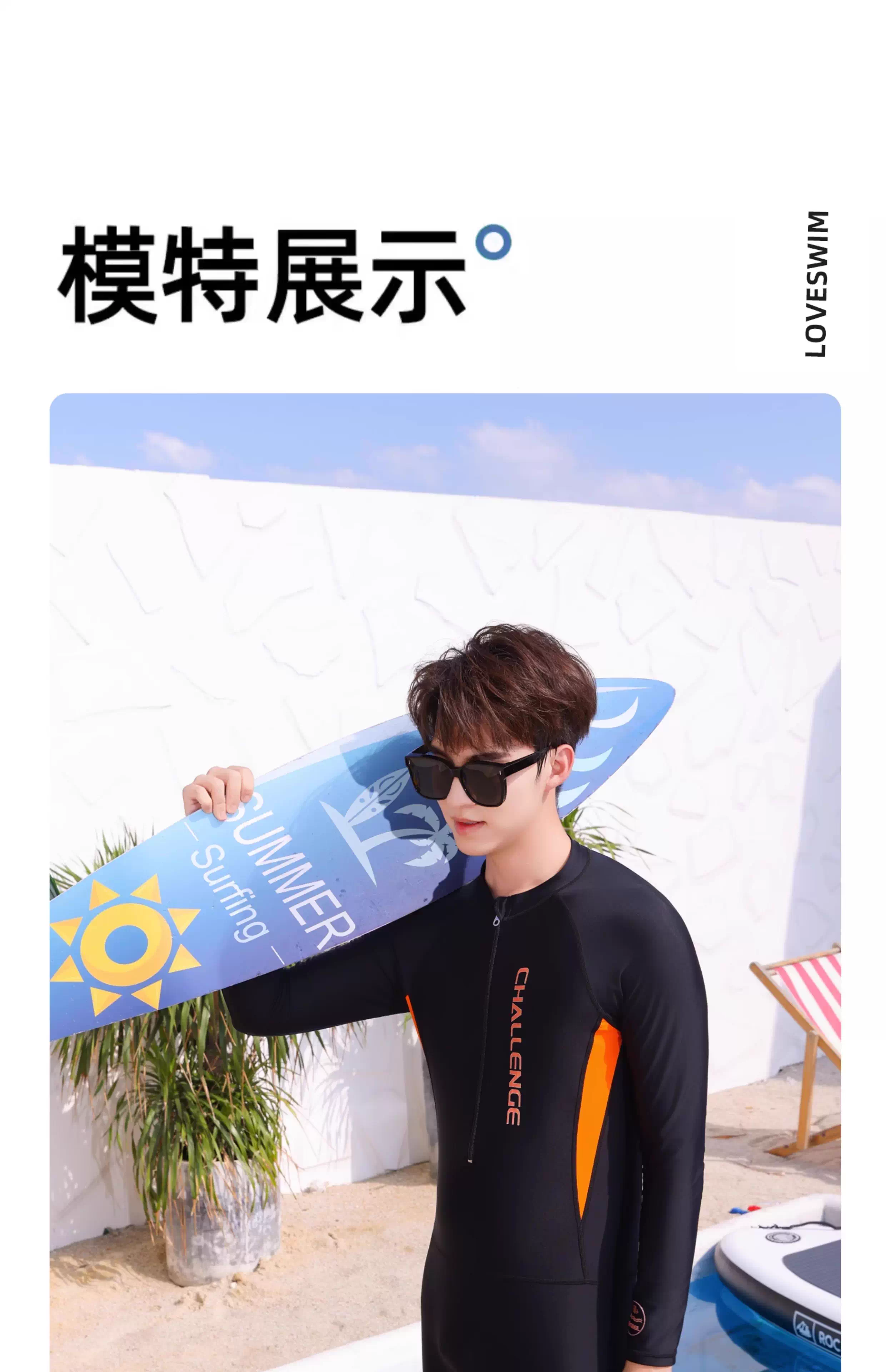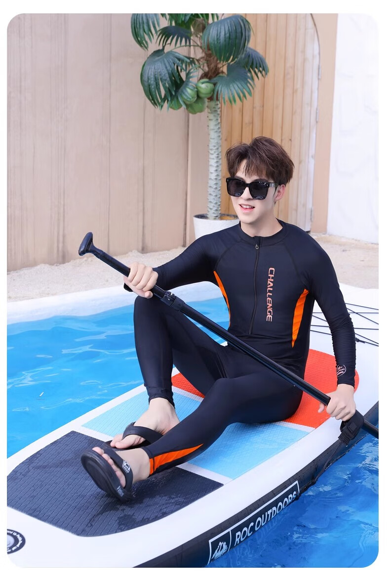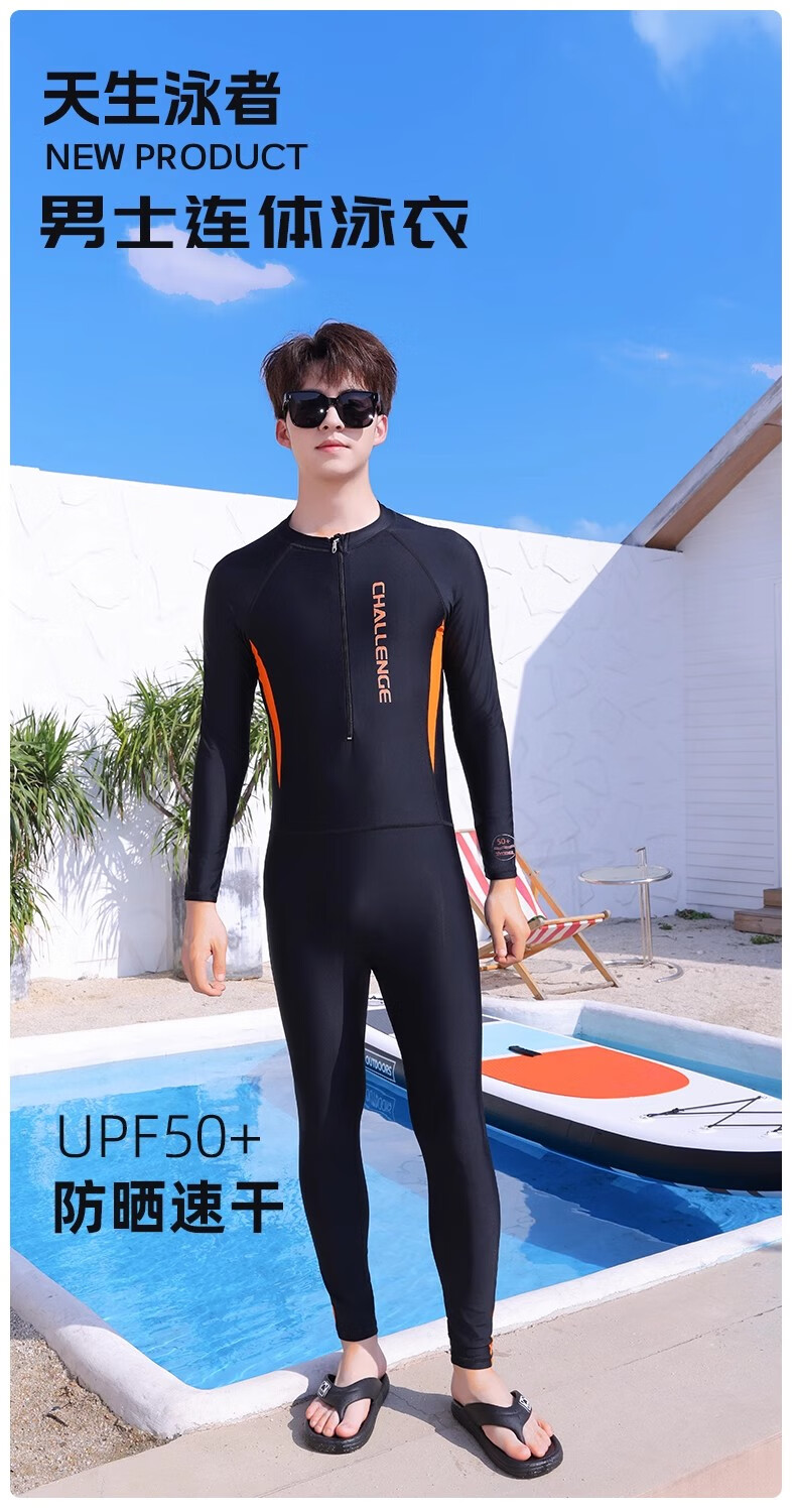 Yobel men's one-piece long-sleeved sunscreen quick-drying swimsuit adult long-sleeved trousers wetsuit youth jellyfish suit surfing suit black blue + swimming cap 3XL recommended 150-170Jin Jin equals 0.5 kg