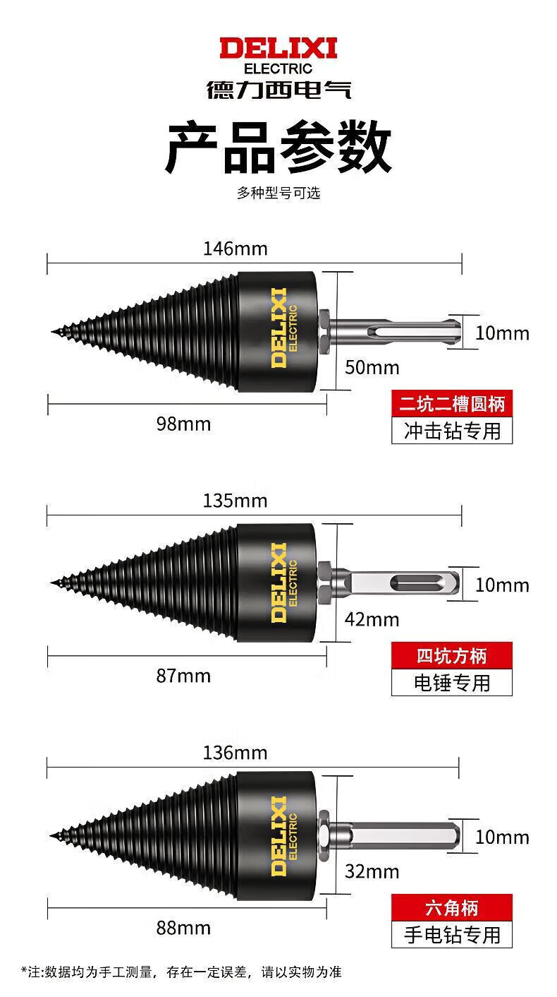Delixi Electric firewood splitting artifact household splitting machine drill bit electric electric hammer super hard wood splitting cone sharp quenching flagship set 50mm + three kinds of posts