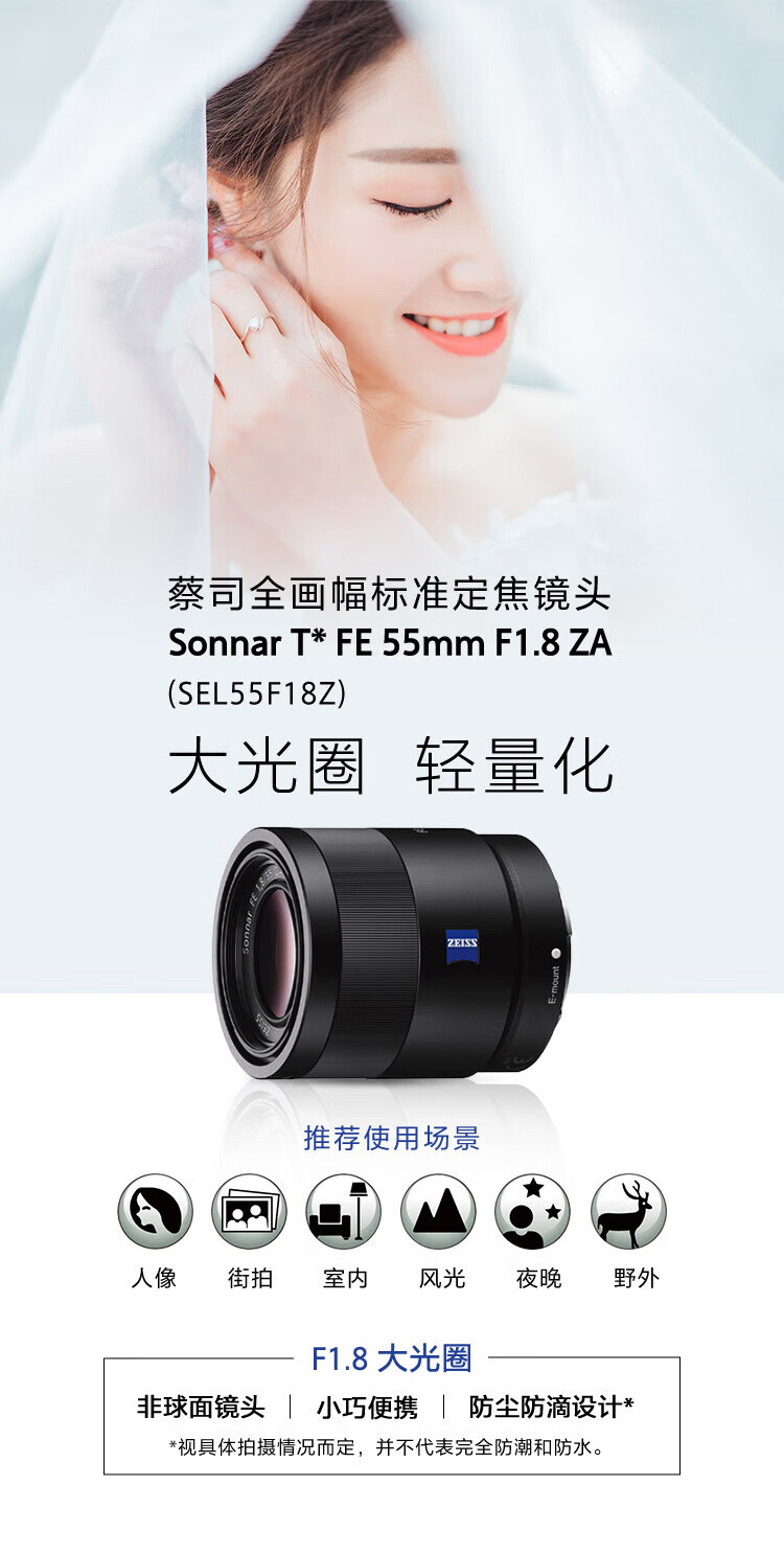 Sony (SONY) FE 55mm F1.8 ZA full-frame Zeiss mirrorless camera lens portrait street photography scenery FE 55mm F1.8 ZA official standard
