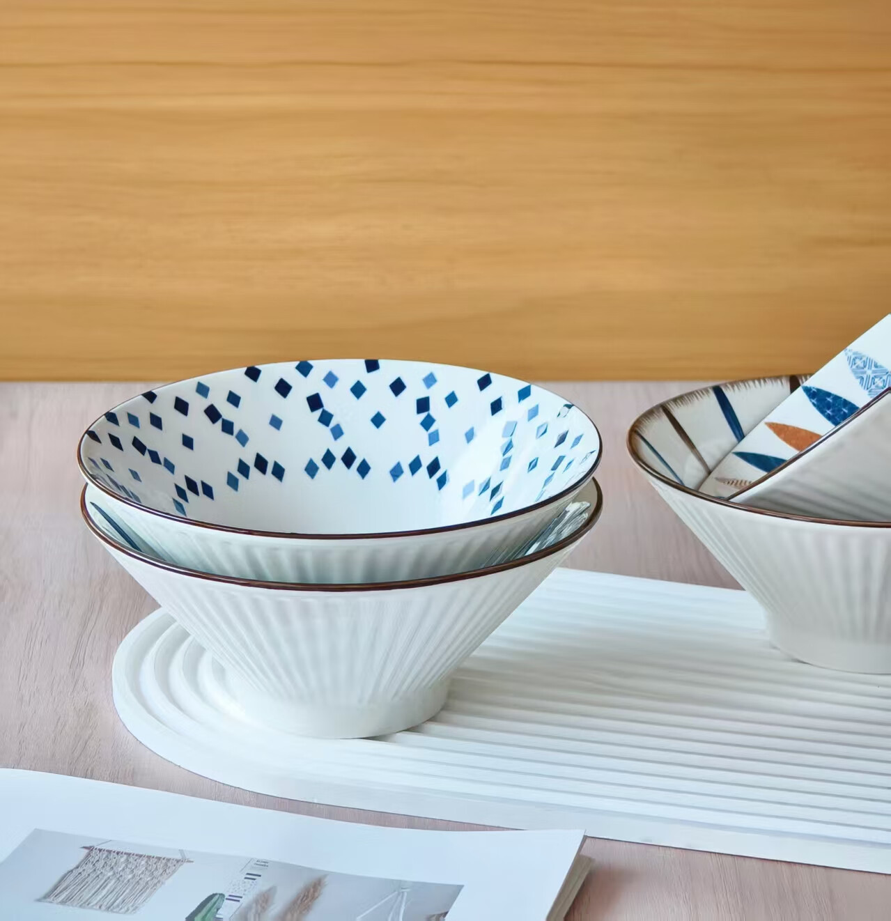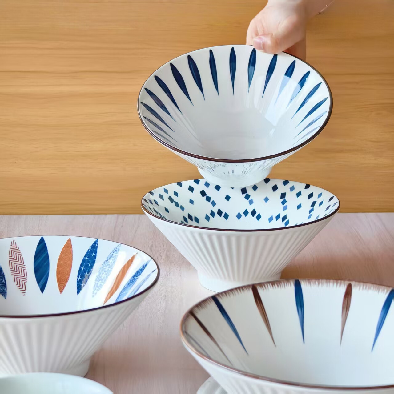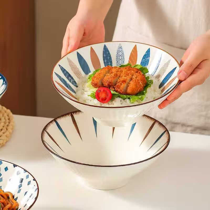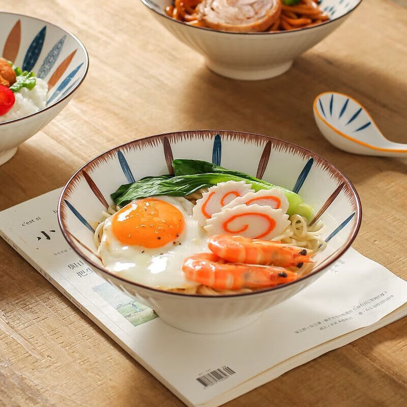 北欧风7英寸拉面斗笠陶瓷泡面面碗餐具家用日式汤碗高脚下彩工艺 日式7英寸斗笠碗花色1个装