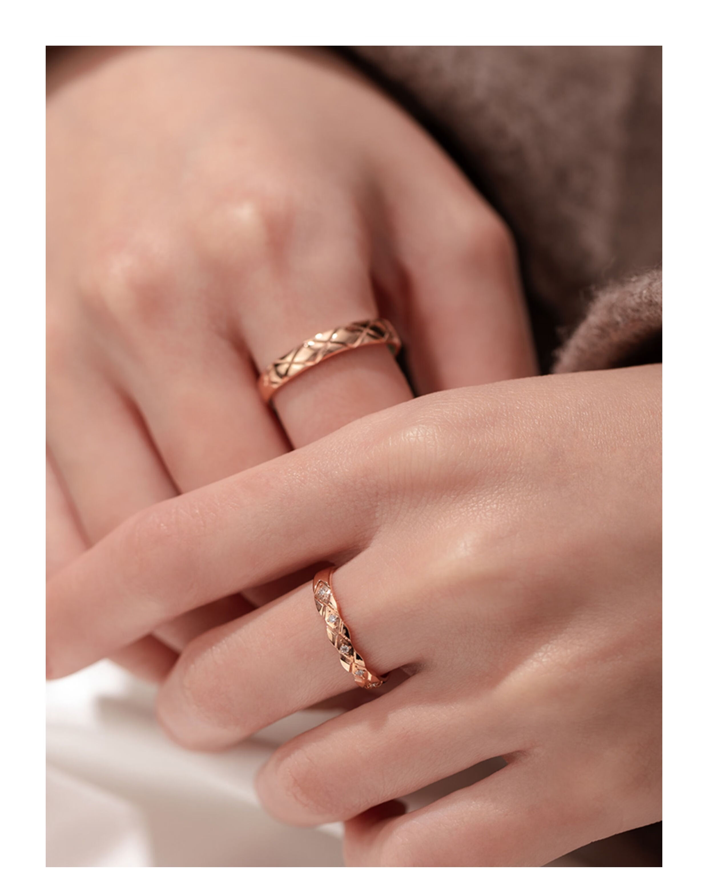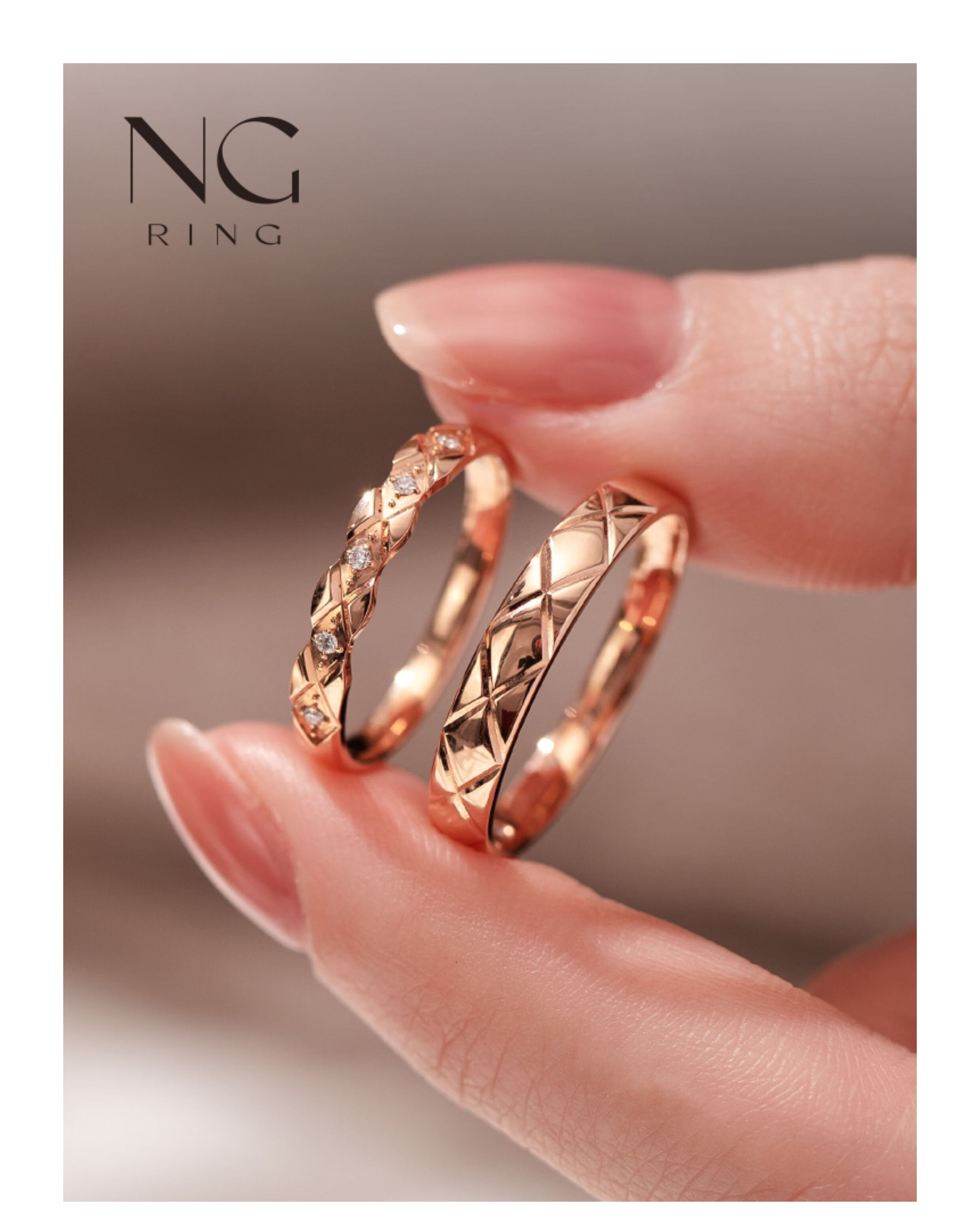 Only pair of NG Coco 18k gold ring diamond pattern rose gold couple ring proposal wedding diamond ring platinum women's ring 18k rose gold natural diamond about 5 minutes