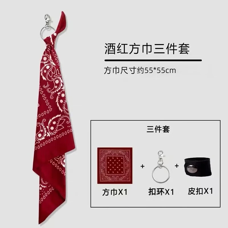 Retro headscarf, trendy brand scarf, hip hop, motorcycle, hiphop, street style, cashew flower square scarf, street dance pants decoration, black patterned square scarf, free square scarf buckle + buckle