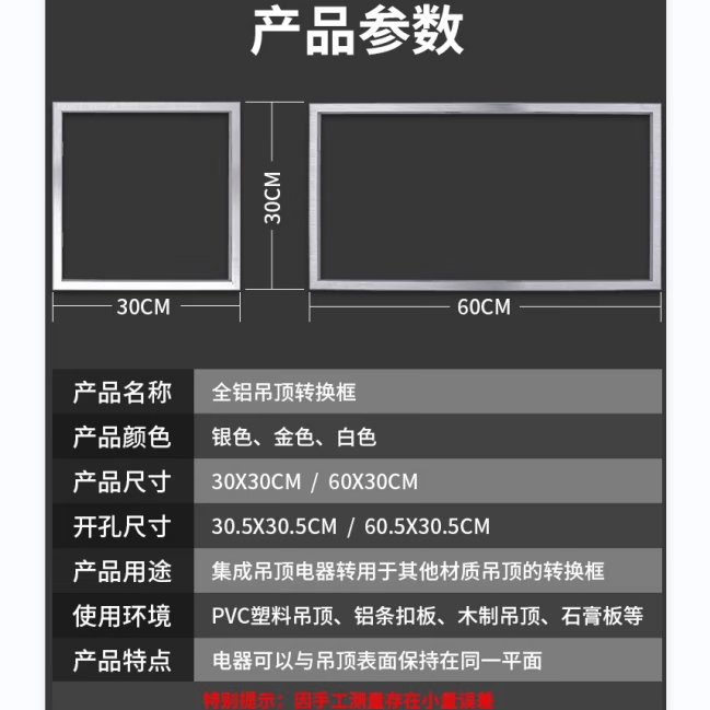 JOMOO accessories bathroom heater LED light conversion frame adapter frame concealed 30 30 300 600 concealed 30*60 white thickened universal snap-on type