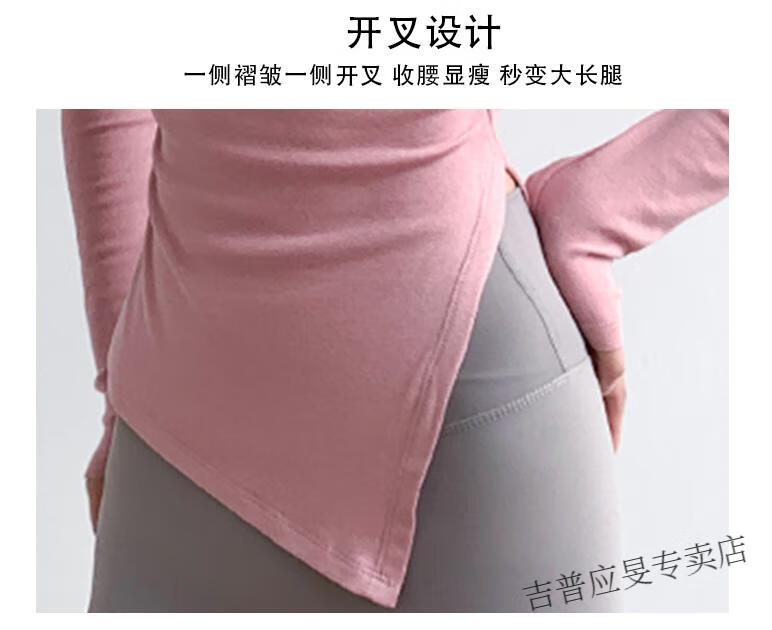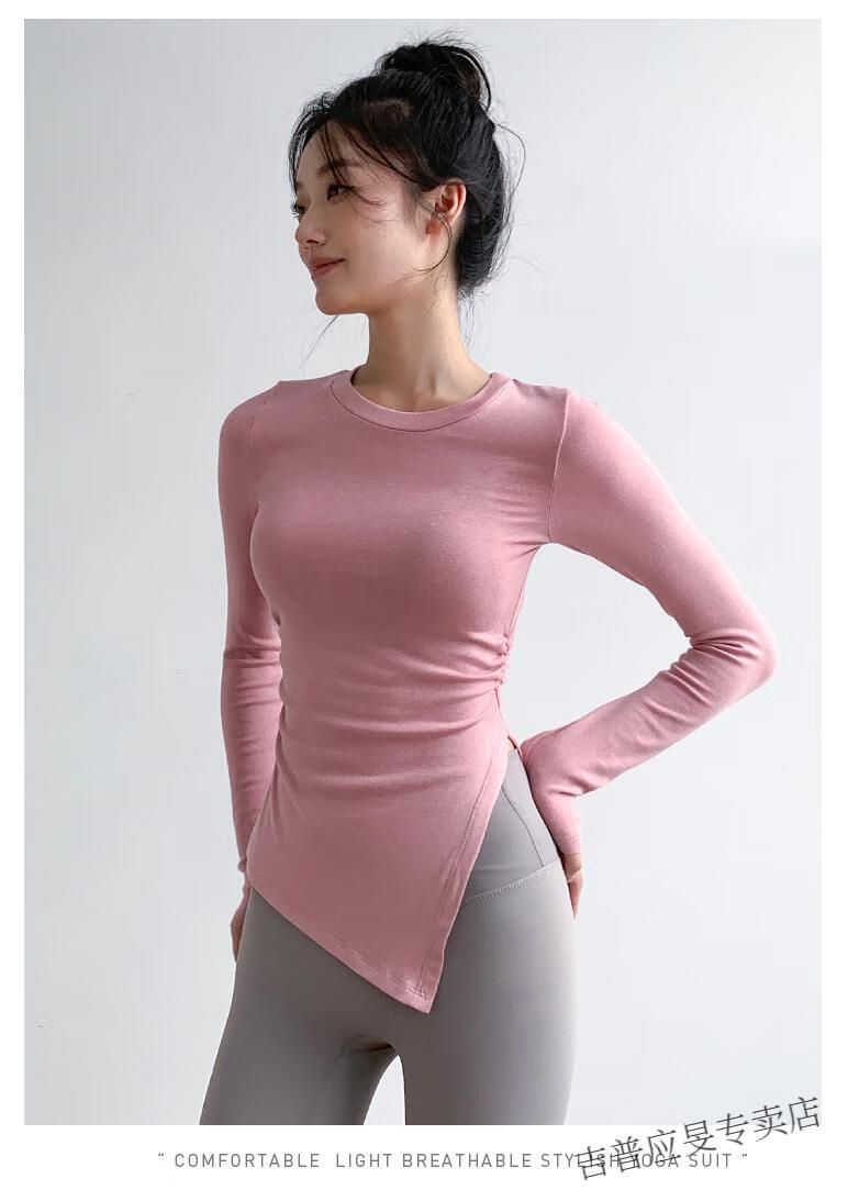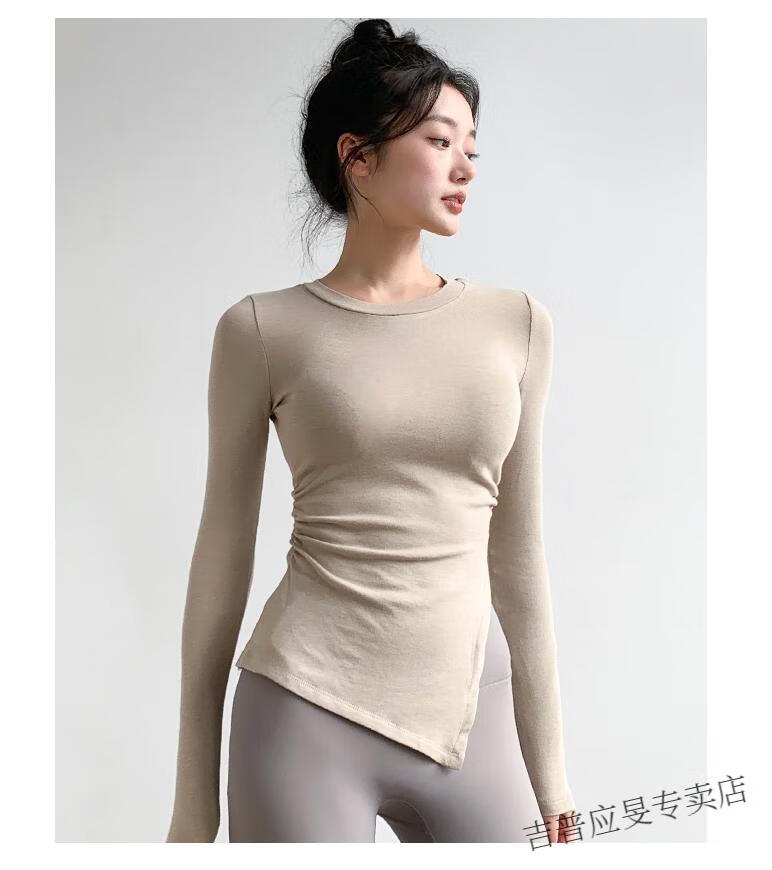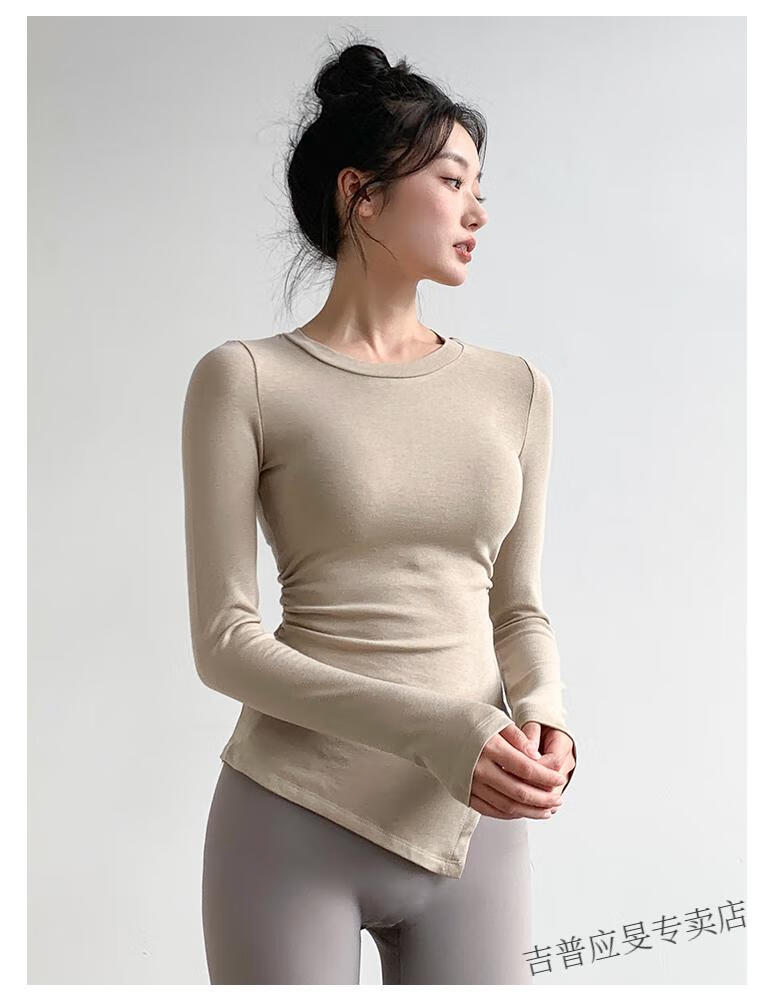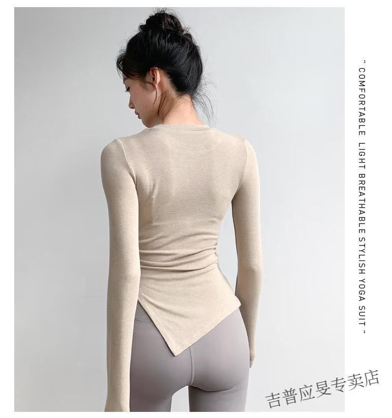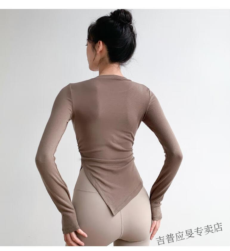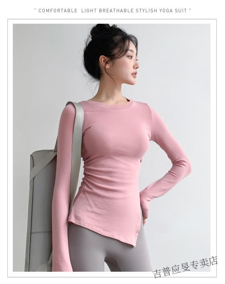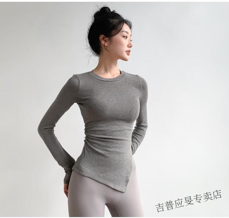 JEEP SPIRIT yoga wear women's long-sleeved tight-fitting slim sports top T-shirt running quick-drying Pilates training fitness wear set black top + light gray pants L