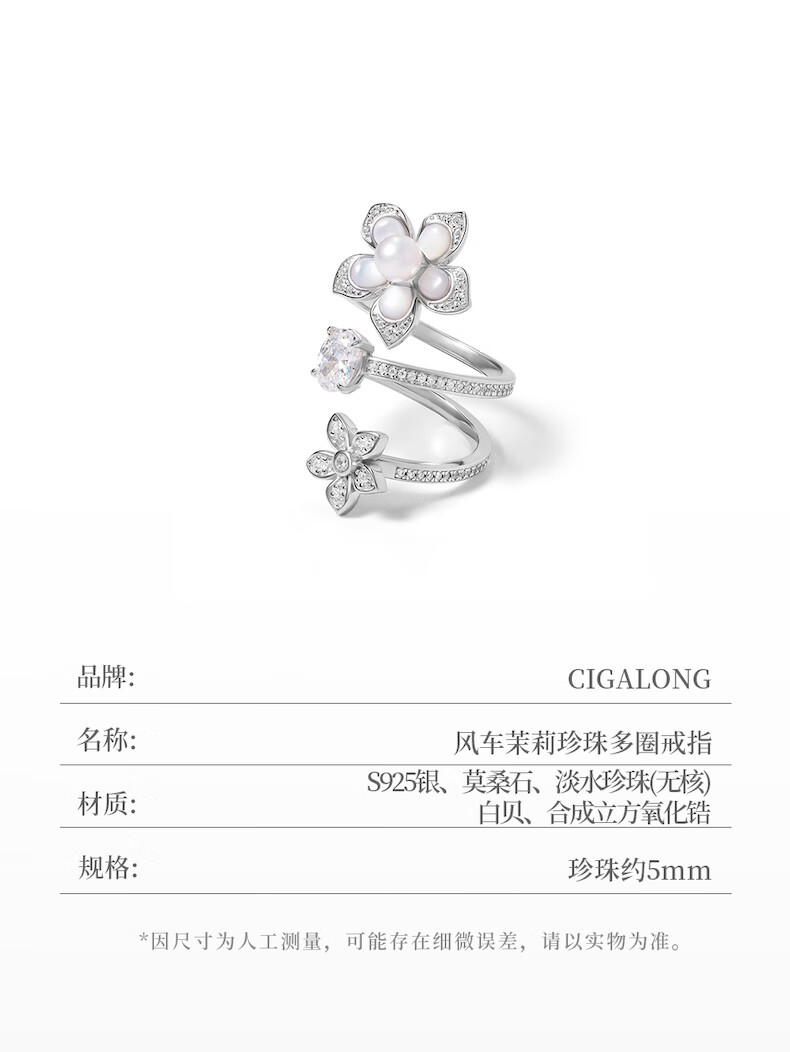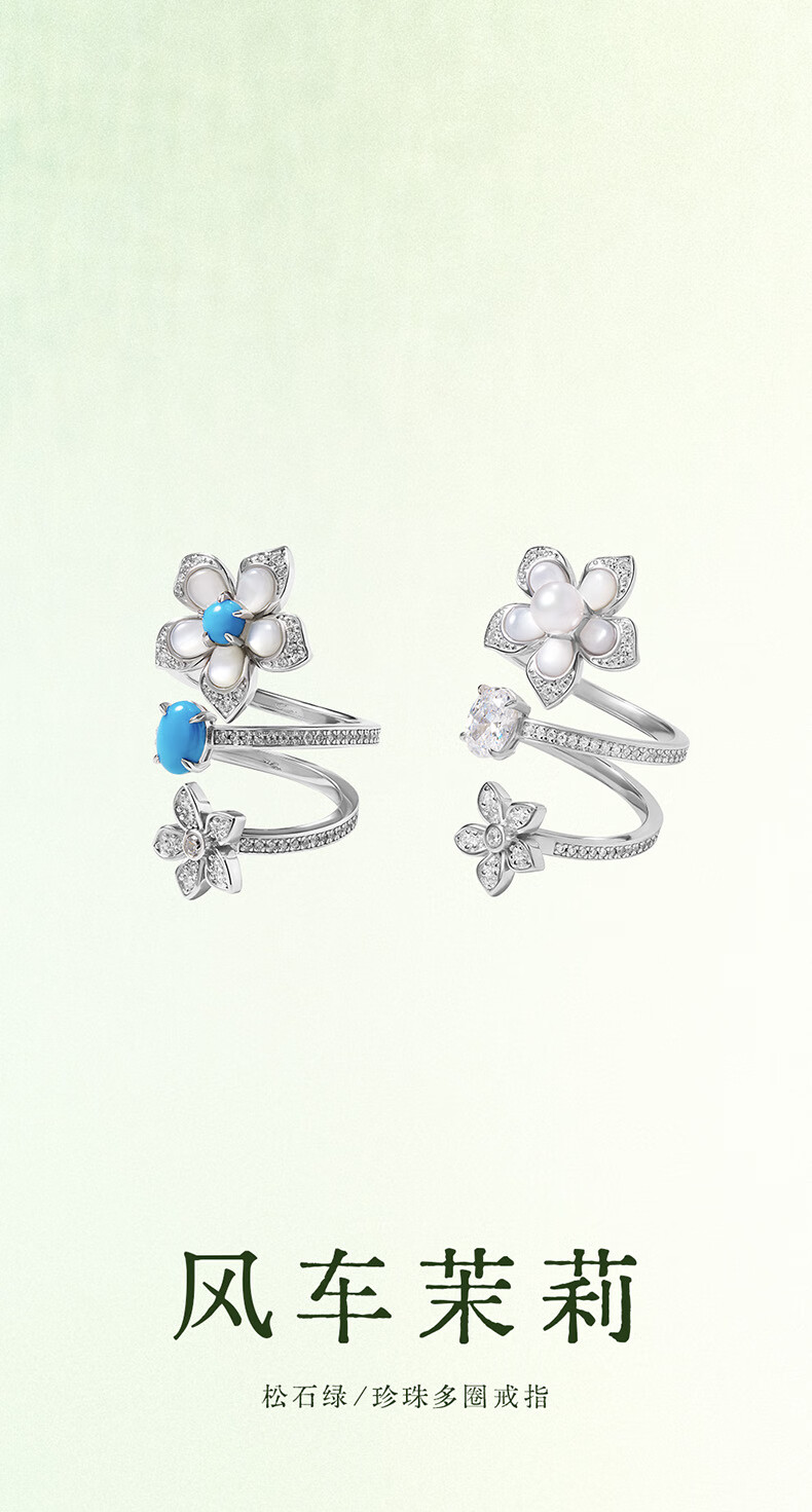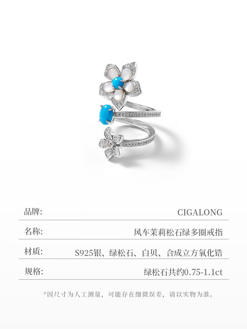 CIGA LONG windmill jasmine turquoise multi-ring new product twin jasmine pearl ring 17-18
