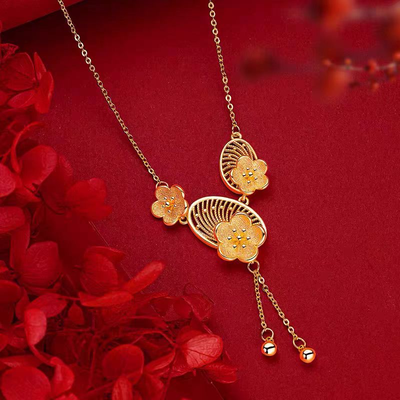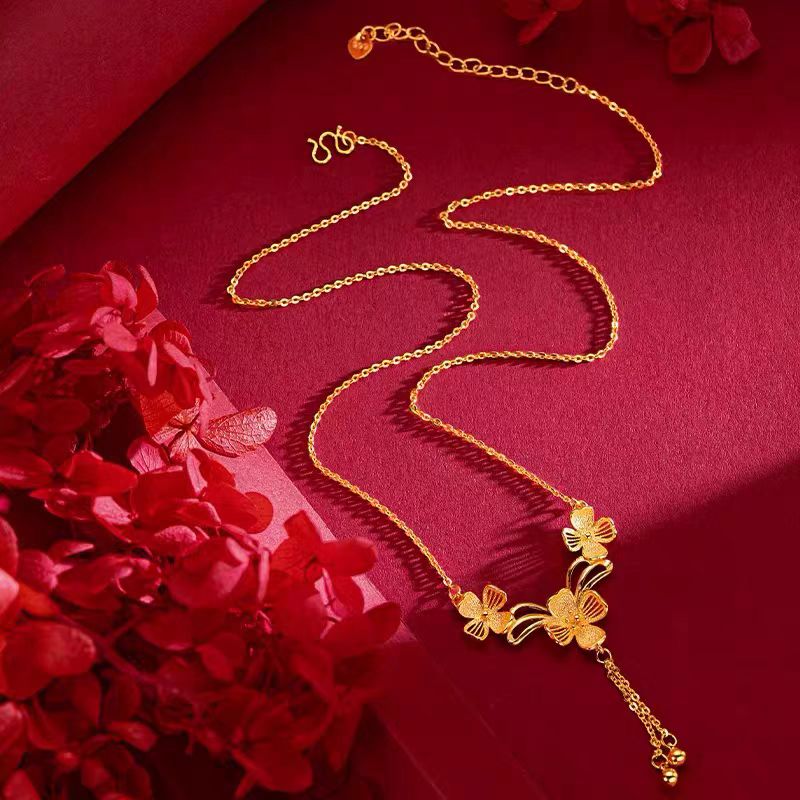 Only double gold snake and rabbit necklace zodiac foot golden pendant 18k color gold clavicle chain girlfriend snake rabbit necklace