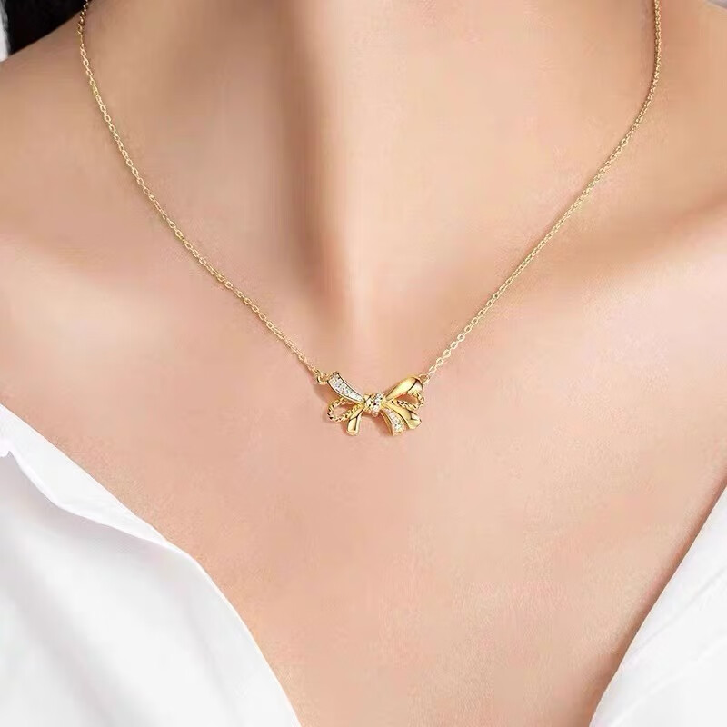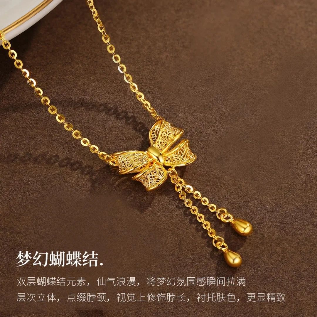 Only double positive gold necklace for women 2025 new pure gold pendant 18K color gold clavicle chain for girlfriend Fugitive Princess Necklace