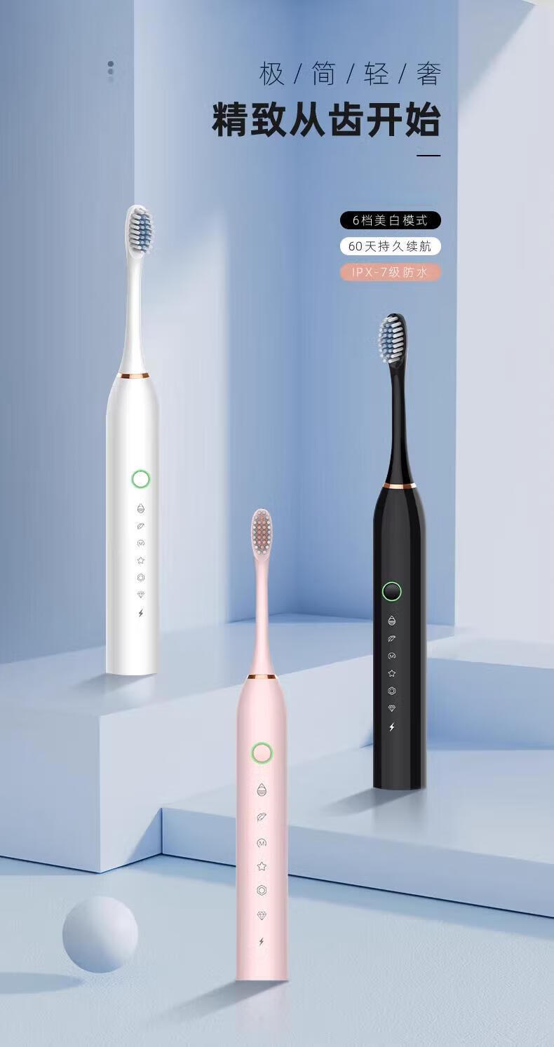 Electric Toothbrush Adult Soft Bristle Gum Protection Toothbrush Minimalist Luxury IPX7 Waterproof Home Black Rechargeable Portable Electric Toothbrush