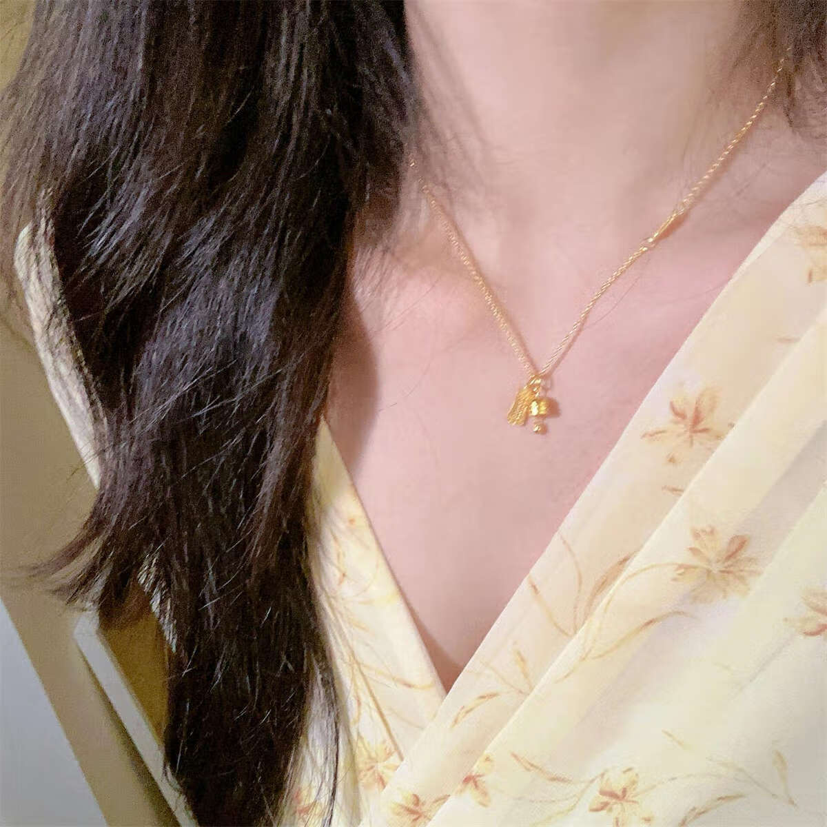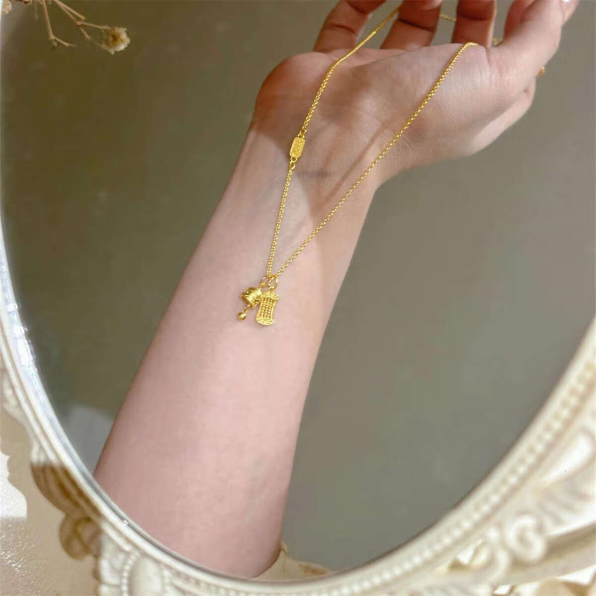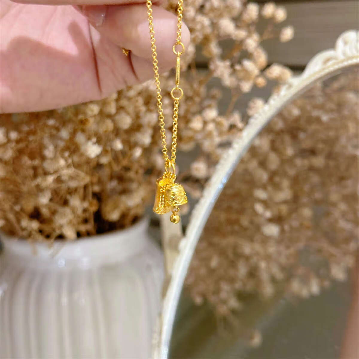 Only a pair of new Chinese style 18k gold Peace Bell Abacus Necklace for girls. Exquisite, compact and luxurious clavicle chain pendant design. Peace Bell Abacus Necklace.