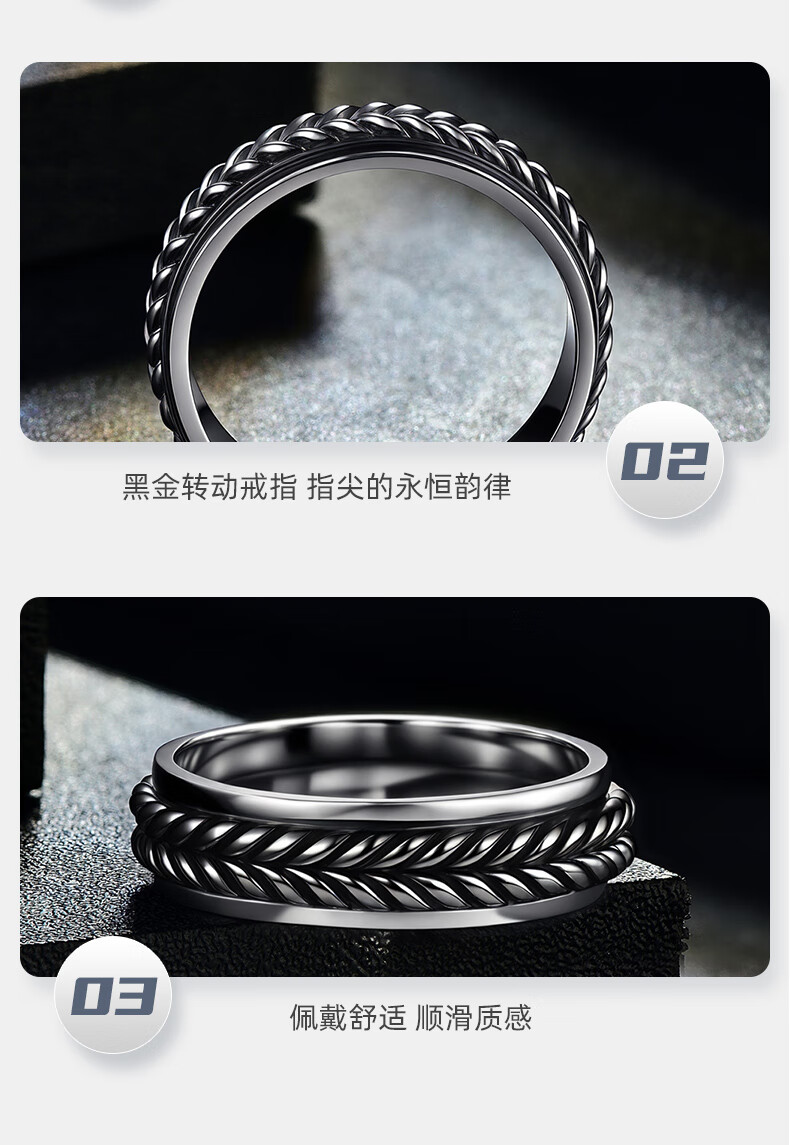 GsunG platinum PT950 ring men's black gold rotatable ring pure platinum fashion trend women's real gold ring ring priced by gram, contact customer service before bidding