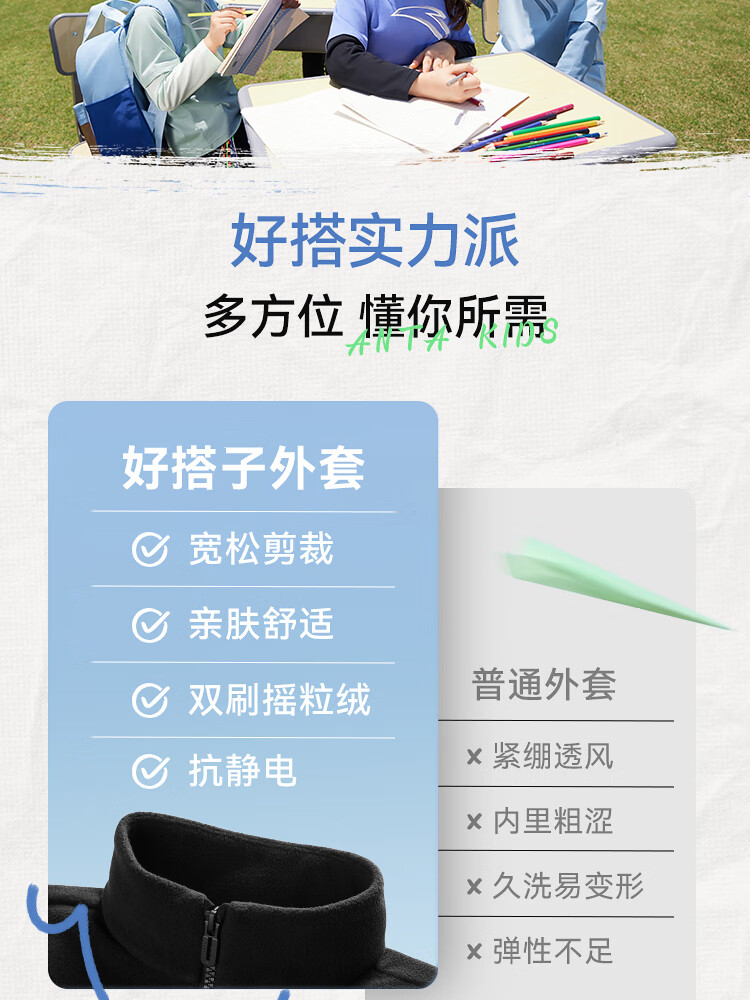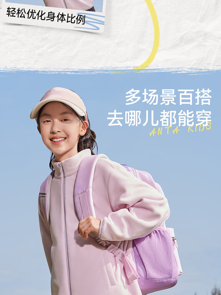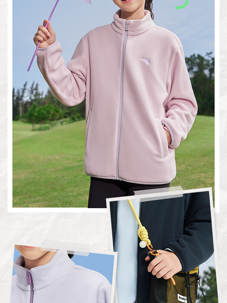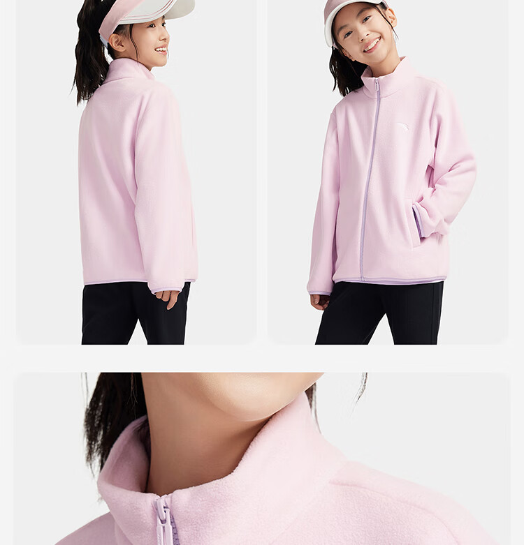ANTA Children's Jacket Girls' Clothing 2025 Autumn New Style Comfortable, Warm and Fashionable Skin Friendly Polar Fleece Jacket Store Manager Recommendation Dai Pink-7 150
