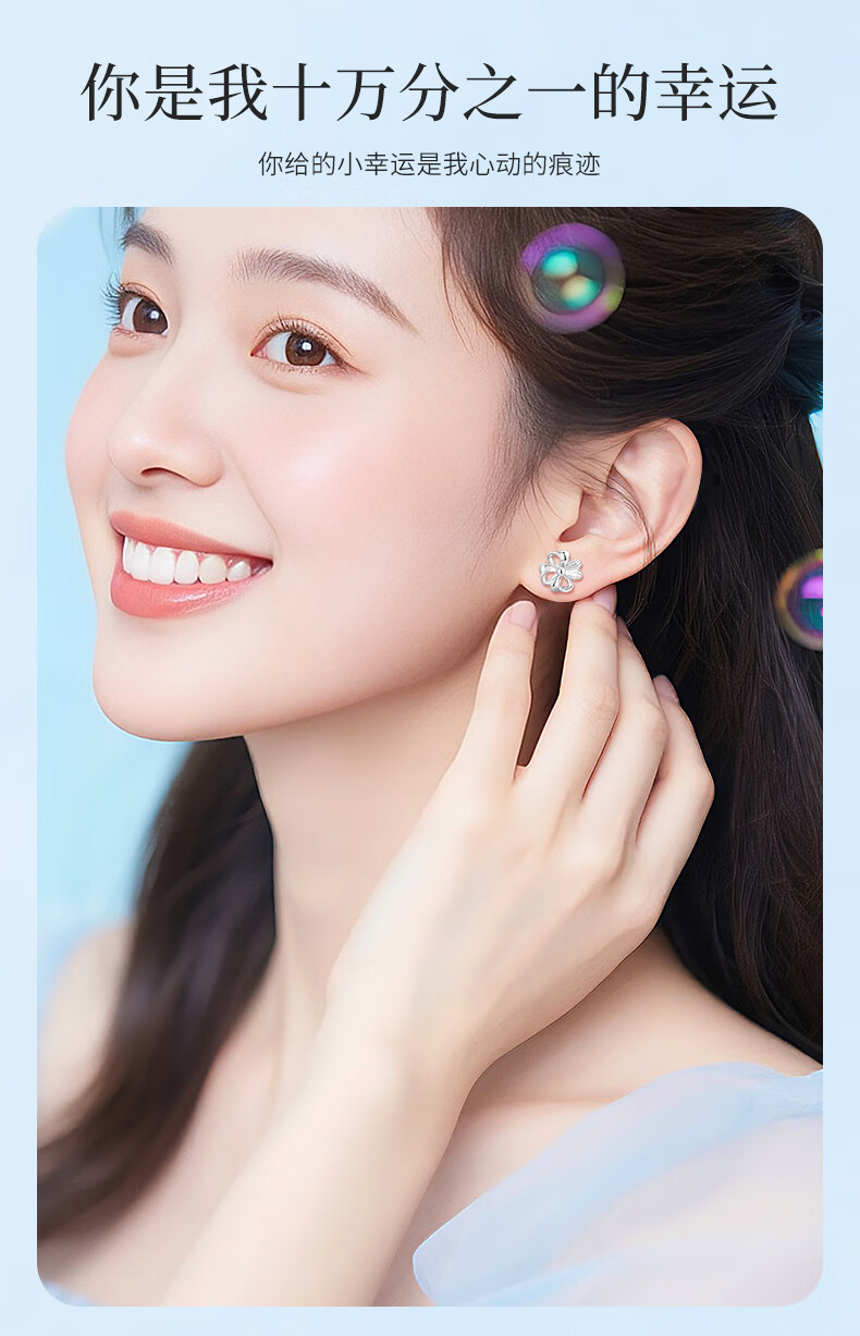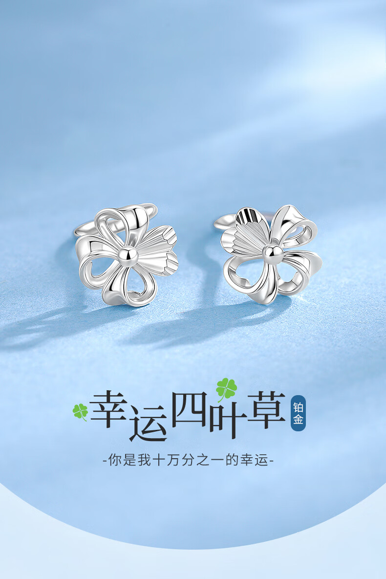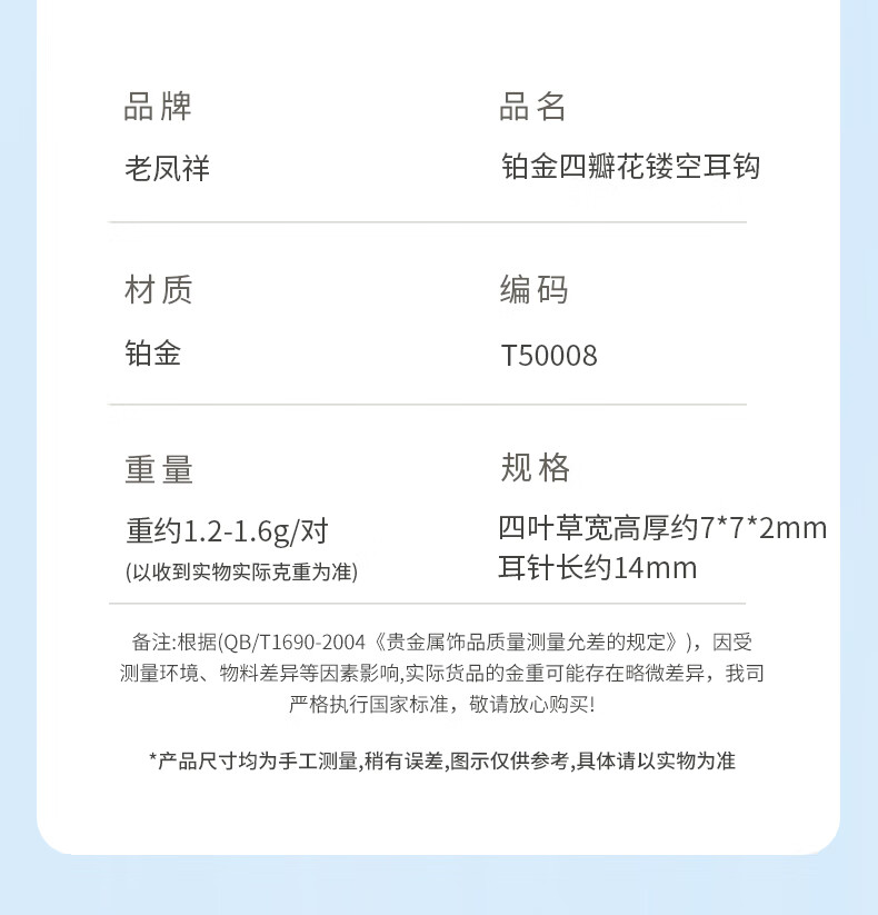 Lao Fengxiang platinum four-petal flower earrings for women platinum light luxury earrings priced wedding anniversary gift for girlfriend and wife platinum four-petal flower hollow ear hook