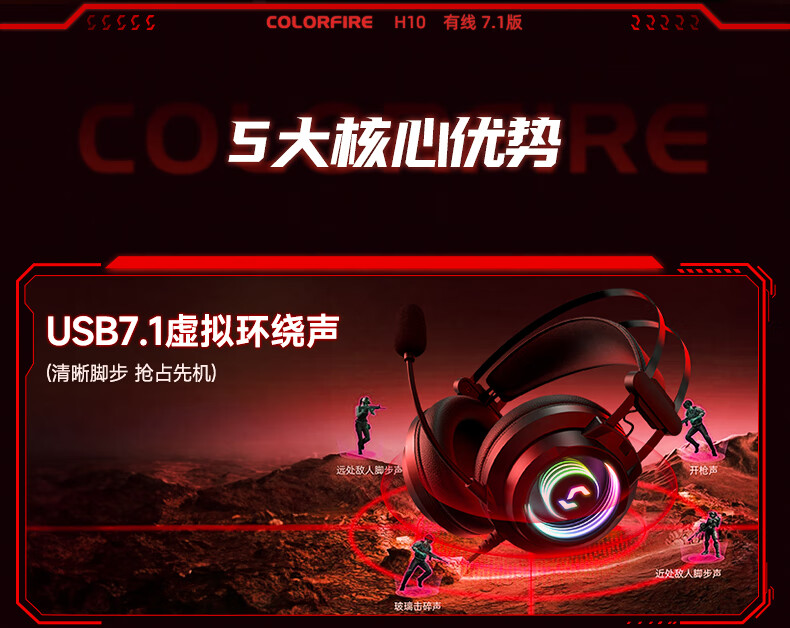 Colorful Colorful E-sports Professional 7.1+EQ Tuning Head-mounted Gaming Wired Headset Desktop Computer Laptop Microphone Noise Reduction USB H10 PRO Snow Mountain White Upgraded E-Sports Model Essential for E-Sports Games