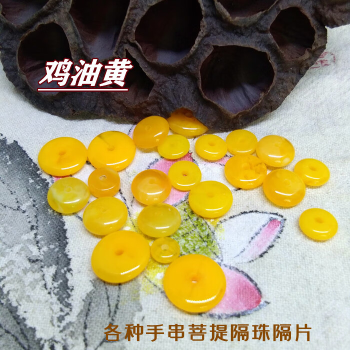DL 1998 Fat Donglai same style beeswax spacer chicken fat yellow beeswax spacer spacer bracelet spacer beads Vajra, star, moon and bodhi accessories, diameter 6mm, thickness 1.8 (15 pieces in a pack)