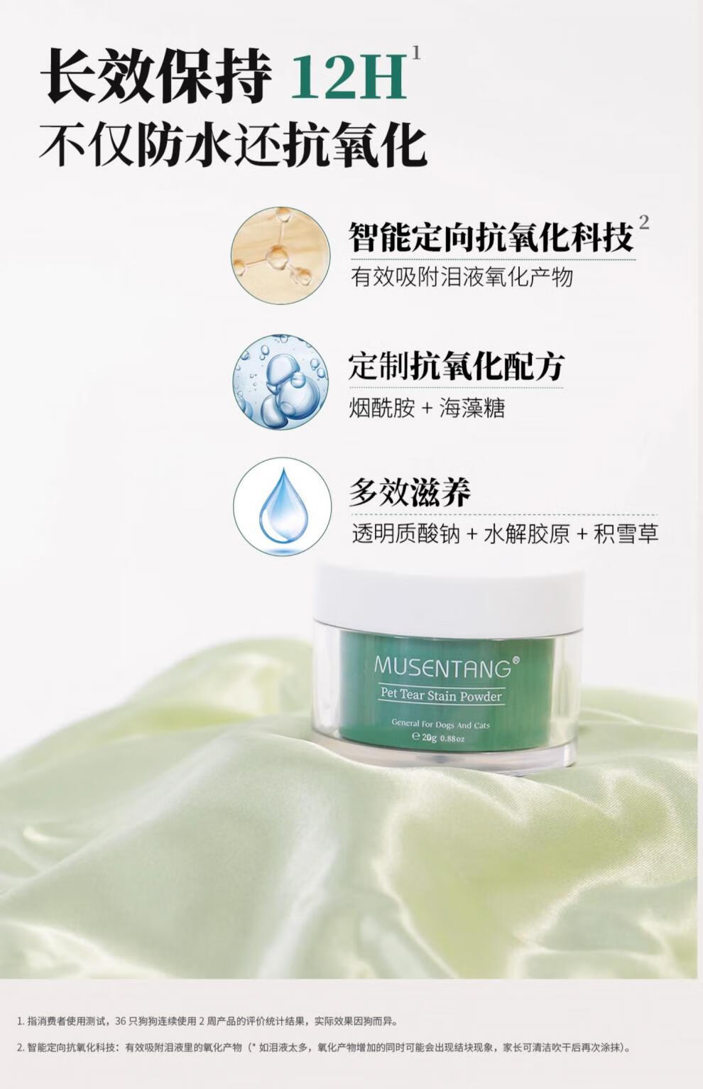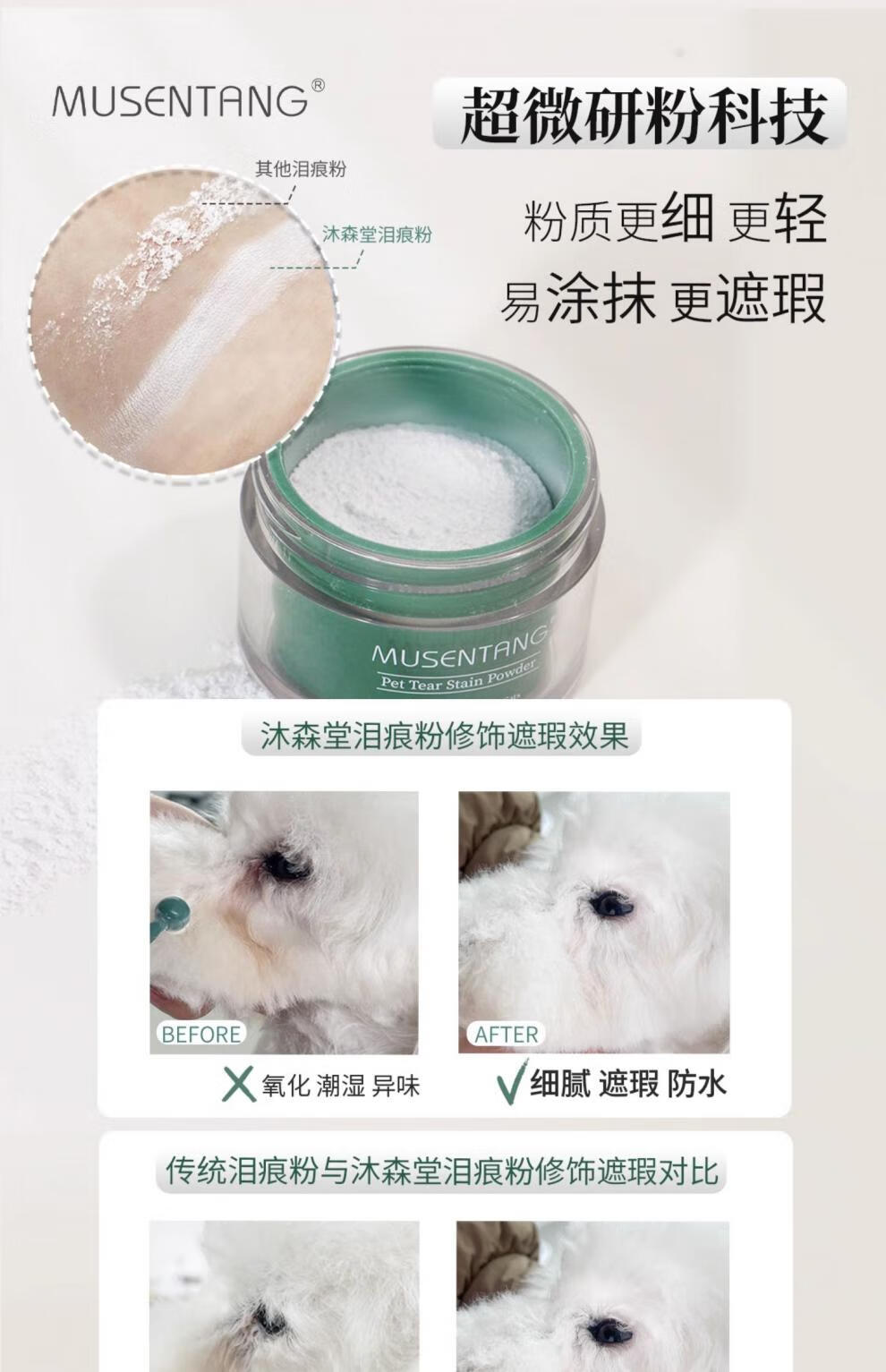 Musentang Pet Tear Stain Powder Waterproof Concealer Antioxidant Anti-tears Saliva Urine Resist Tears Special for White Hair Official Store Tear Stain Powder (Special for White Hair) comes with a small brush