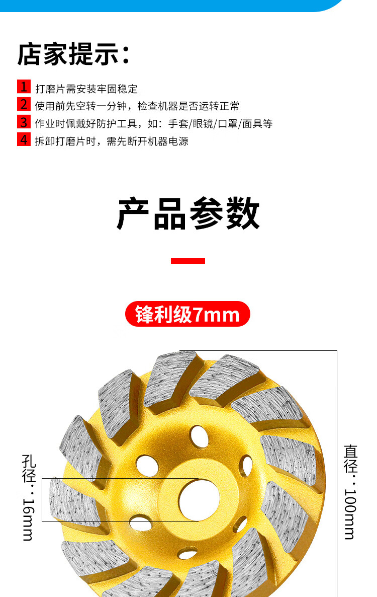 LNGA LANDGRE concrete diamond grinding sheet stone cement red brick wall emery thickened grinding disc angle grinder bowl grinding diamond grinding sheet sharp grade 16 holes 7mm (1 piece