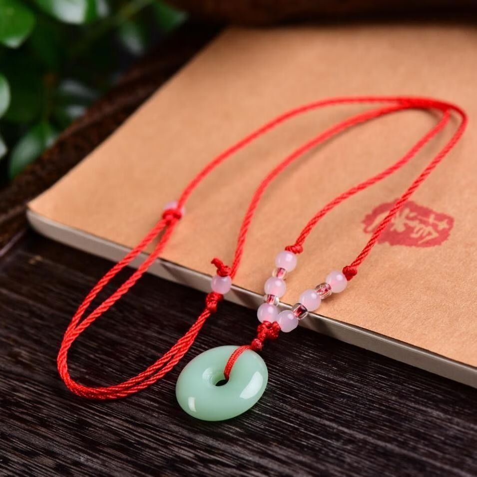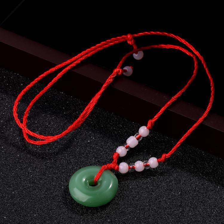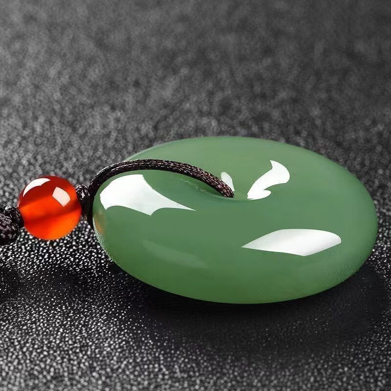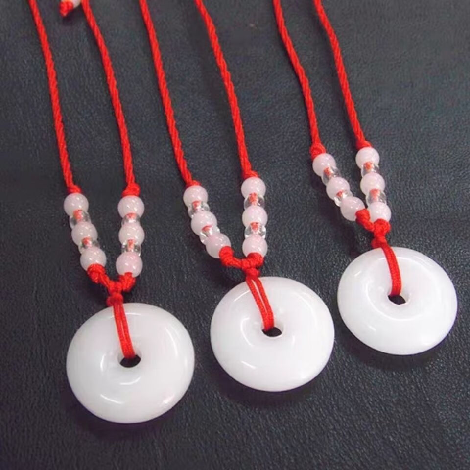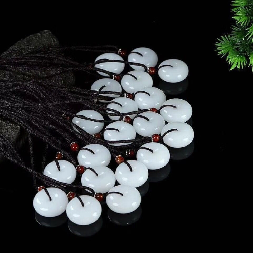 White jade color peace buckle imitation jade pendant gold wire necklace jade men's and women's mutton fat pendant imitation jade pendant item peace buckle emerald green large size