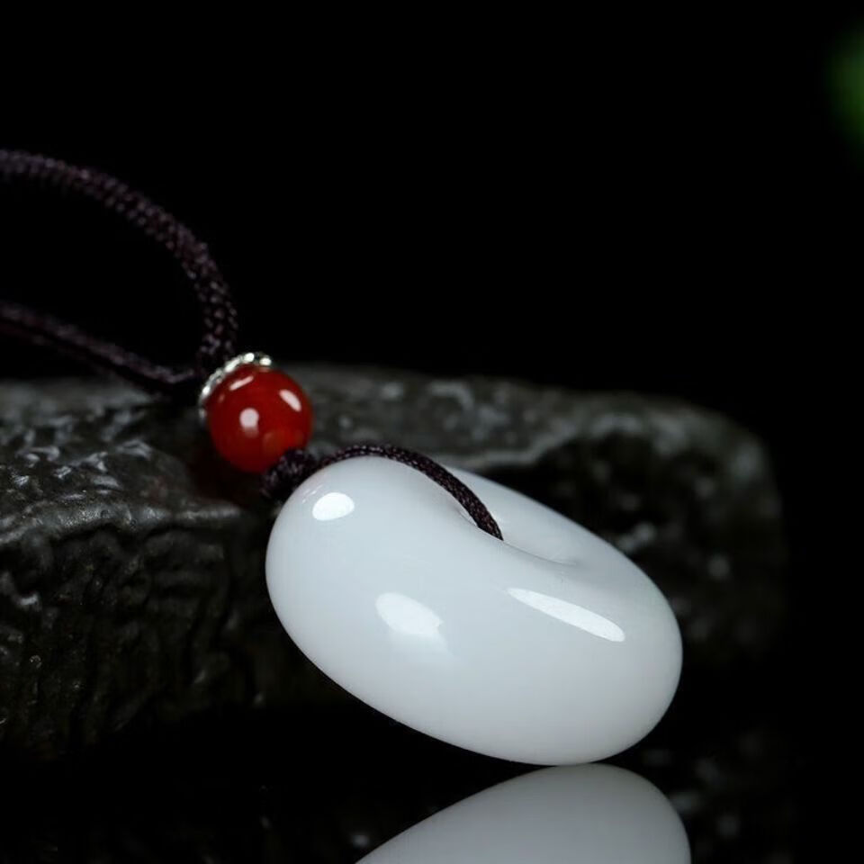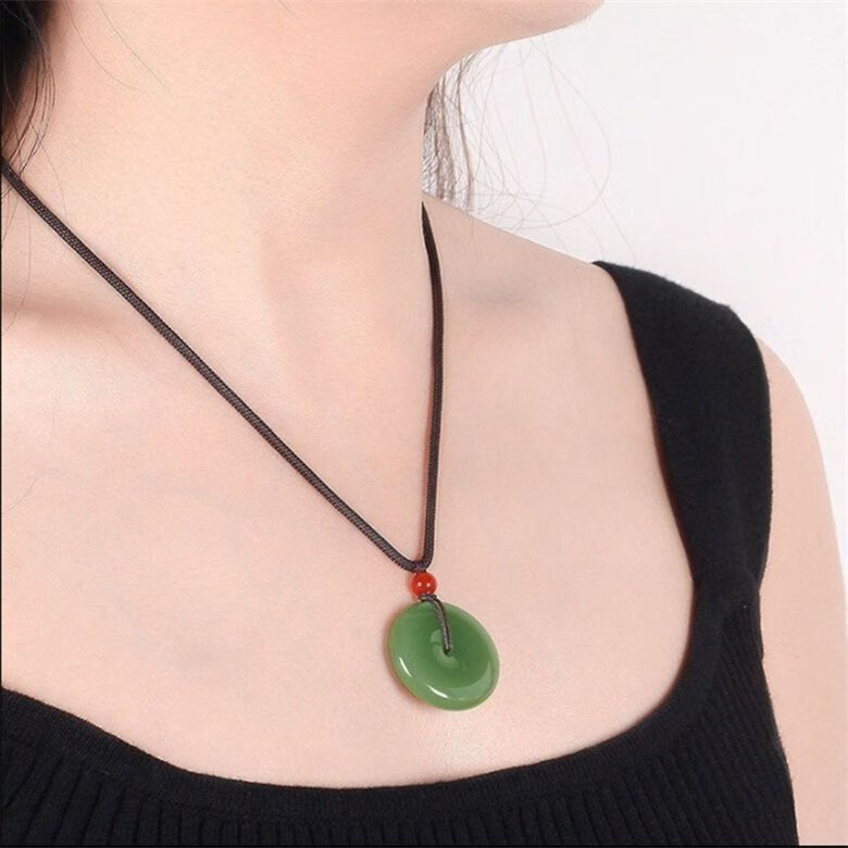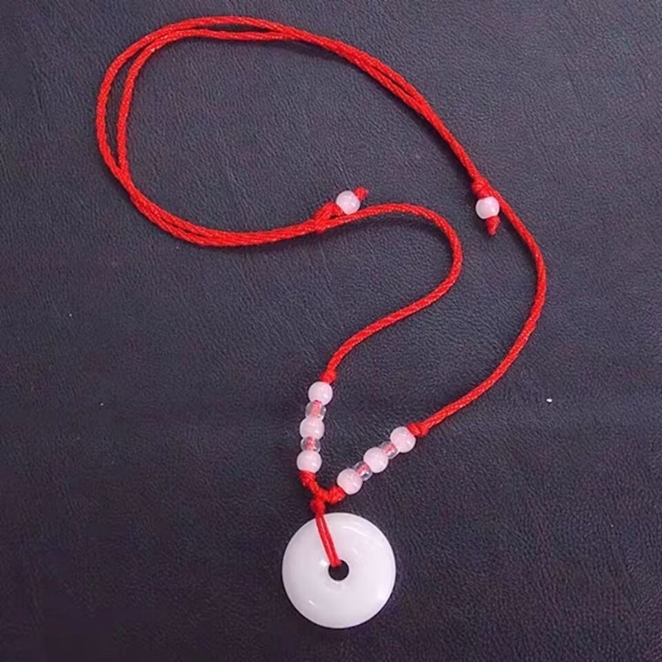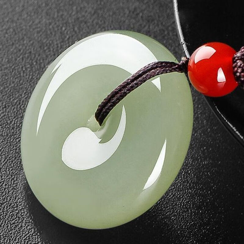 White jade color peace buckle imitation jade pendant gold wire necklace jade men's and women's mutton fat pendant imitation jade pendant item peace buckle emerald green large size