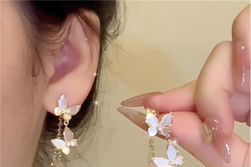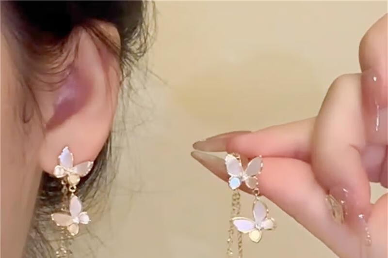Nianfu earrings are light luxury niche high-end simple tassel long new style earrings fairy temperament Mid-Autumn Festival gift for girls earrings white butterfly